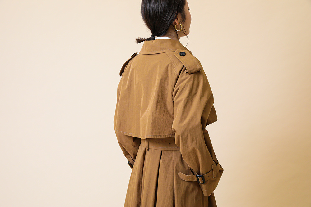 エレガントなフレアドレスシルエットのトレンチコートは、