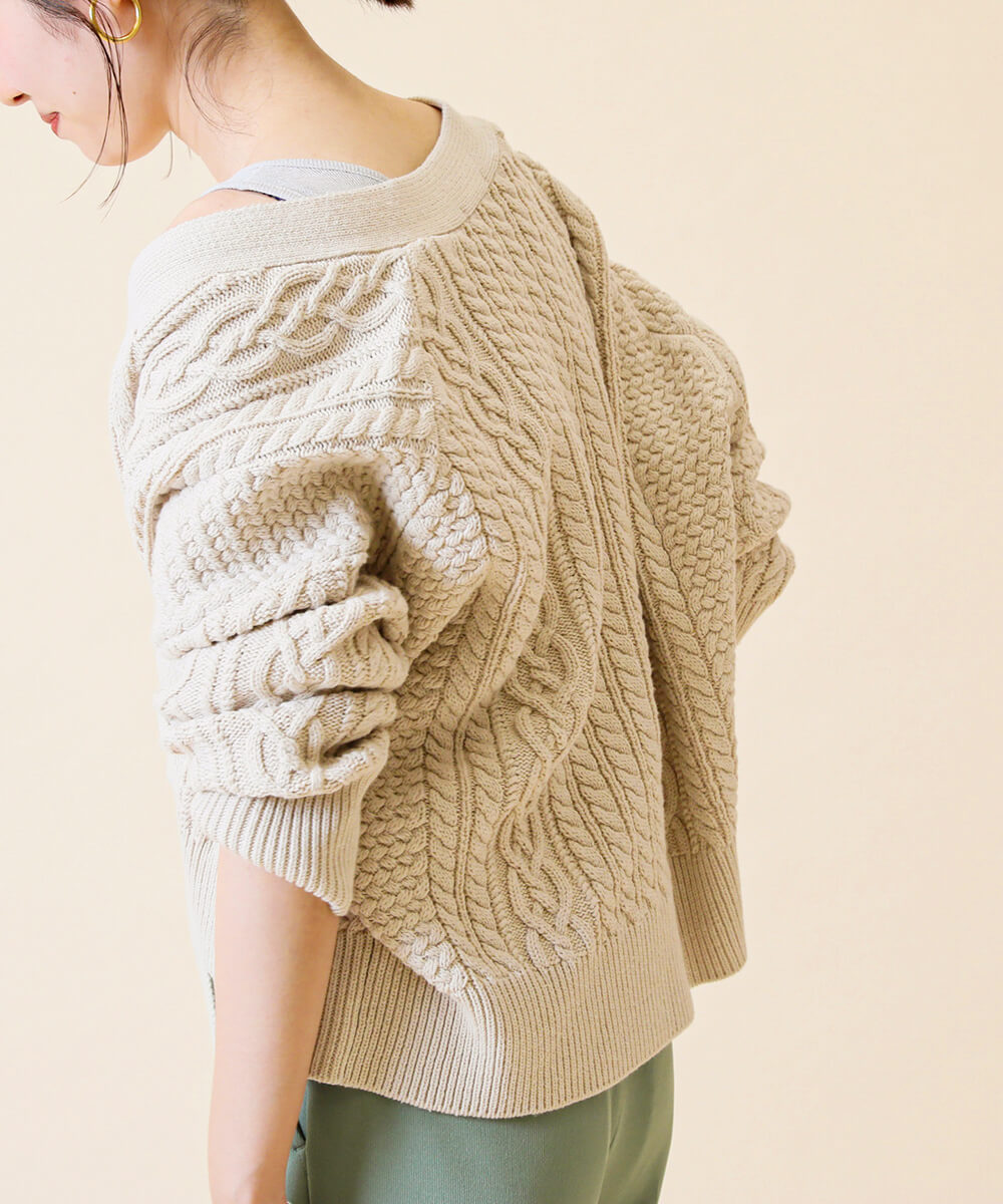 ローゲージでざっくりと編んだ、表情豊かなケーブルカーディガン。