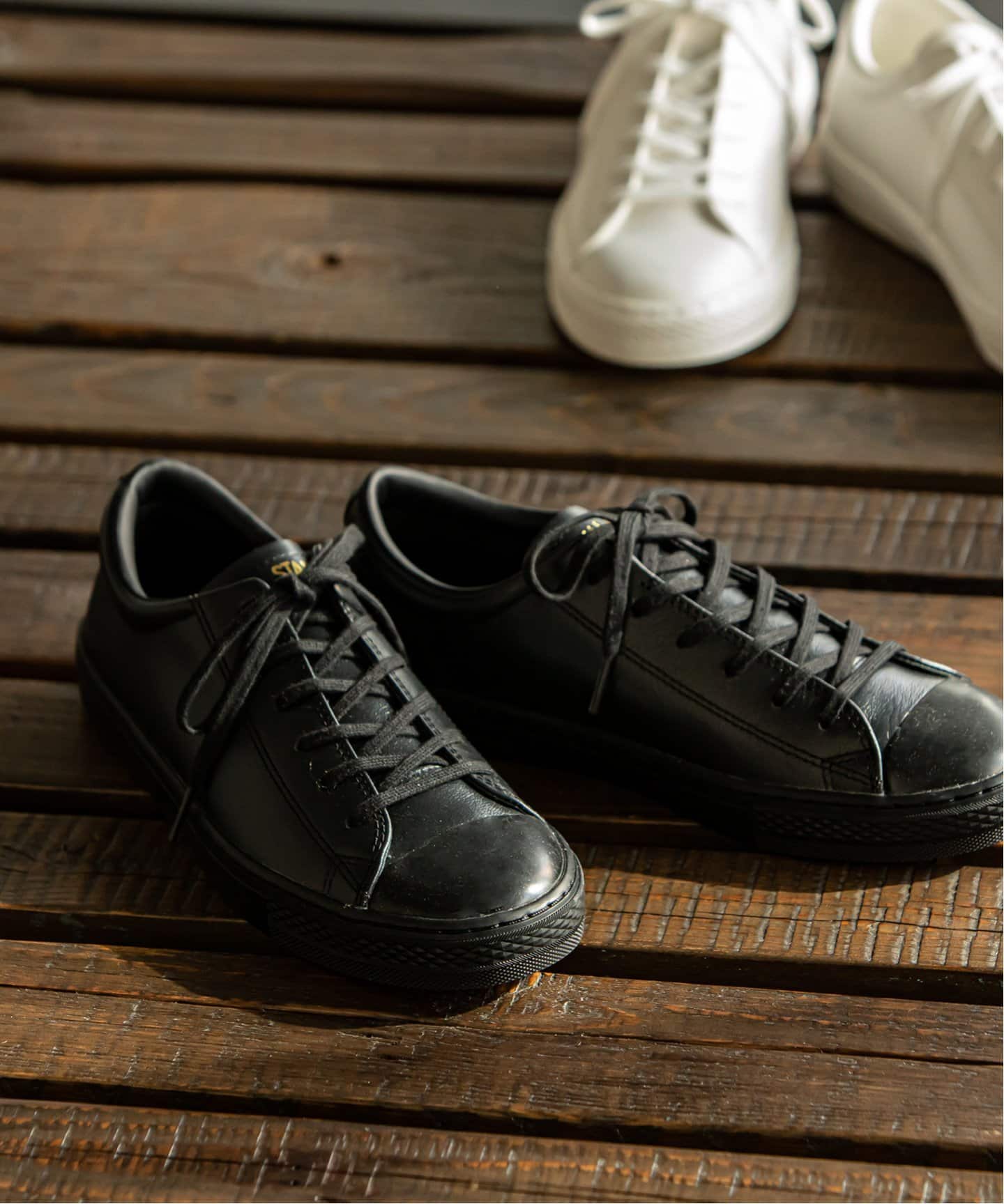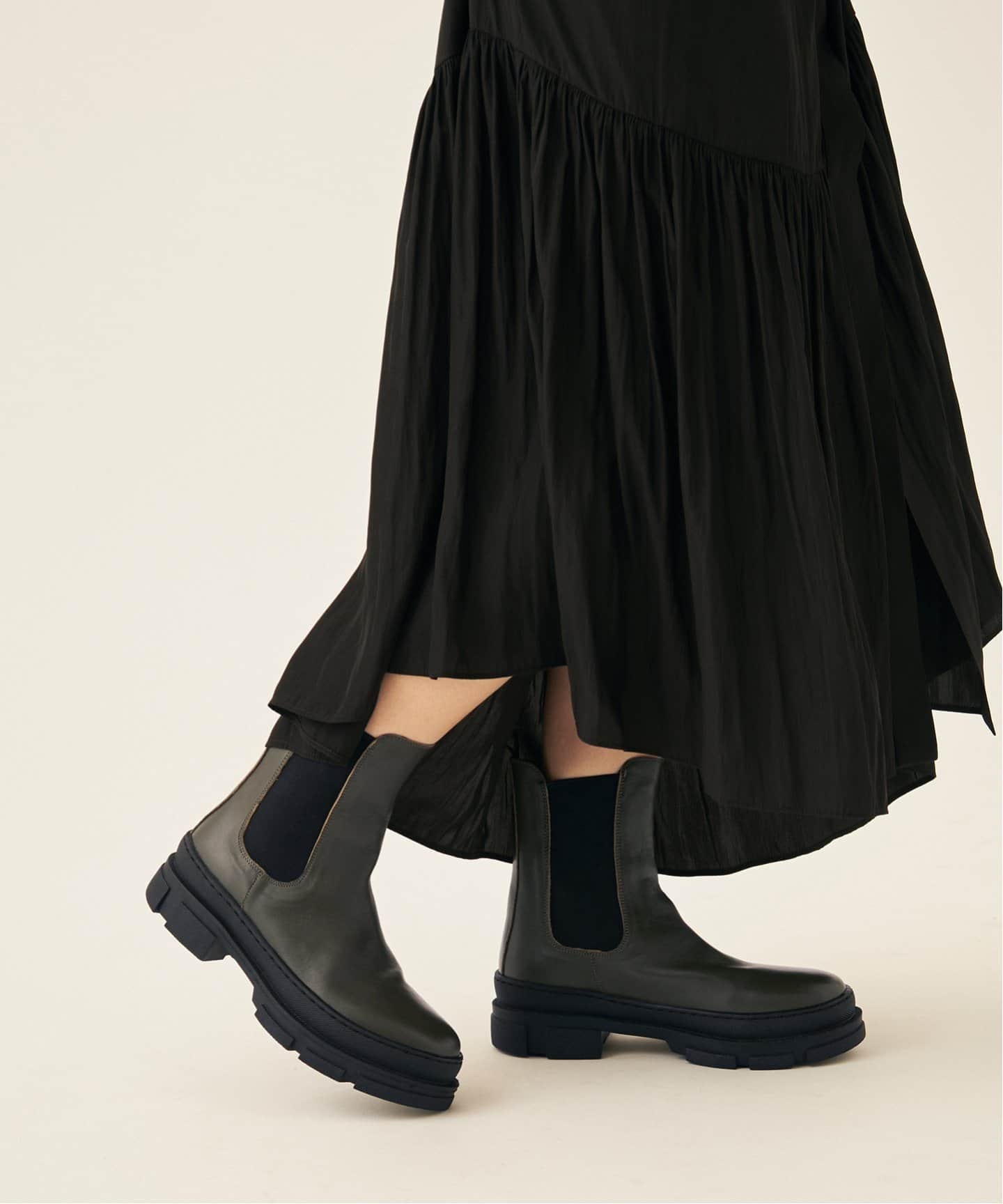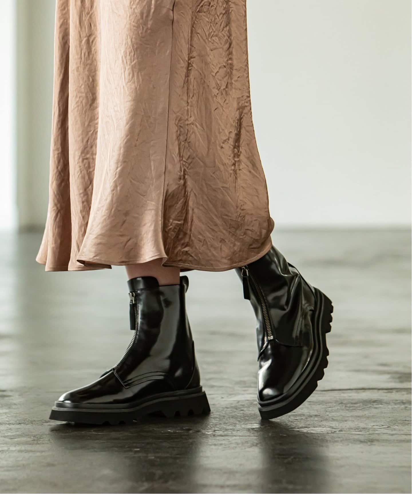ちょっぴりハードなブーツが気分程よいボリュームソールのブーツを、レディなコーデの足元にワンポイントとして加えたい。定番のスニーカーも、クラシカルなレザーで意外性をプラス。