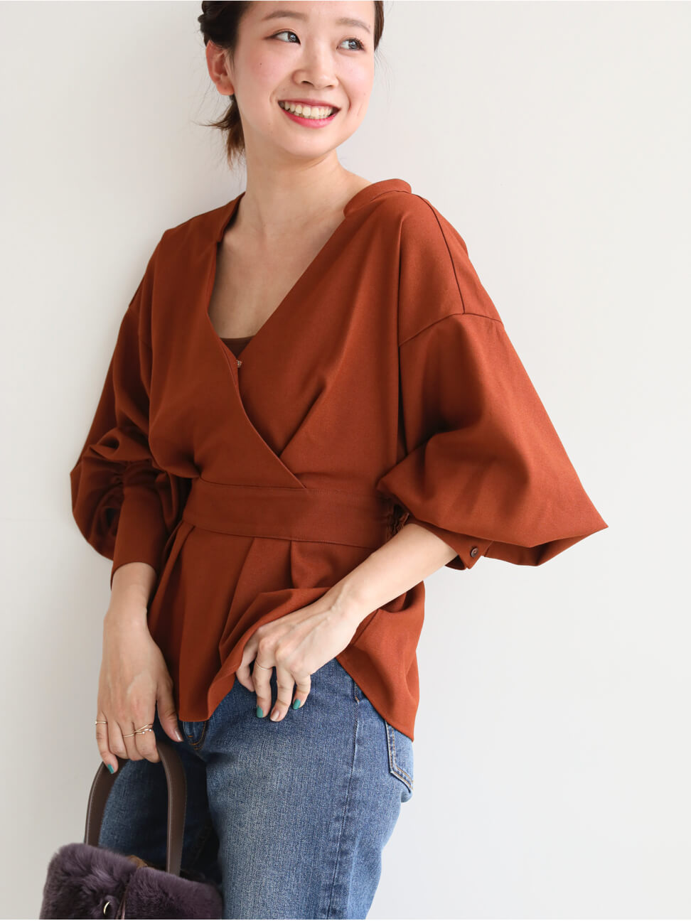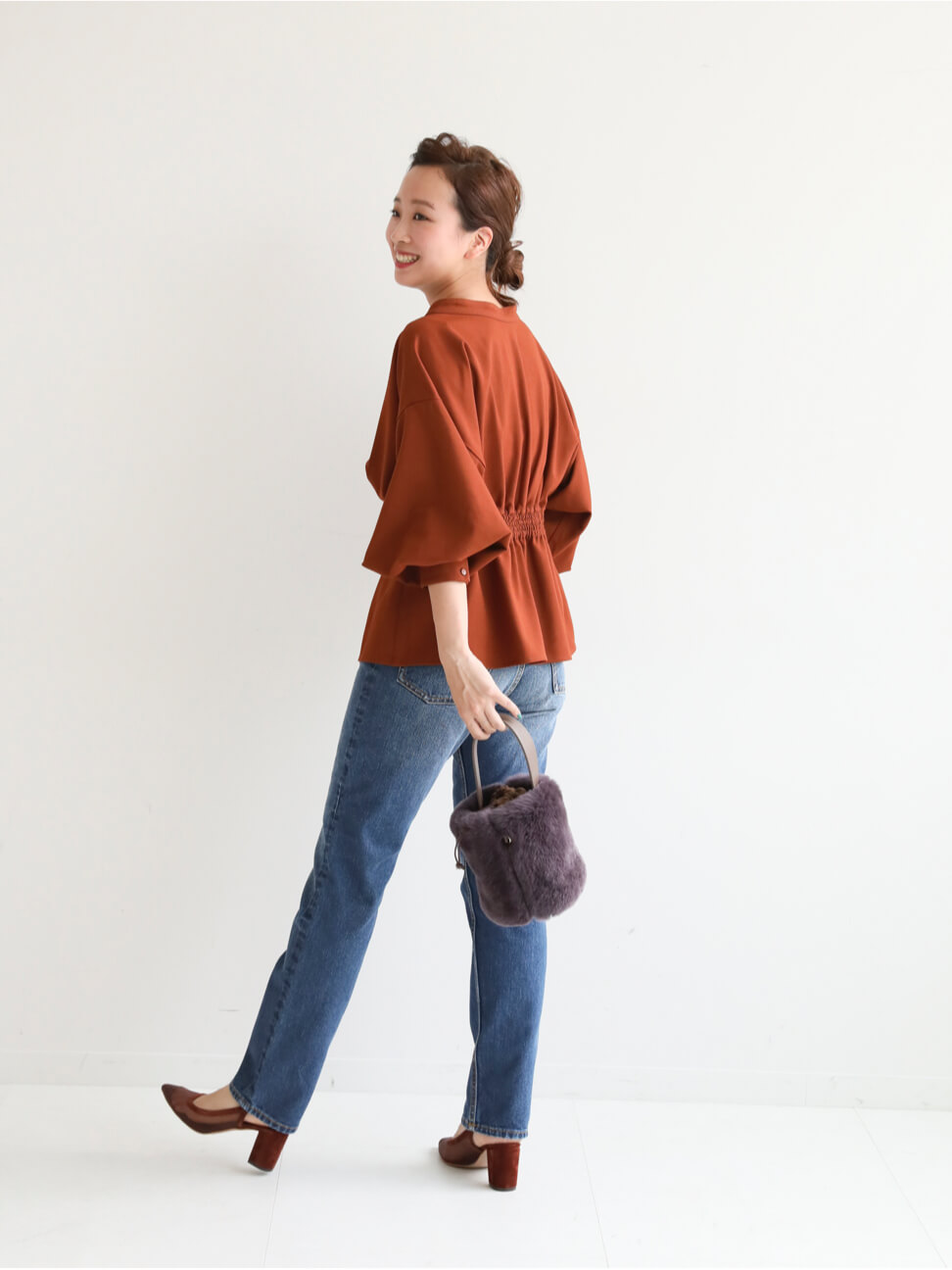 - オンにもオフにも活躍する、レイヤードいらずの主役級トップス。デコルテを綺麗に見せるフロントやボリューム袖、背中のギャザーなど、女性らしいラインを強調するディテールが満載。秋映えのこっくりカラーだから、シンプルなデニムと合わせても華やかにまとまります。