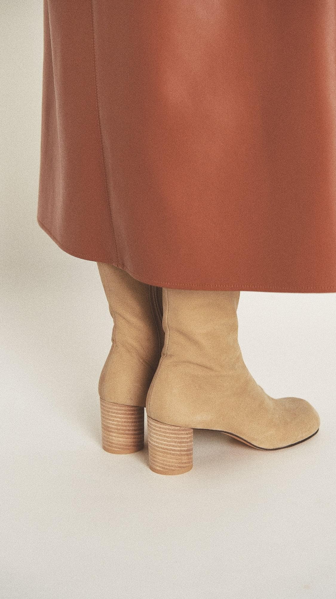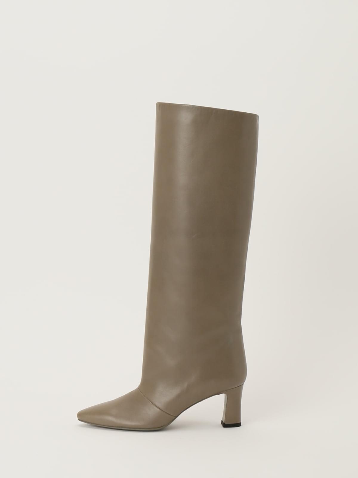 6.5cmレザーワイドシャフトロングブーツ / GRISE
