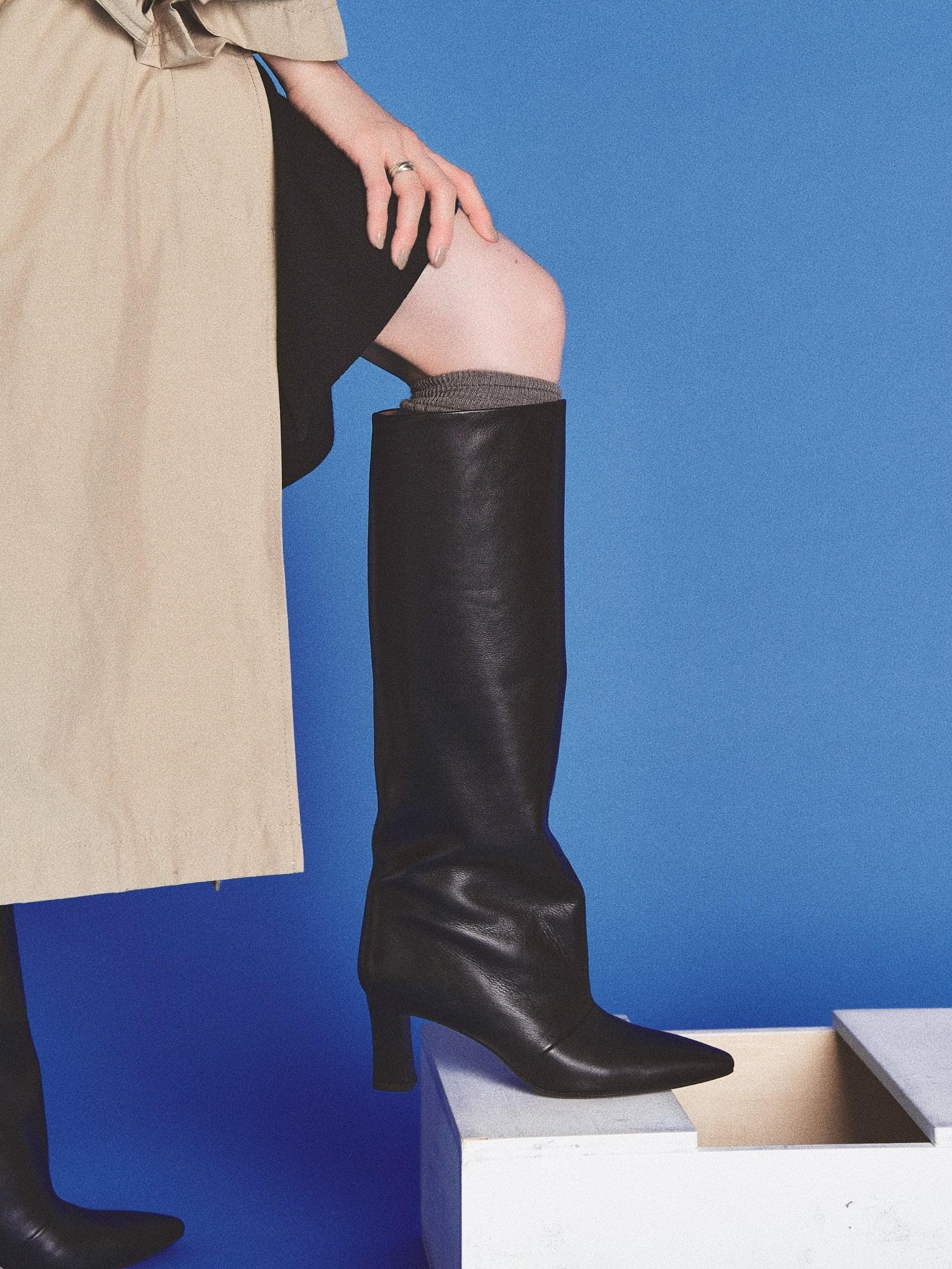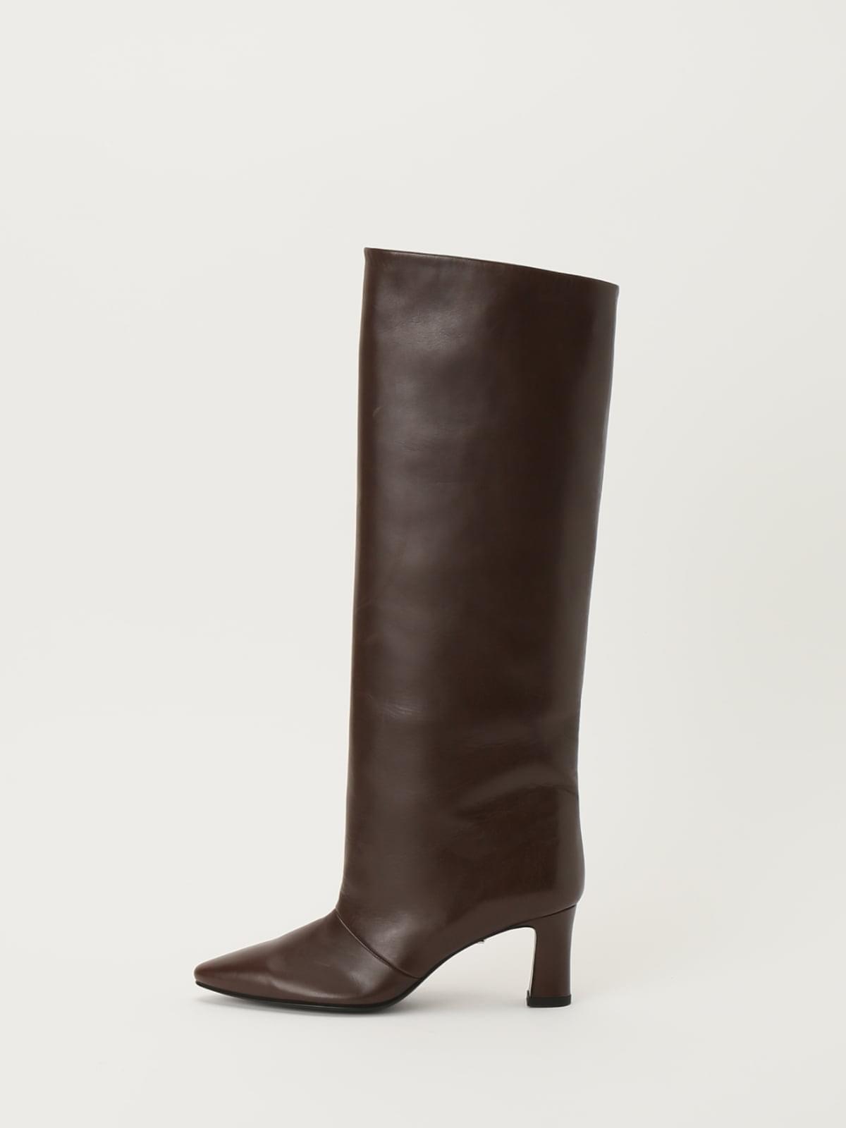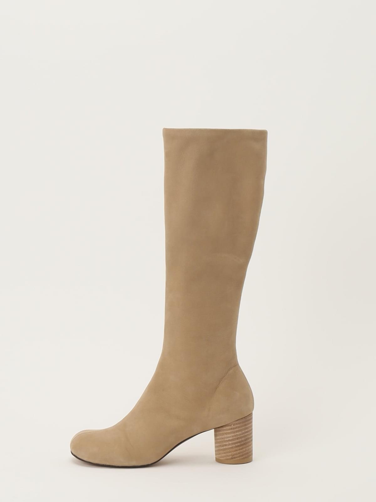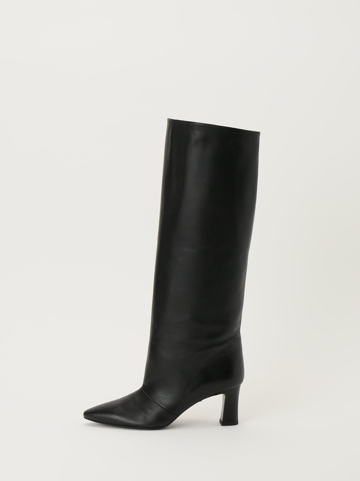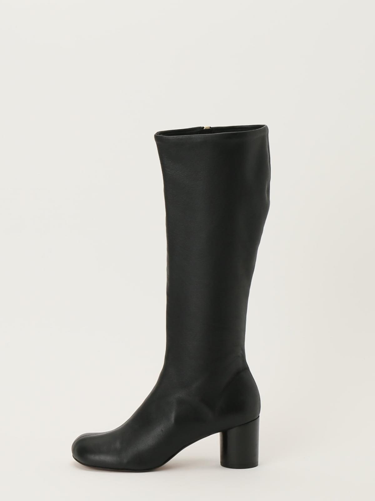 6cmレザーオブリークフィットロングブーツ / GRISE