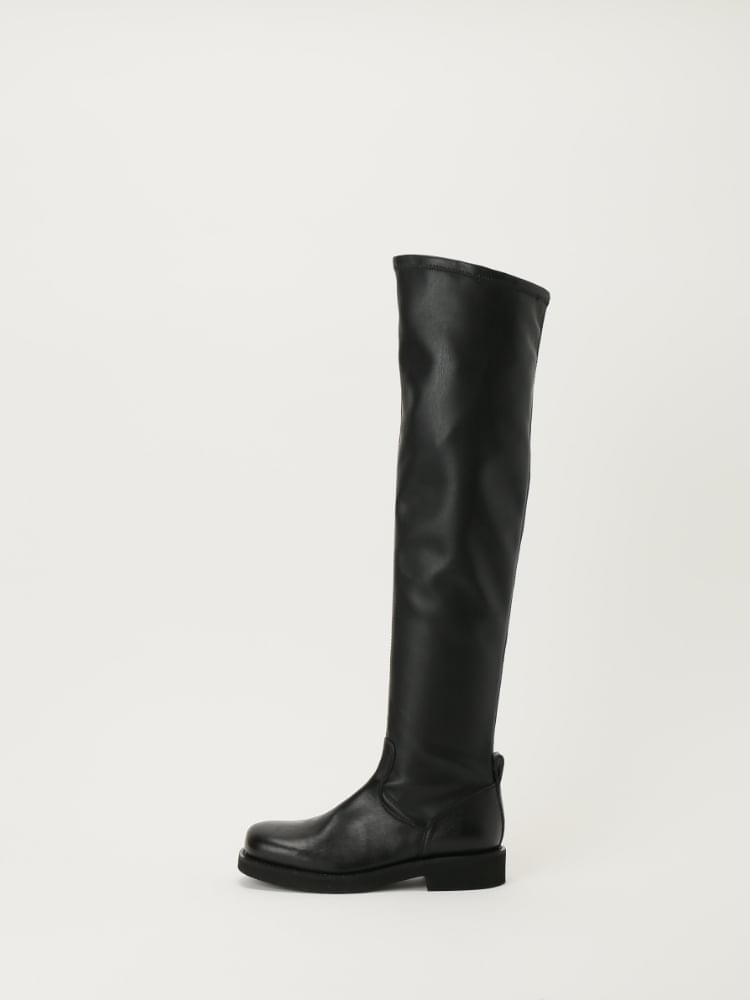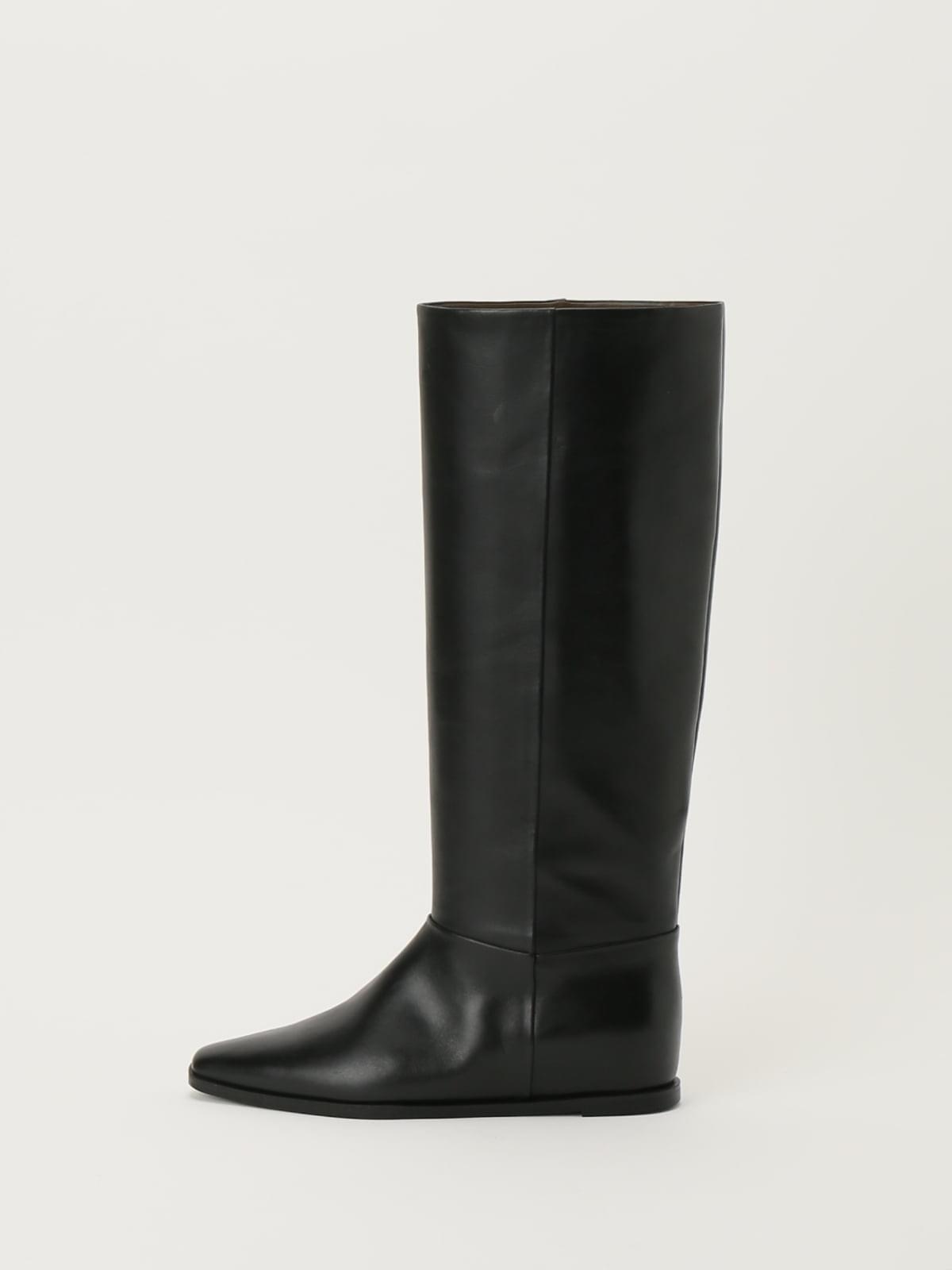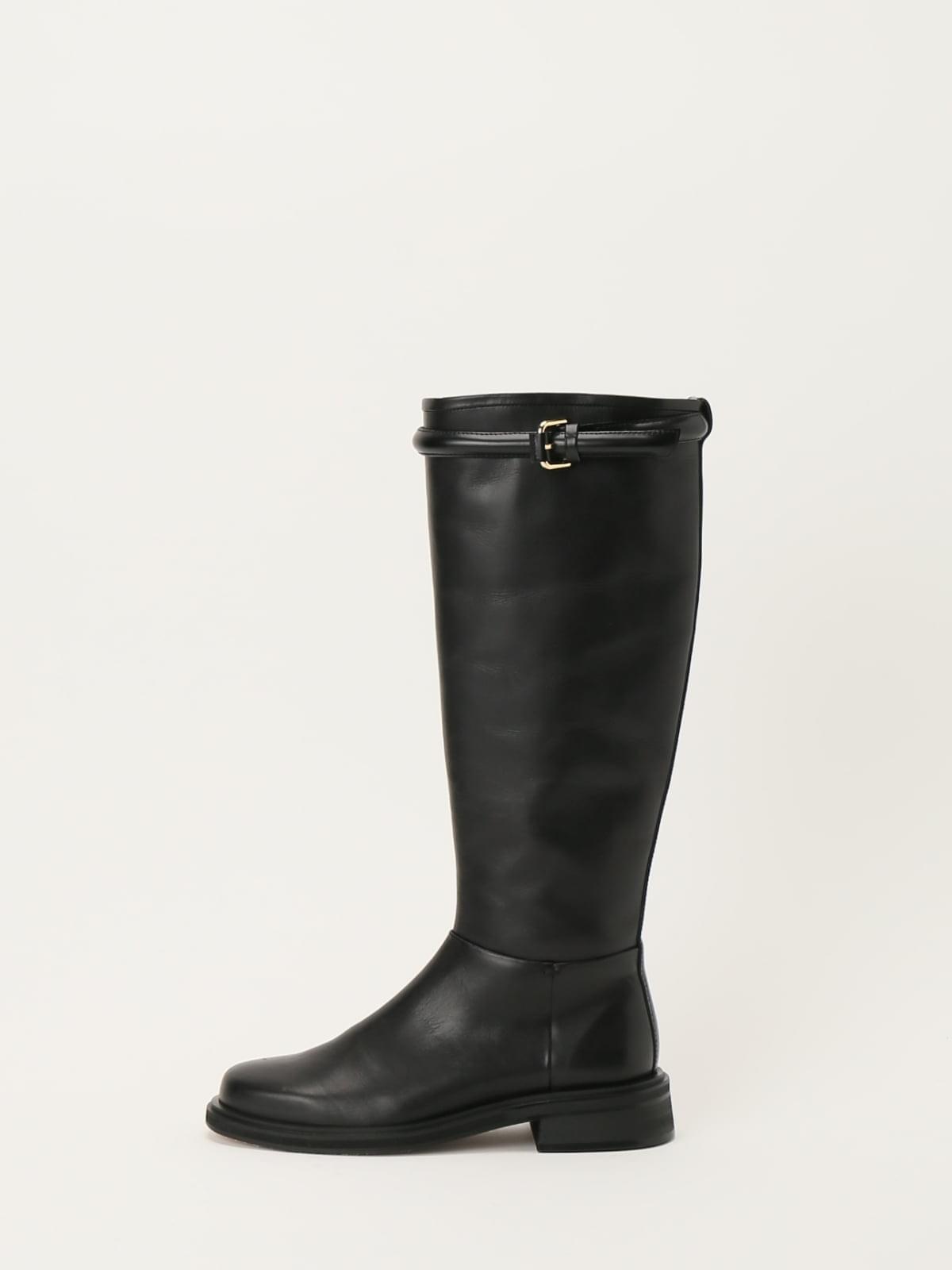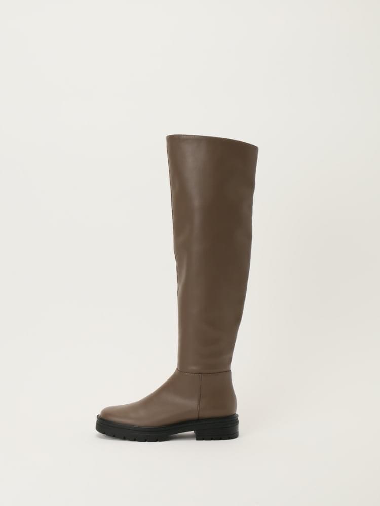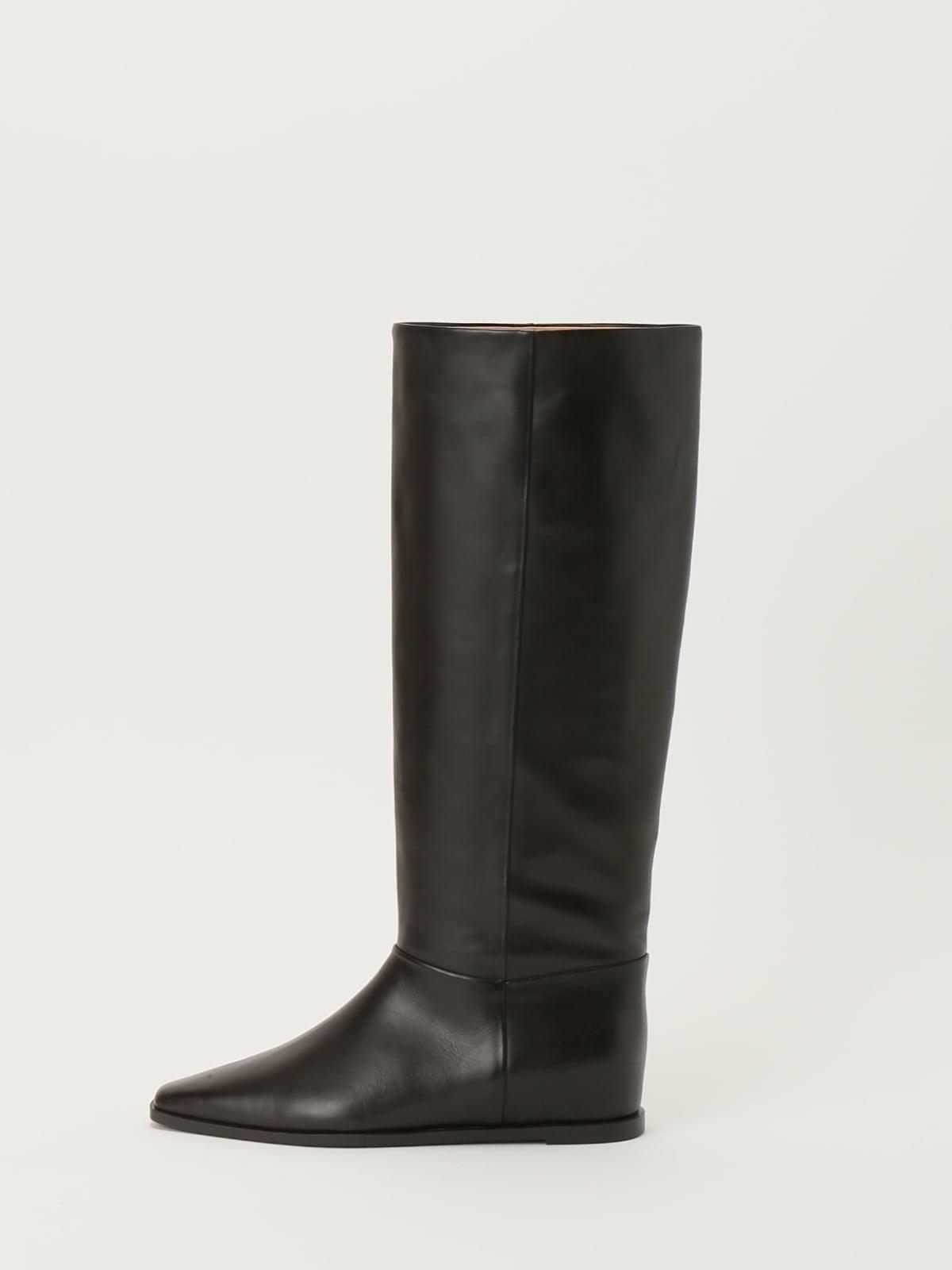 レザーワイドシャフトフラットロングブーツ / GRISE