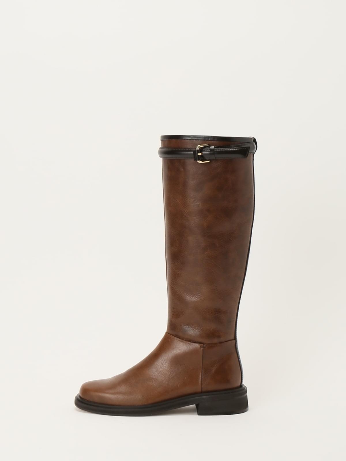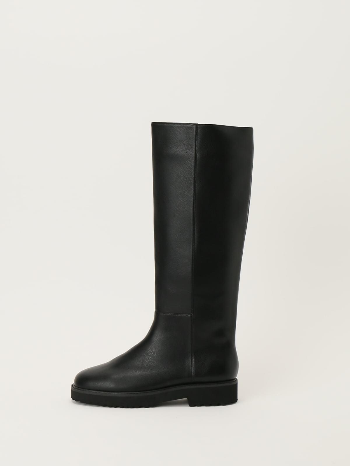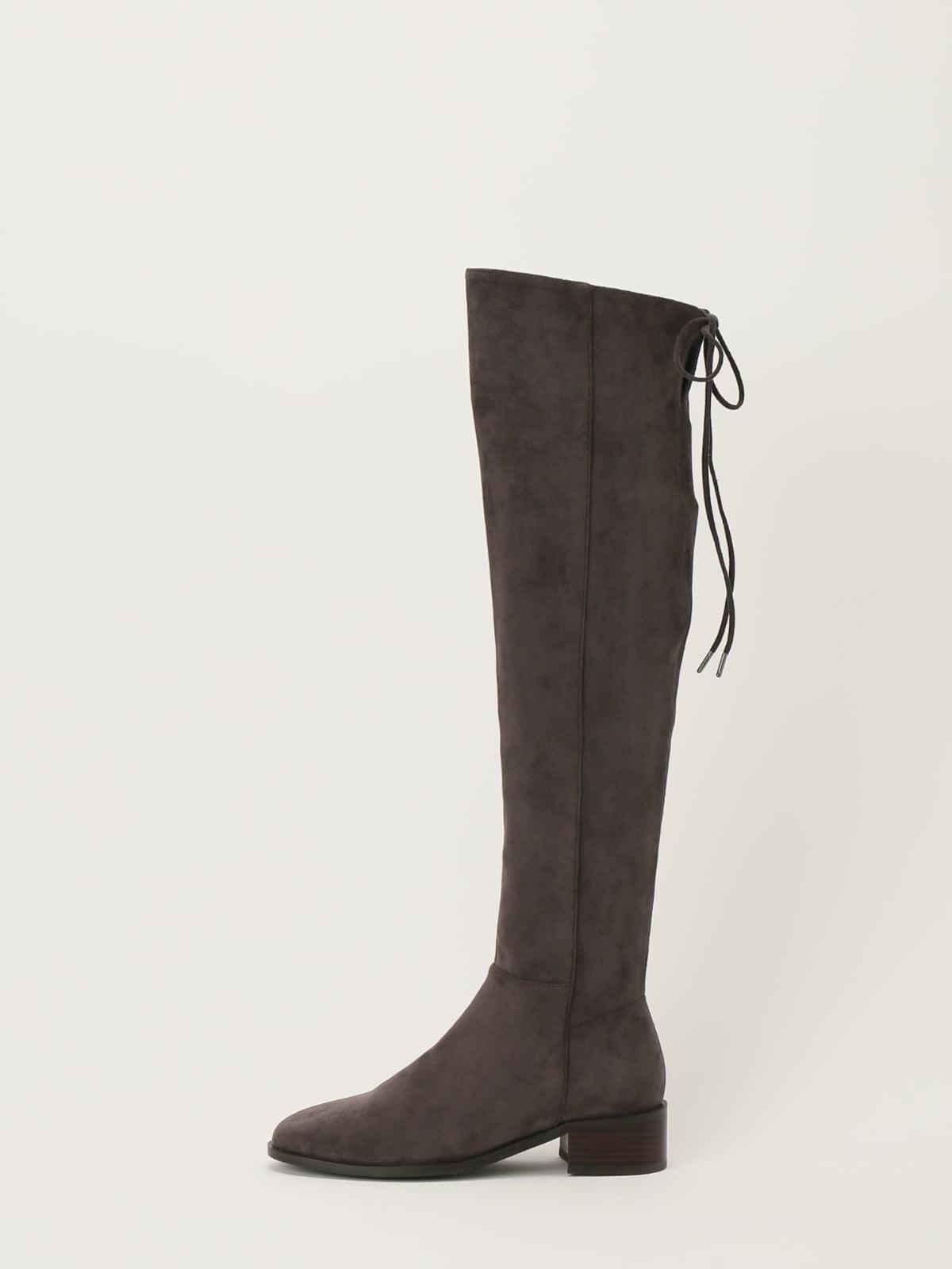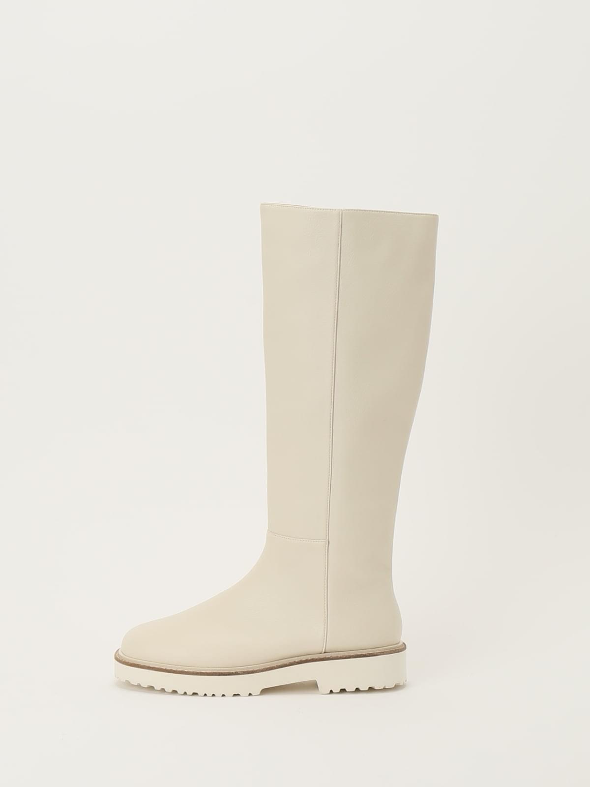 レザーワイドシャフトフラットロングブーツ / GRISE