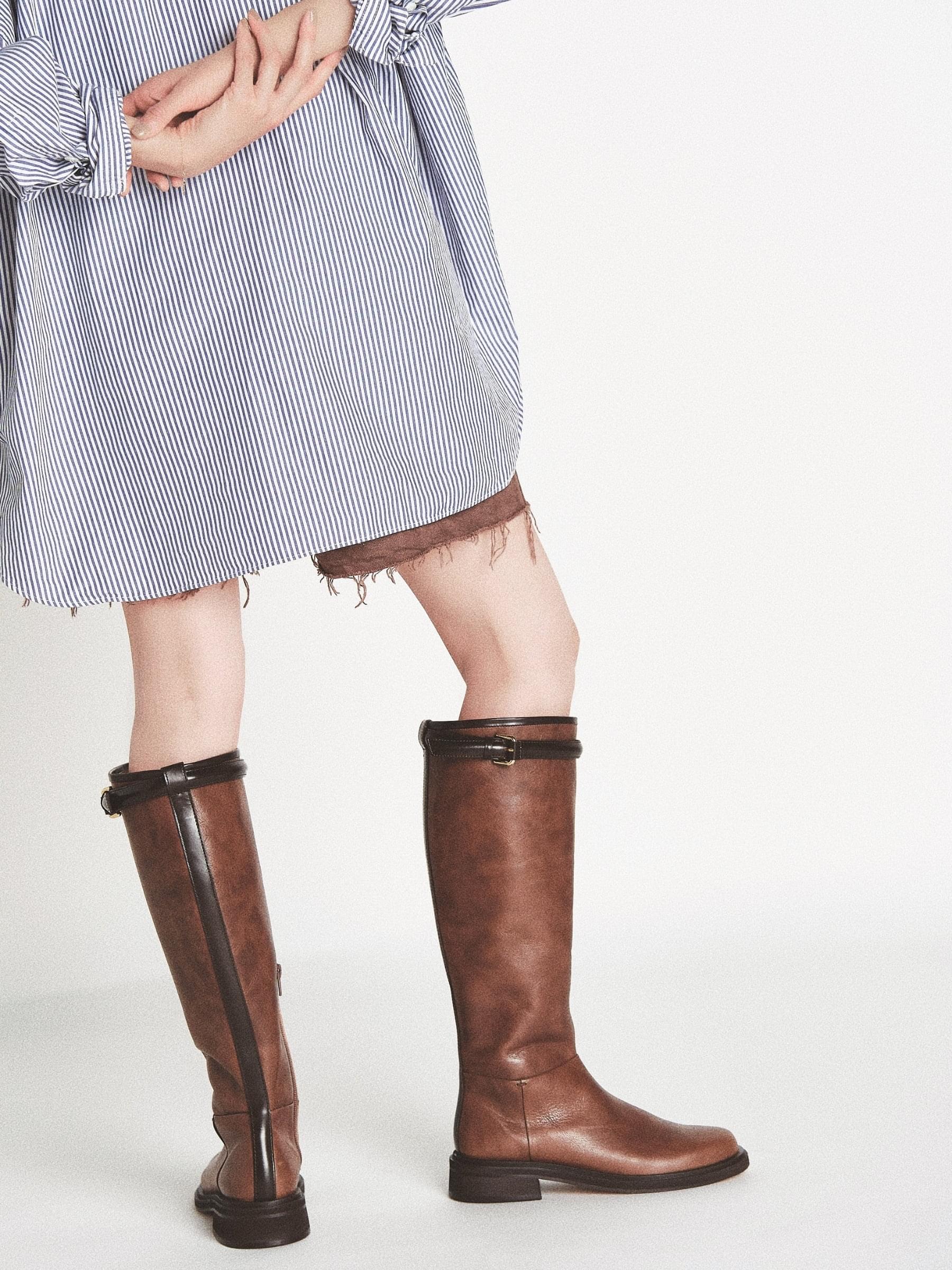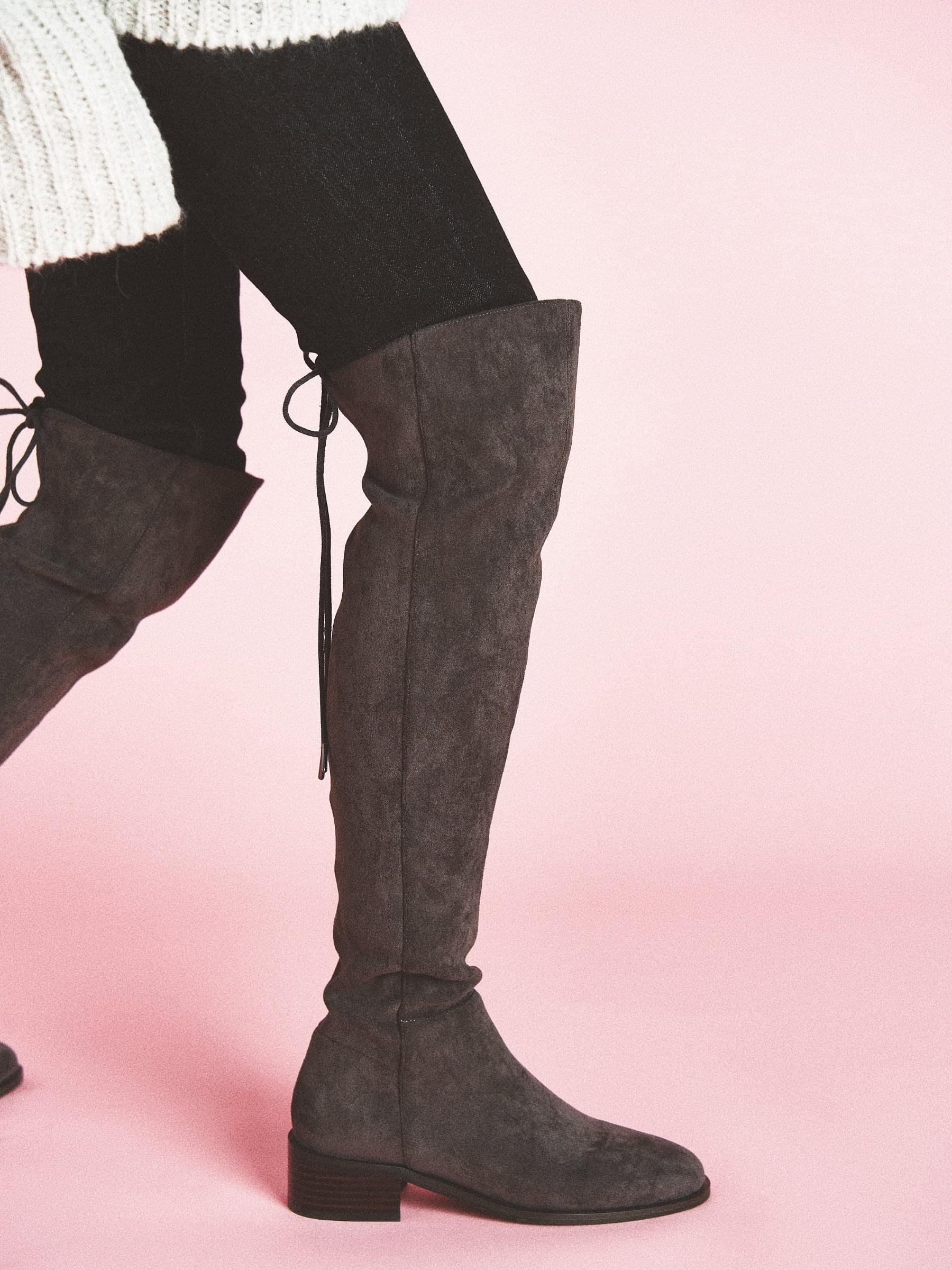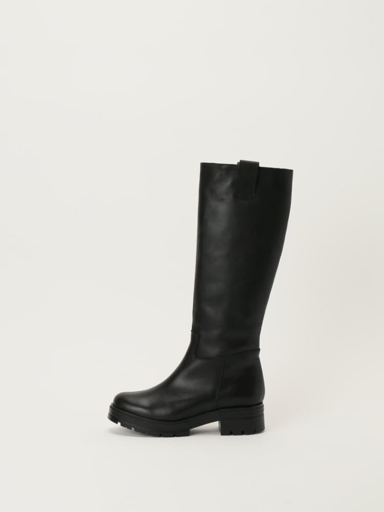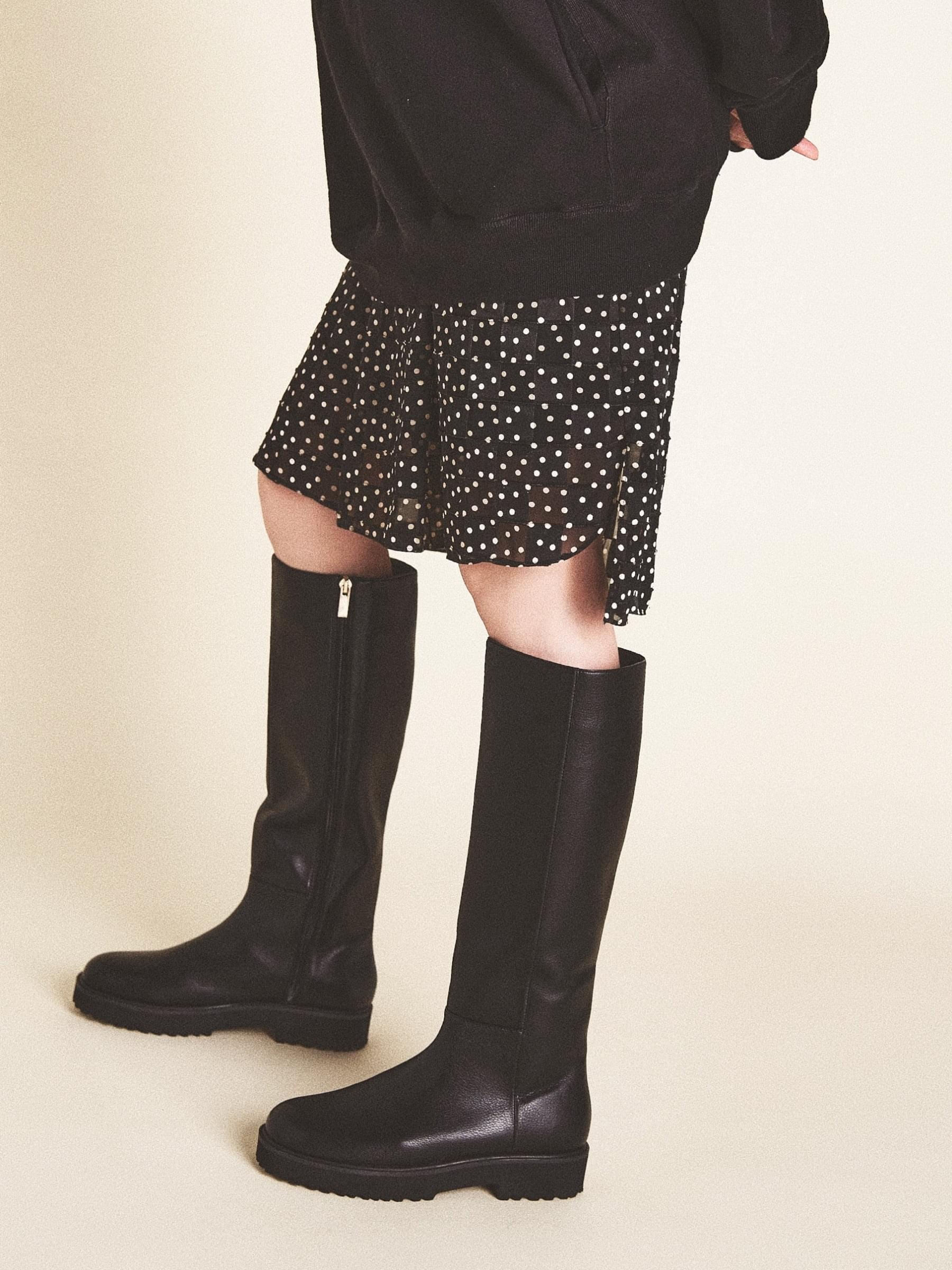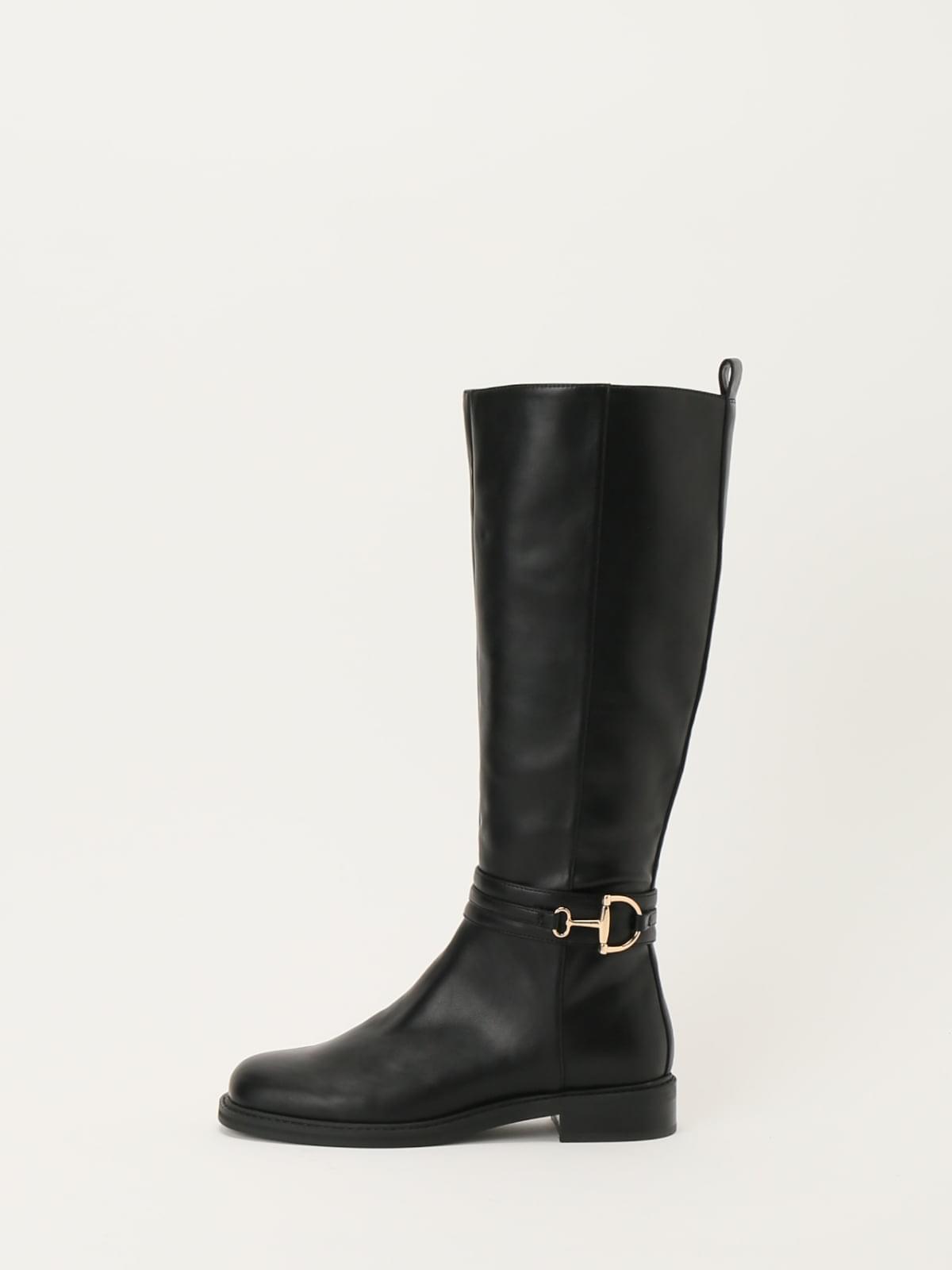 レザーワイドシャフトフラットロングブーツ / GRISE