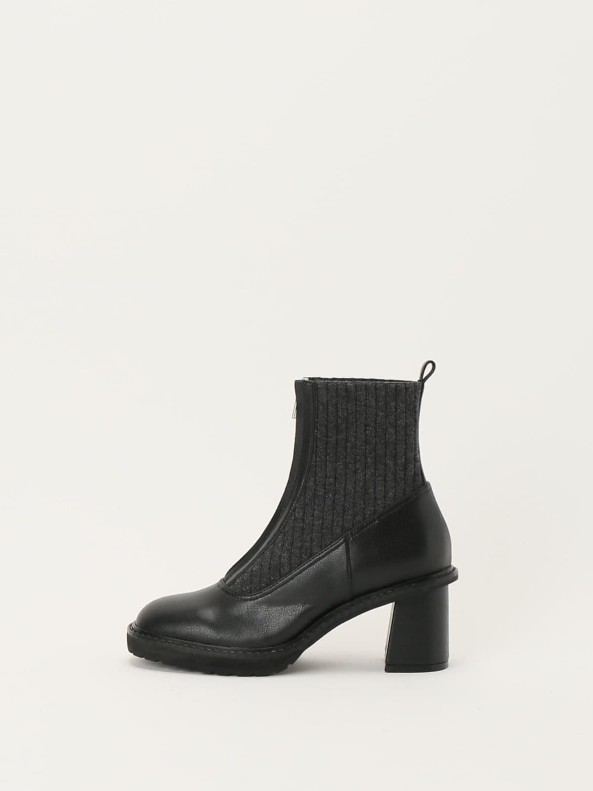 6cmレザーオブリークフィットショートブーツ / GRISE
