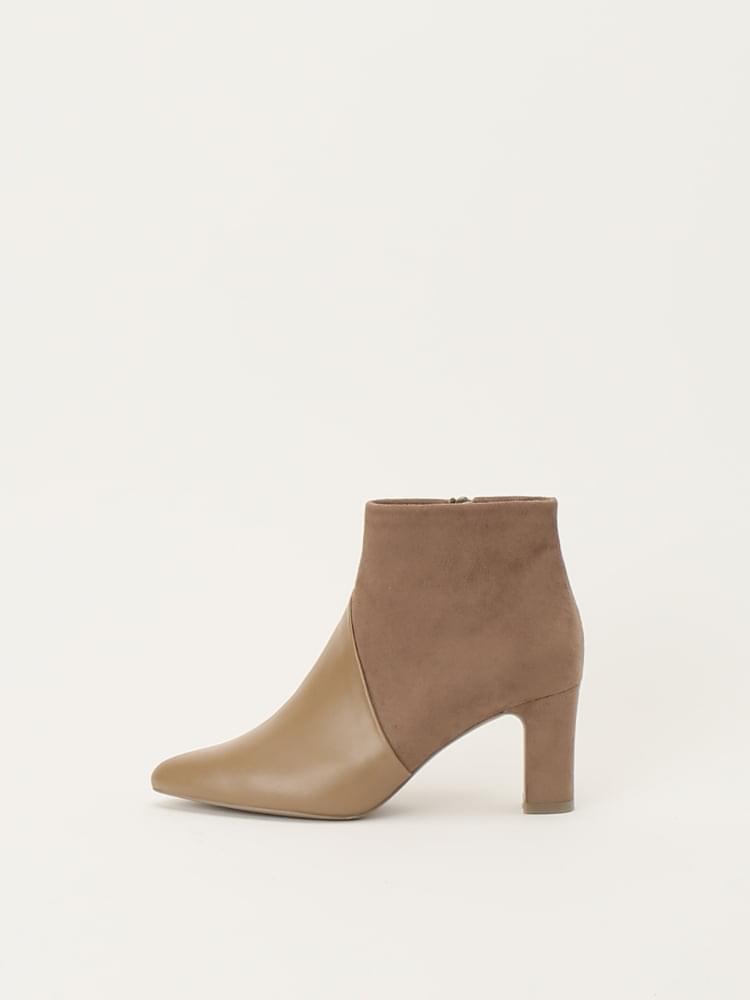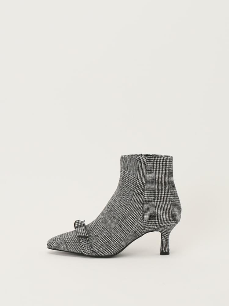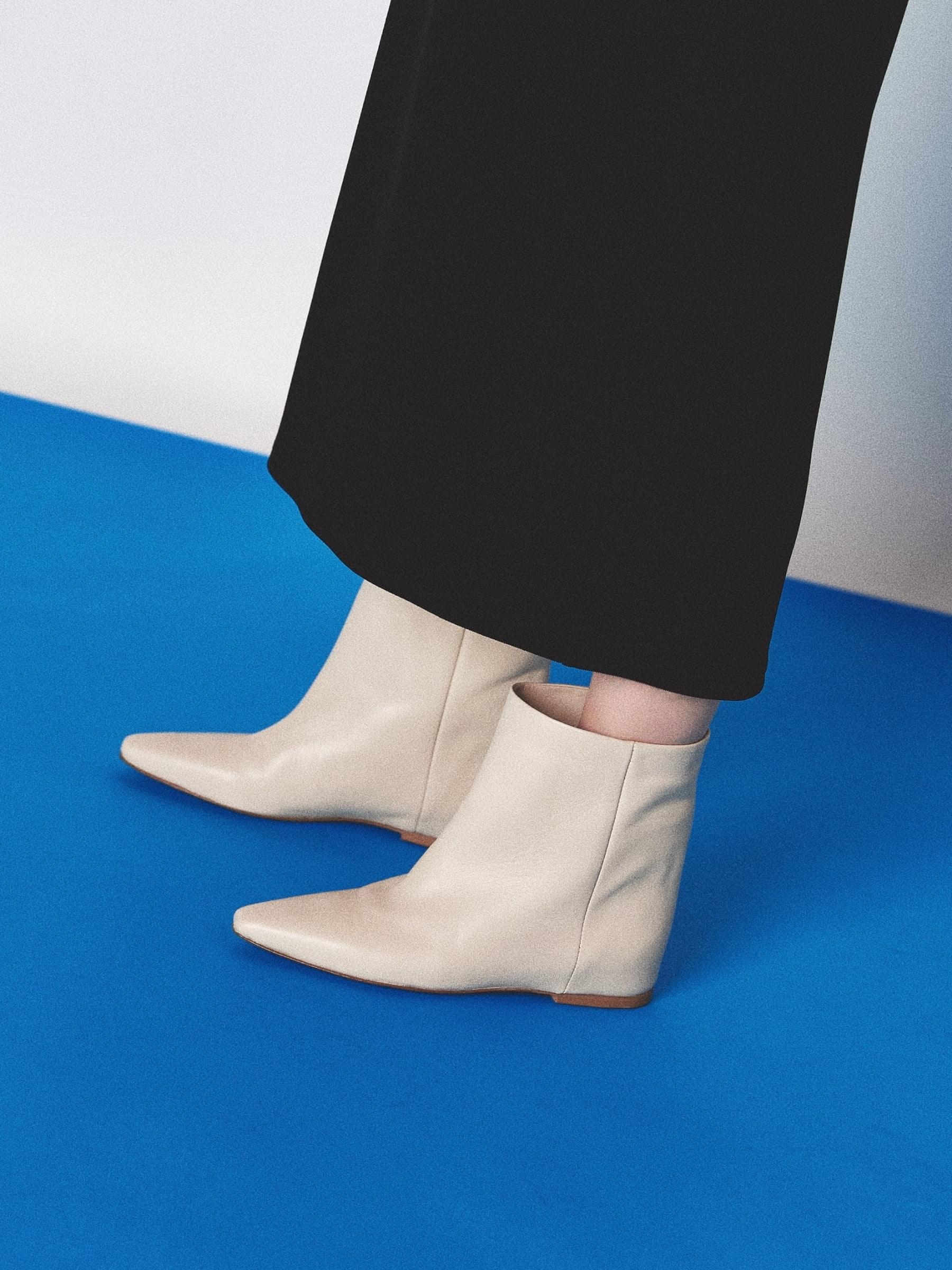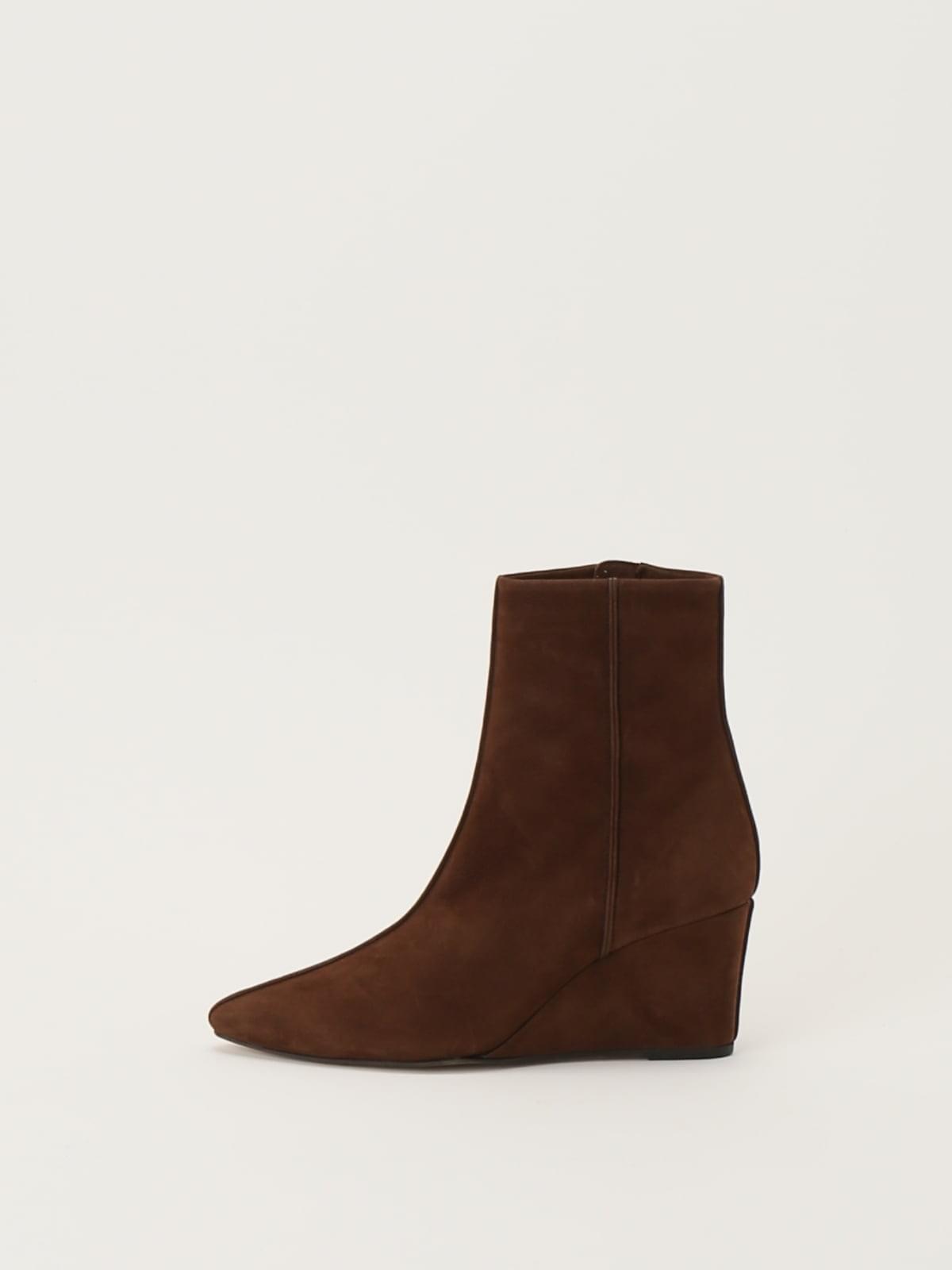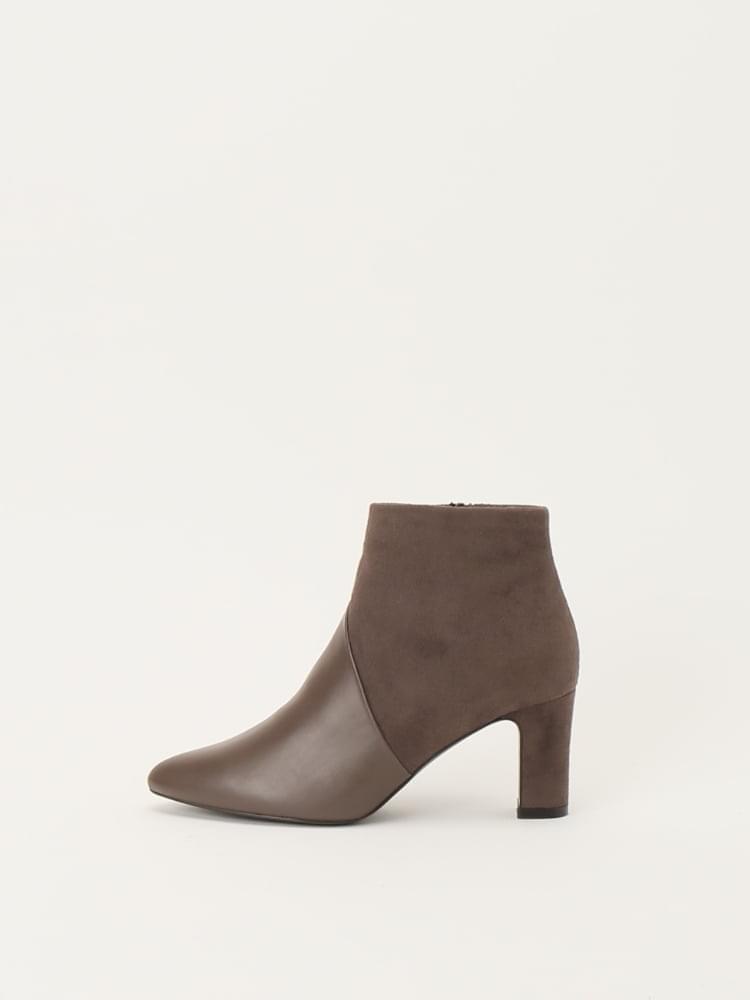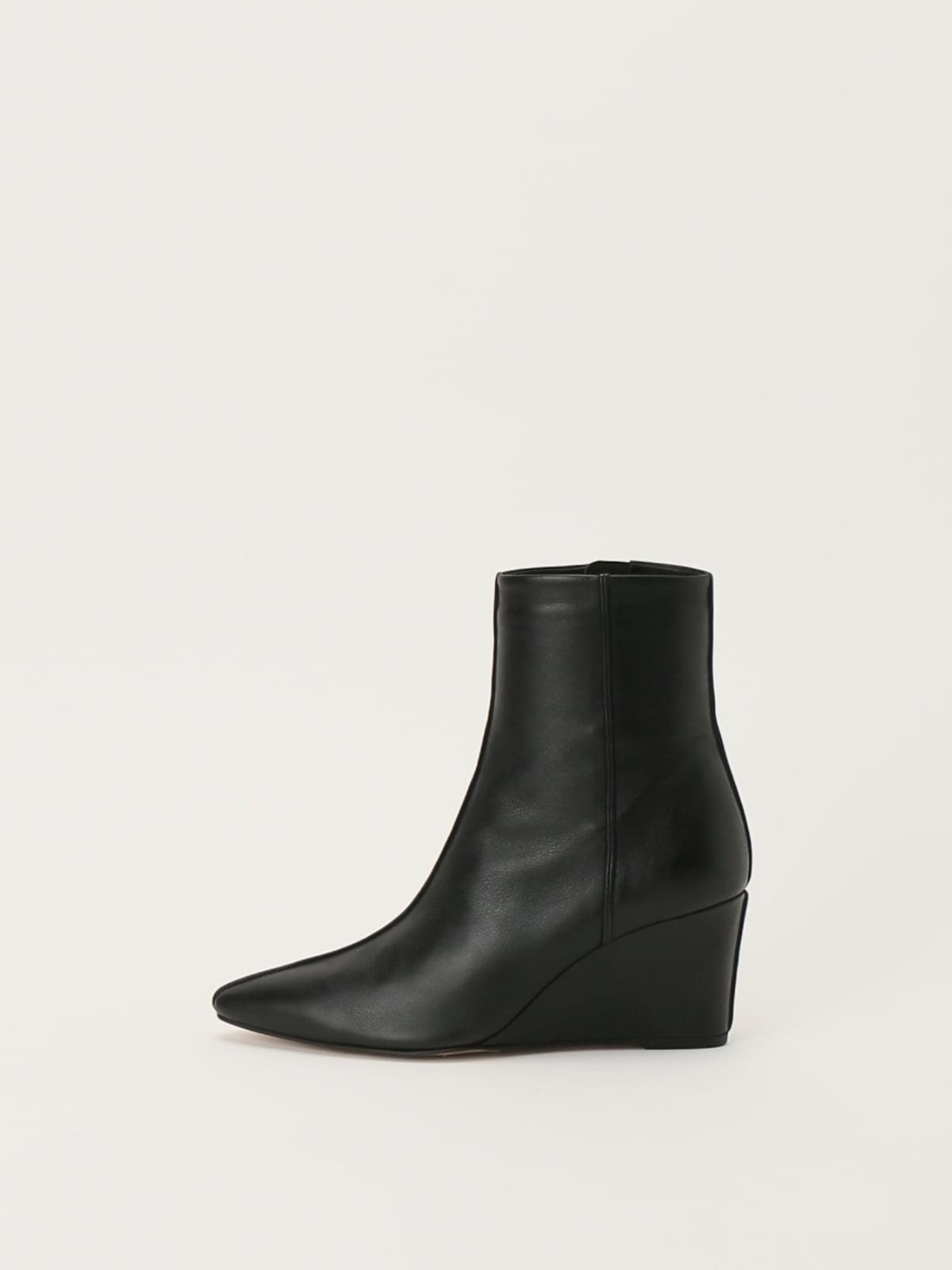 6.5cmレザーポインテッドウエッジショートブーツ / GRISE