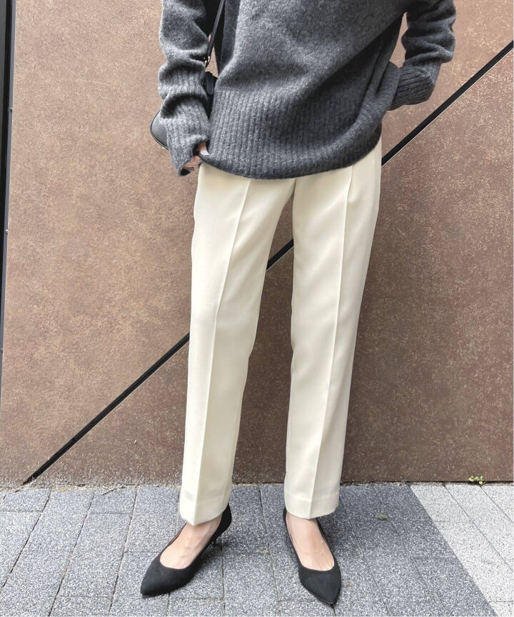 スッキリ美脚な大人顔パンツを秋素材でテーパードやストレートなど、着回し力が高いスッキリパンツをウールなどの秋冬素材にアップデート。SLOBE IENAのセミフレアパンツはイージーケアなのも嬉しいポイント。