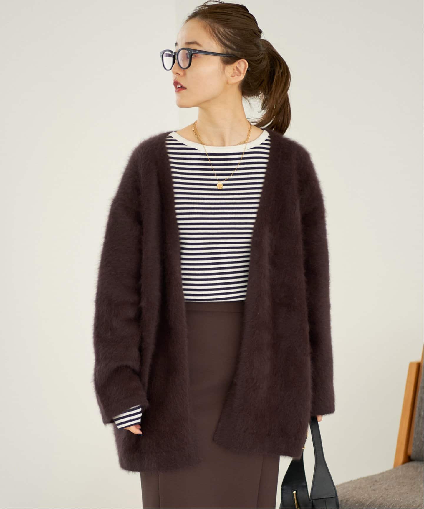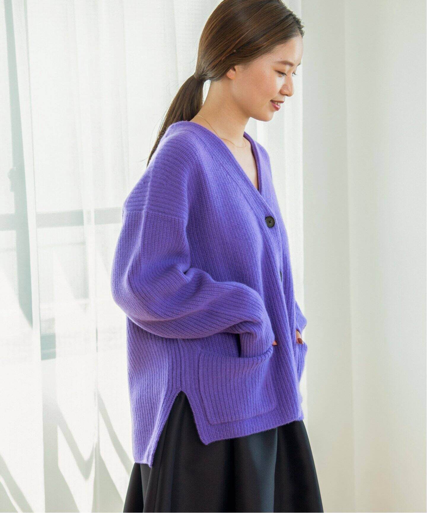 コーデに差がつく映えデザインIENAの鮮やかなパープルのカーディガンは、華やかなカラーに加えて今っぽいボックスシルエットも魅力。ハーフジップやロゴフーディなど、サマ見えデザインのトップスが◎。