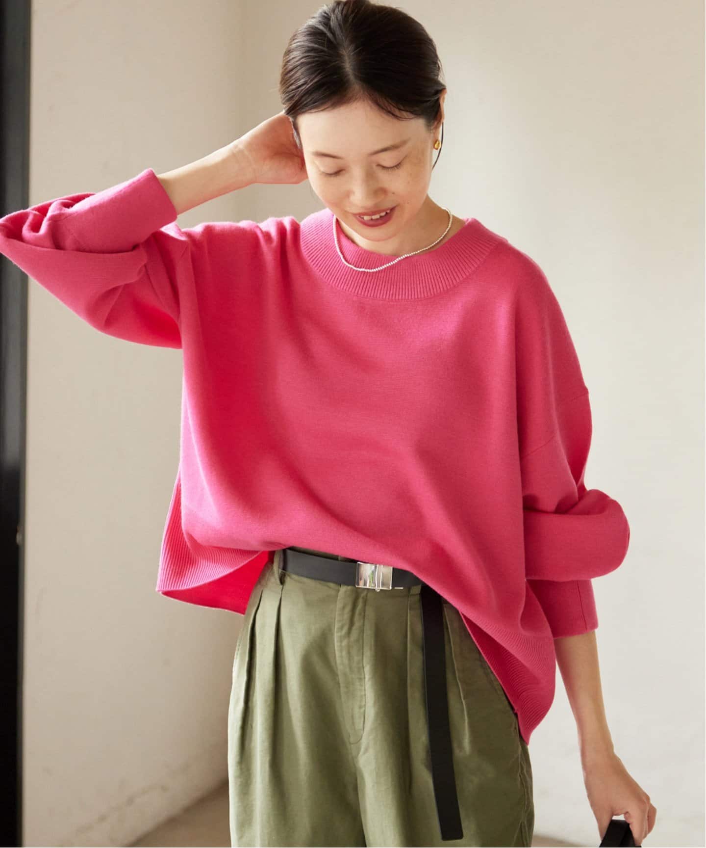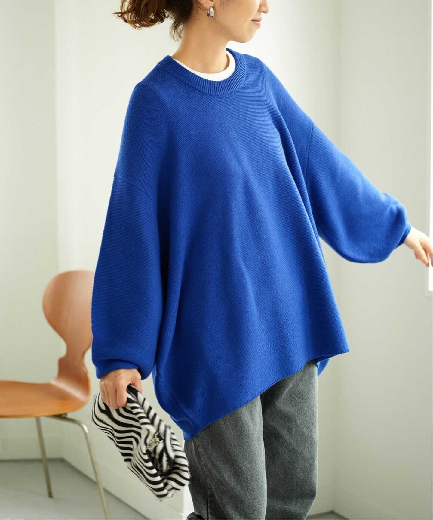 華やかに映えるカラーニットモダンなロイヤルブルーや女性らしいパープルなど、発色のキレイなカラーニットが狙い目。シンプルなデザインなら使い勝手良く、コーデに華やかさと旬を味付け。