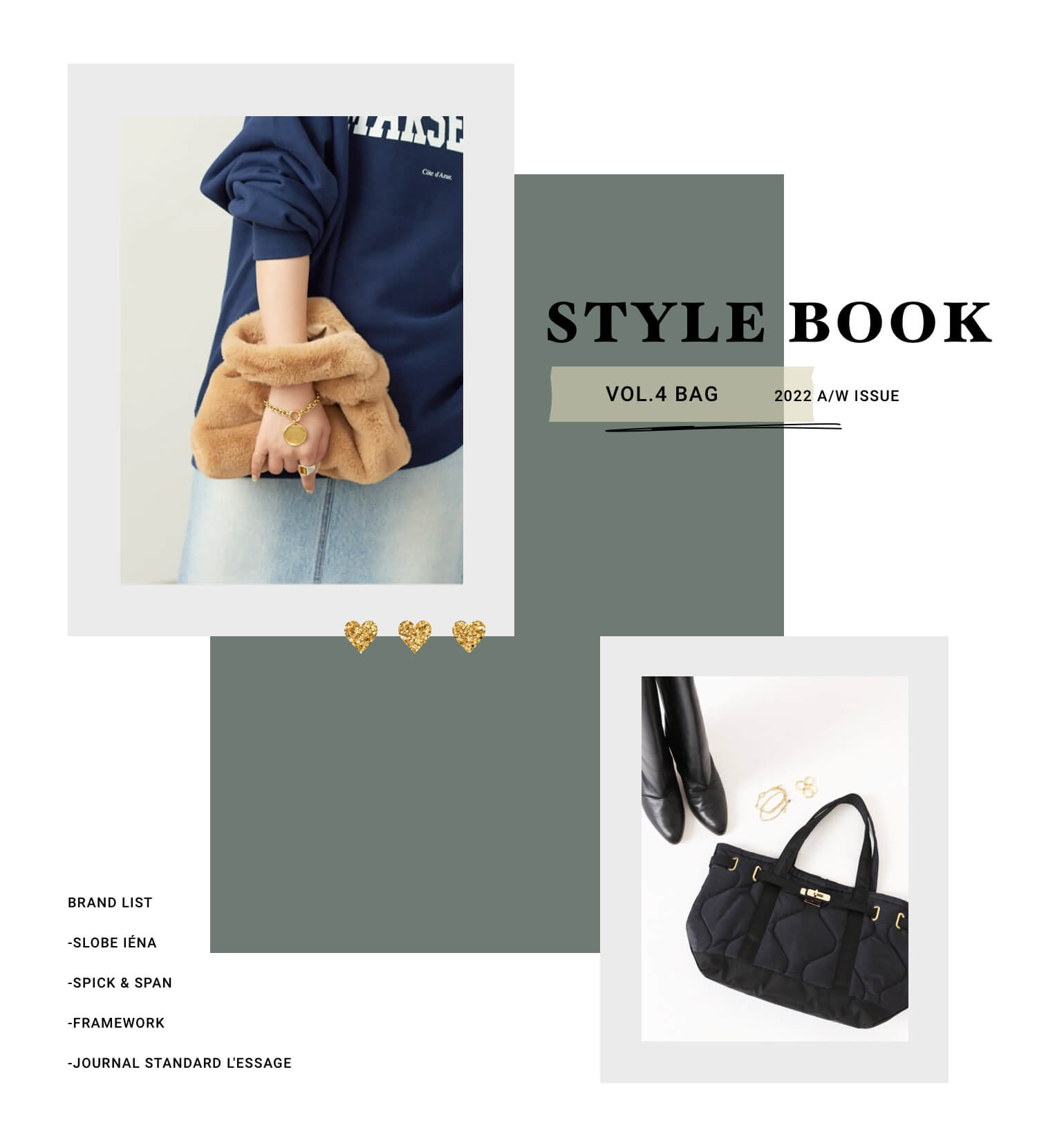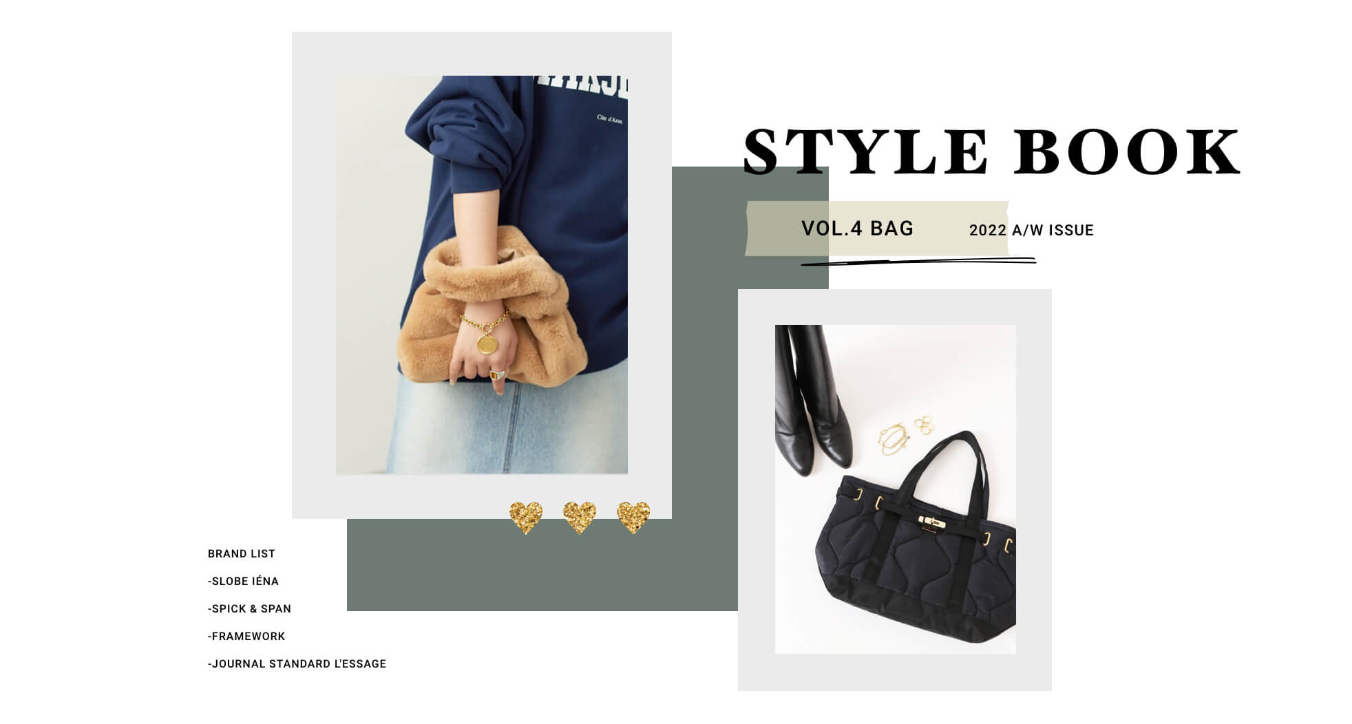 旬なキレイめバッグが続々SLOBE IENAの推しは、シンプルコーデと相性が良いカーキのミニショルダーバッグや、コーデのアクセントになるエコファーバッグ。