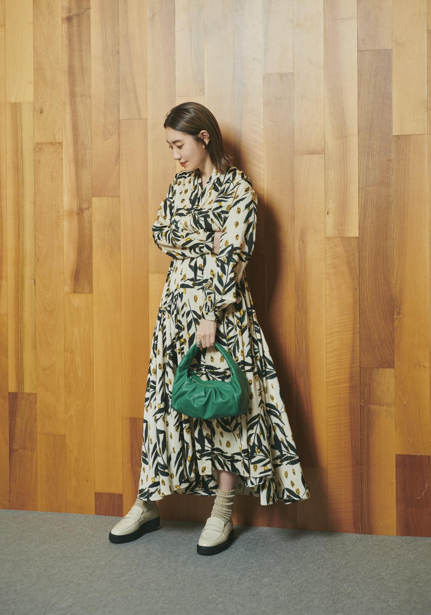 「足元が白というだけで、秋冬のコーディネートはぐっと洒落感がアップ。タン&タッセルを外したコインローファーは、シンプルながらガラス加工の光沢と甲深デザインで今っぽさもちゃんと主張してくれます。どんな柄や色もフレッシュに見せてくれて、ソックスやタイツとの相性も楽しい一足です」