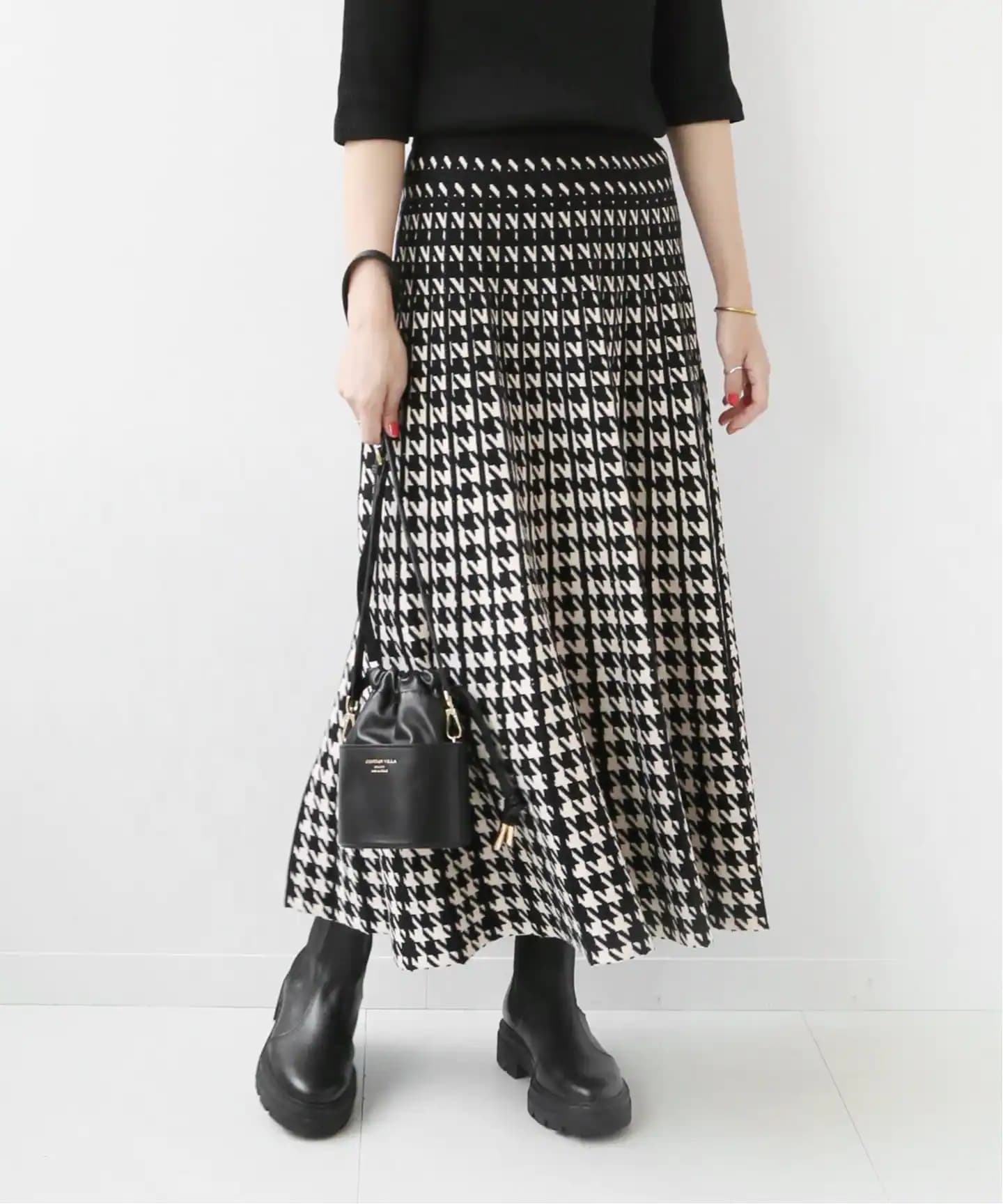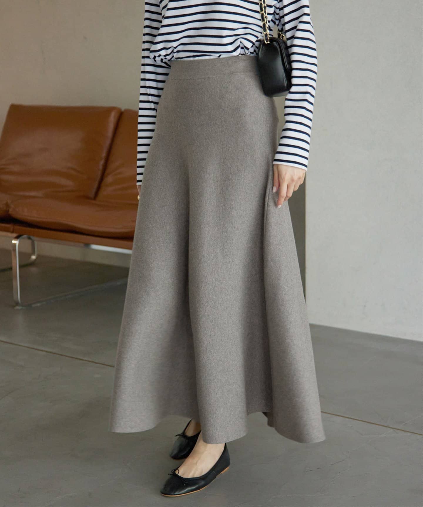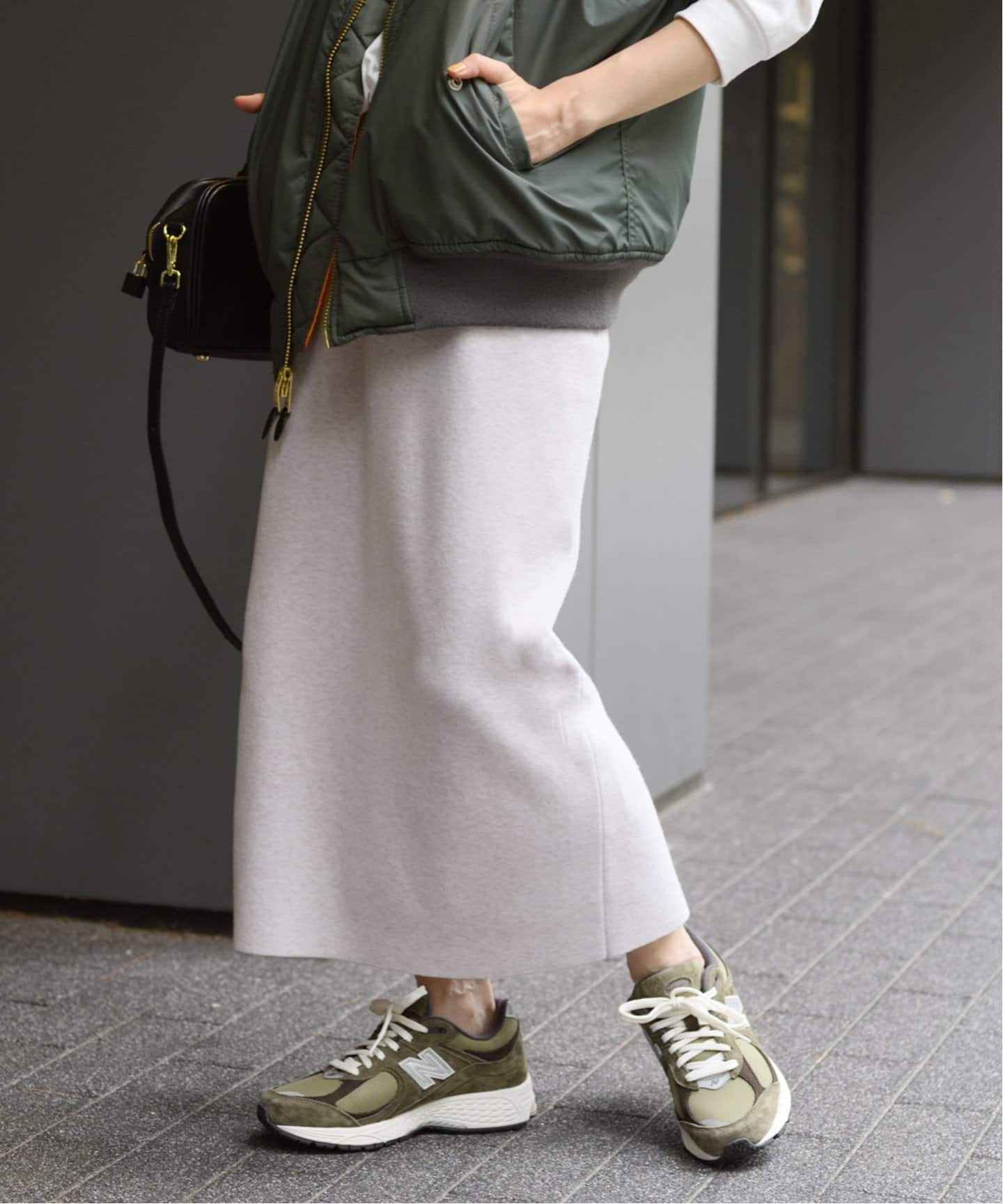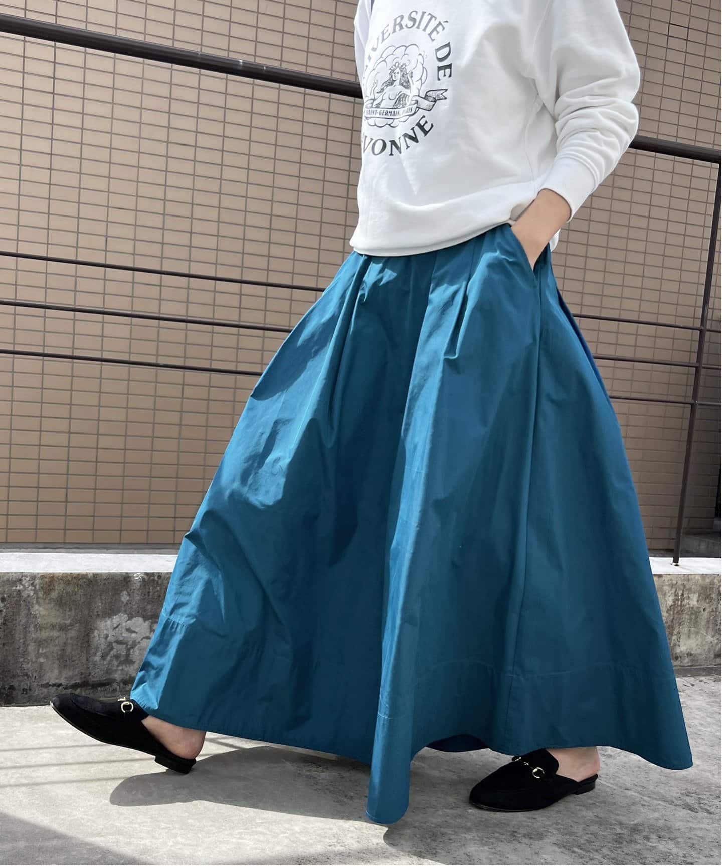 都会的なフェミカジにハリコシのある素材のボリュームスカートはシルエットがキレイに仕上がりモダンな表情に。スウェットなどのカジュアルトップスとつないで、あか抜けたスタイルを作って。