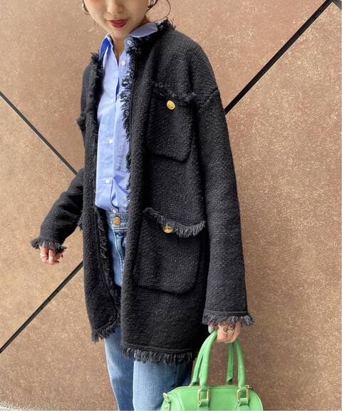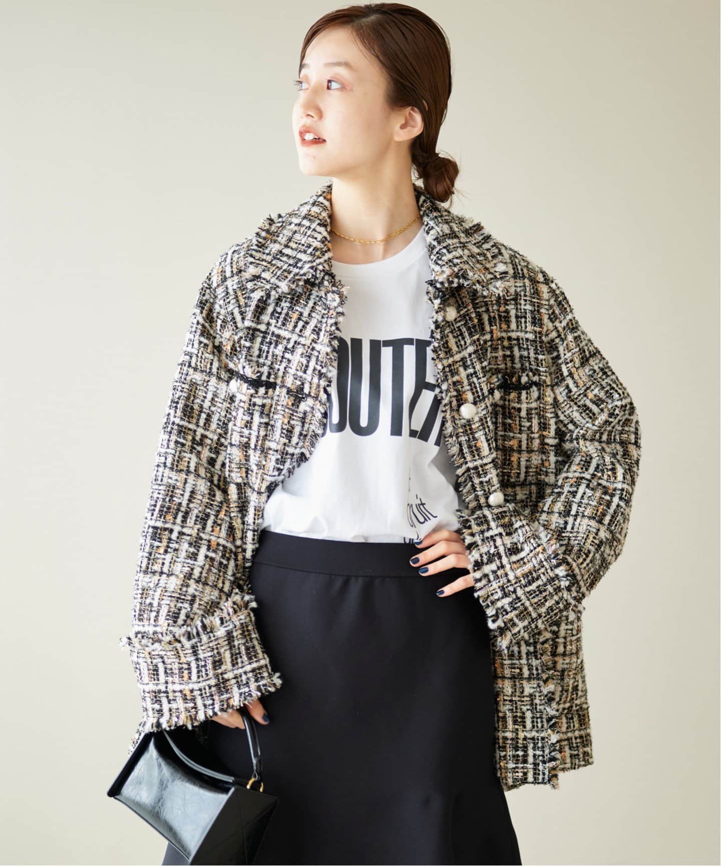 表情豊かに映えるツイードジャケットたくさんの色味が混じったマルチカラーのツイードが洒落感たっぷりのジャケットは、ショートコートのような着映えるAラインシルエットも◎。
