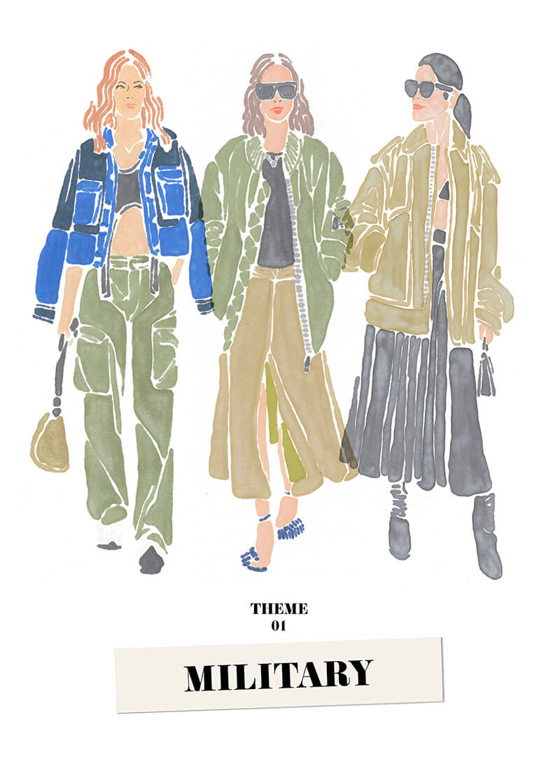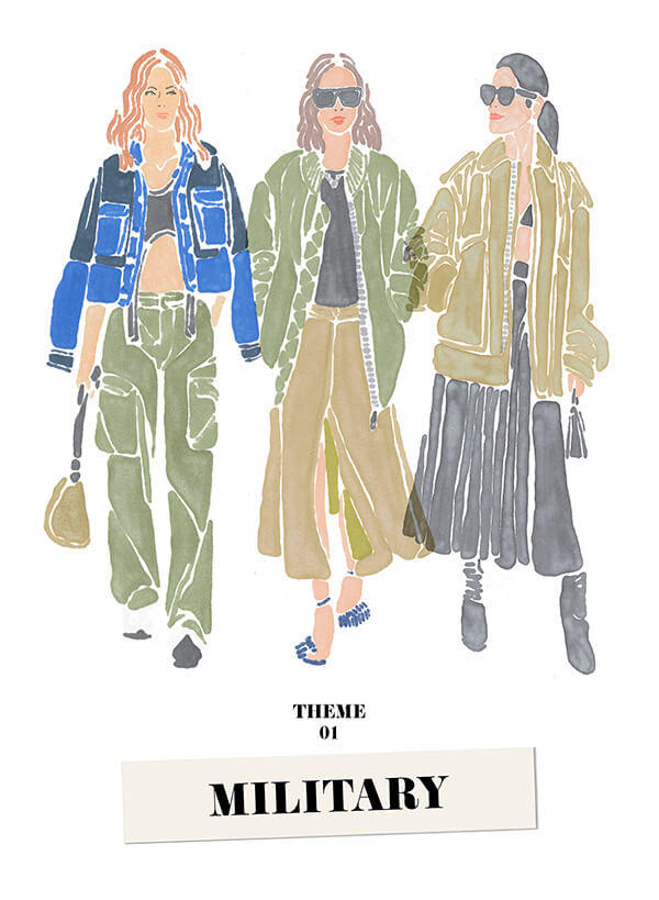 丸山: 例えばツイードジャケットだったり足元にはヒールを合わせたり、レディライクなアイテムを掛け合わせるのも今季の特徴。コーディネート次第でトレンド感を出せるのもミリタリーの魅力だと思います。