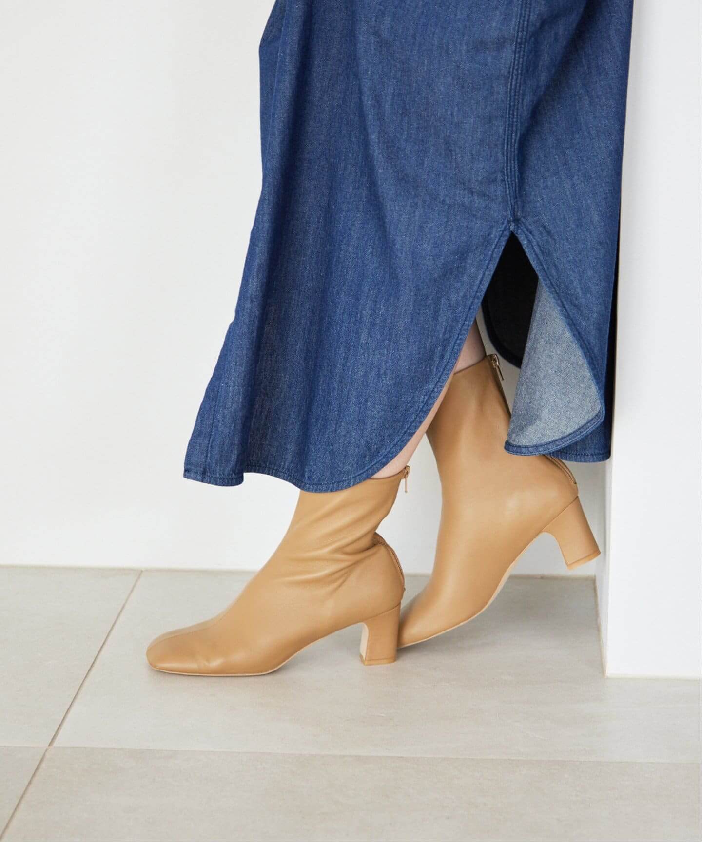 ショートブーツが頼りなるストレッチの効いたSLOBE IENAのショートブーツは、洗練された印象に導くベージュにトライして。LAURENCEはメタリックなチャンキーヒールがアクセント!