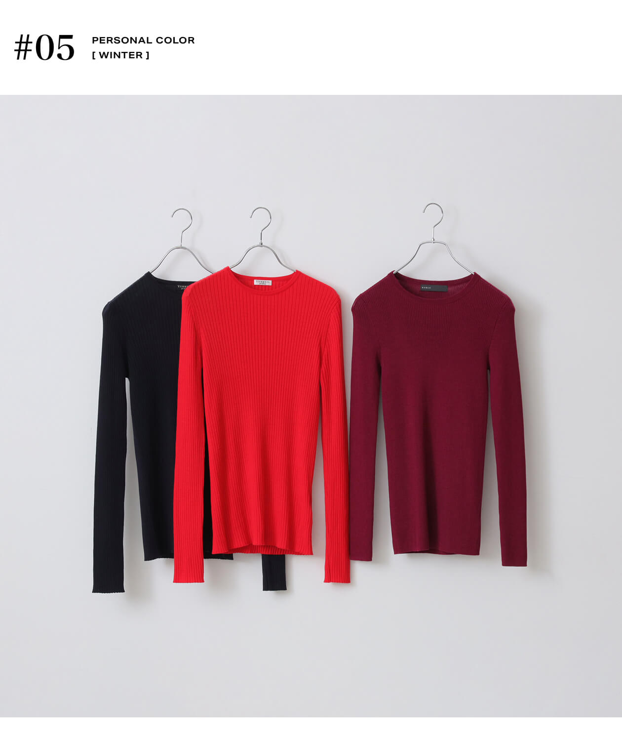 - トップスにヴィヴィッドカラーを持ってきても色負けしないのがウィンタータイプの長所!だからこそおすすめはレッドのトップス。女っぷりをアップさせる鮮やかなレッドに加えて、ややワイン寄りのカラーも秋冬らしく着こなせます。