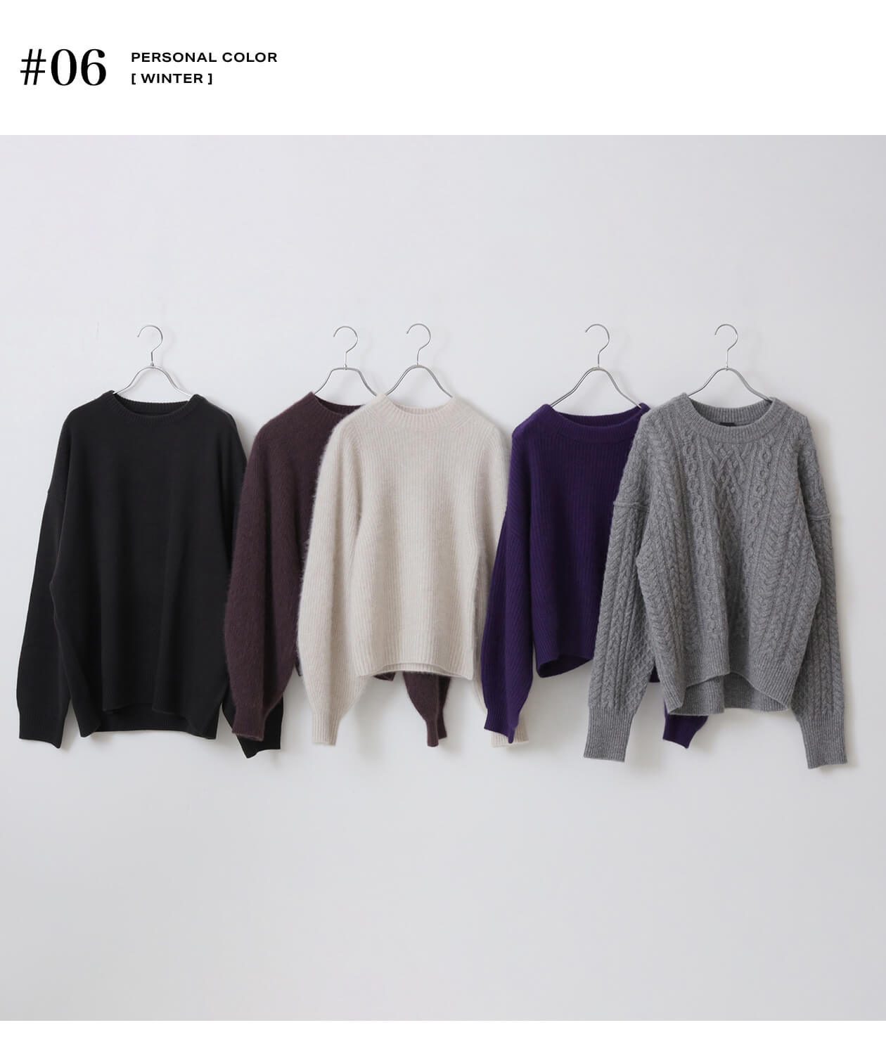 - ざっくりとしたビックシルエットニットはラフな中にも品のあるアイテムをチョイス。グレー・ネイビーも暗めの色味を選ぶことで落ち着いた印象を持たせてくれます。ゆったりとしたシルエットなので、シアーカットソーやボウタイプラウスなどをレイヤードして旬度をアップ。