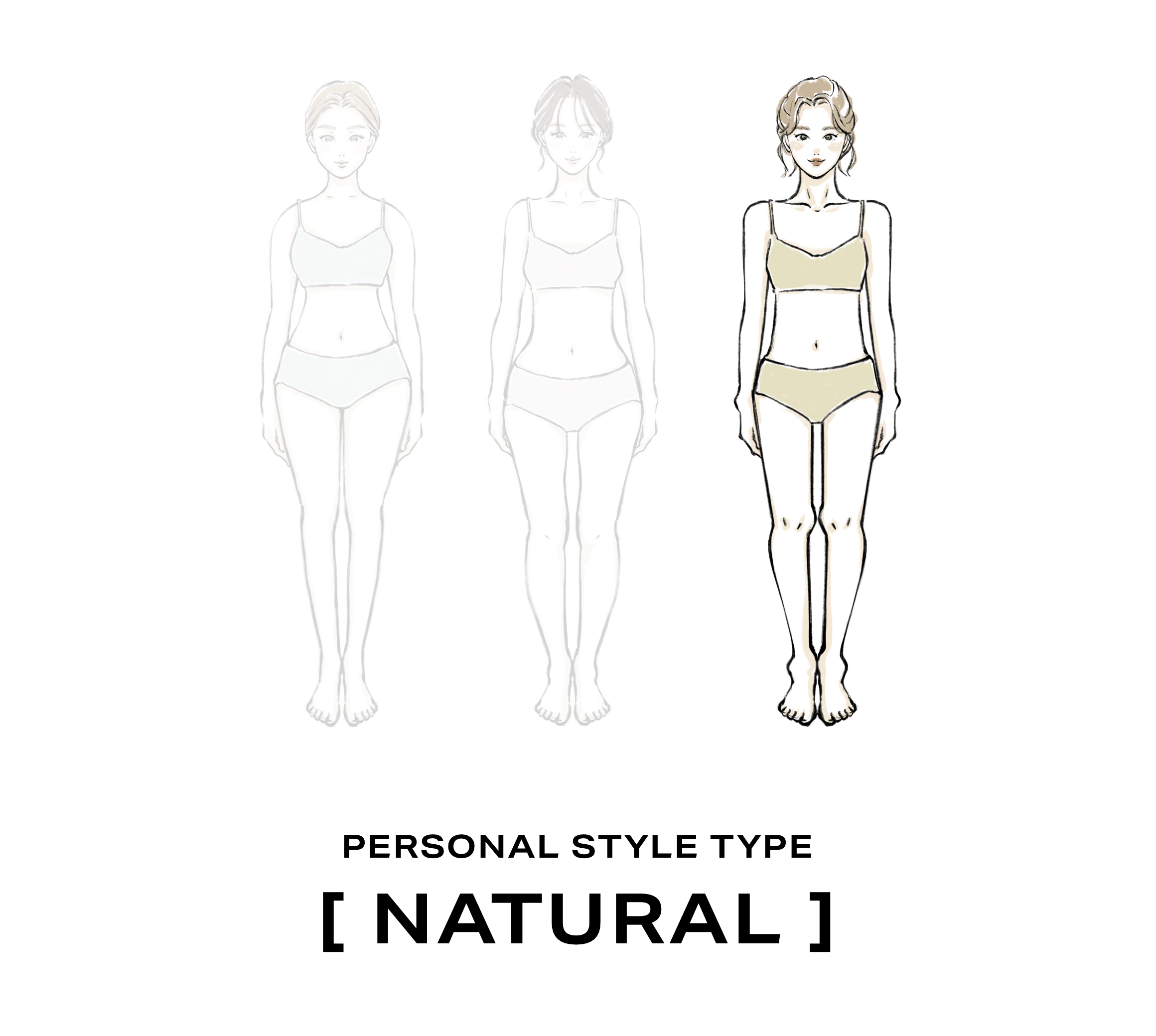 オーバーサイズでざっくりとした質感の似合うナチュラルタイプ。骨感が悪目立ちするピッタリサイズのものを避ければどんなデザインも広く着こなせます。プレイフルなカラーのクルーネックニットが1枚あれば、重たくなりがちな秋冬コーデの鮮度が急上昇!
