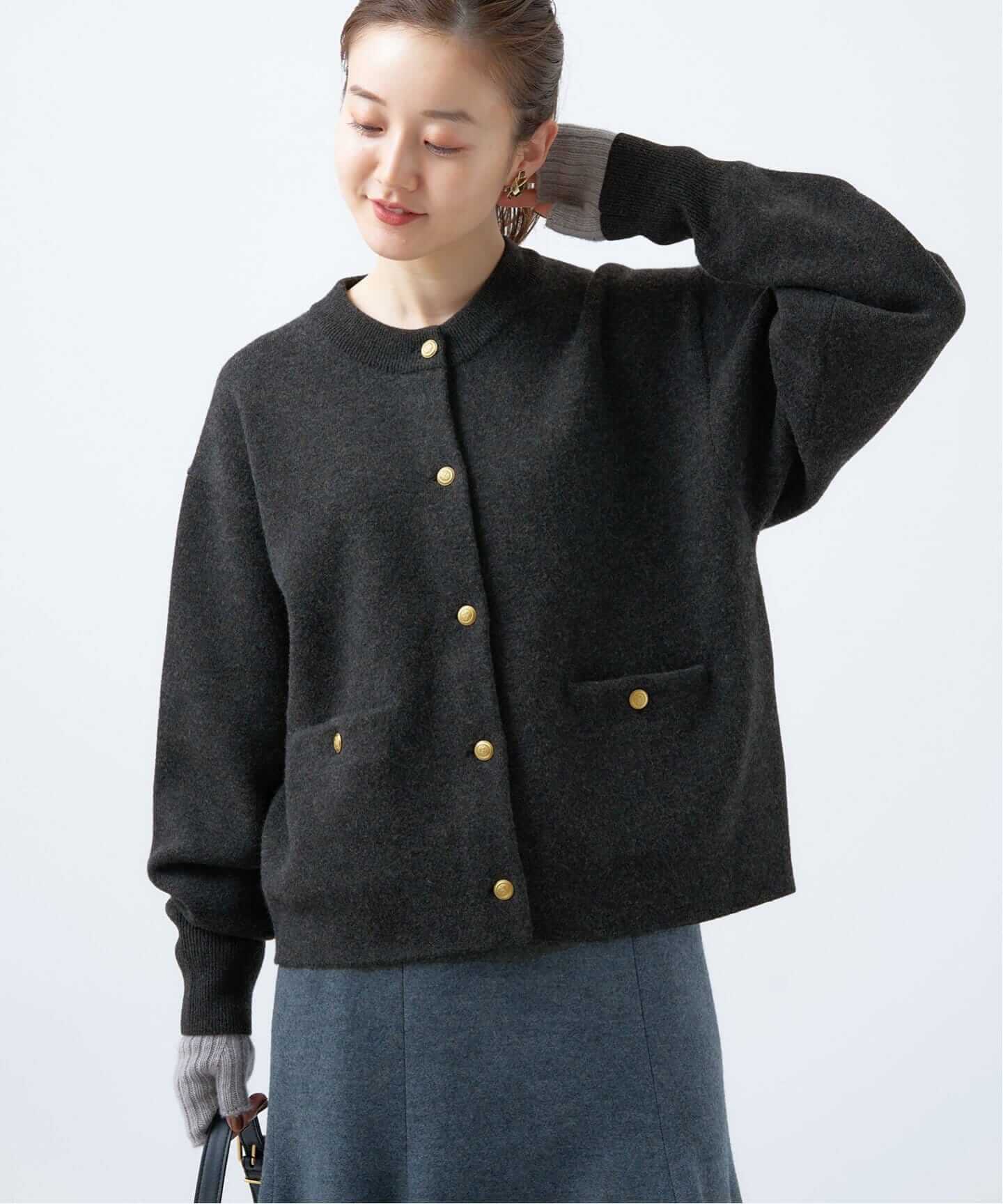最旬カーディガン大人女性に嬉しいジャケット風の金ボタンタイプから、胸元と背中のロゴがアイコニックなインターシャニットまで。ますますバリエーションが広がったカーディガンに注目。