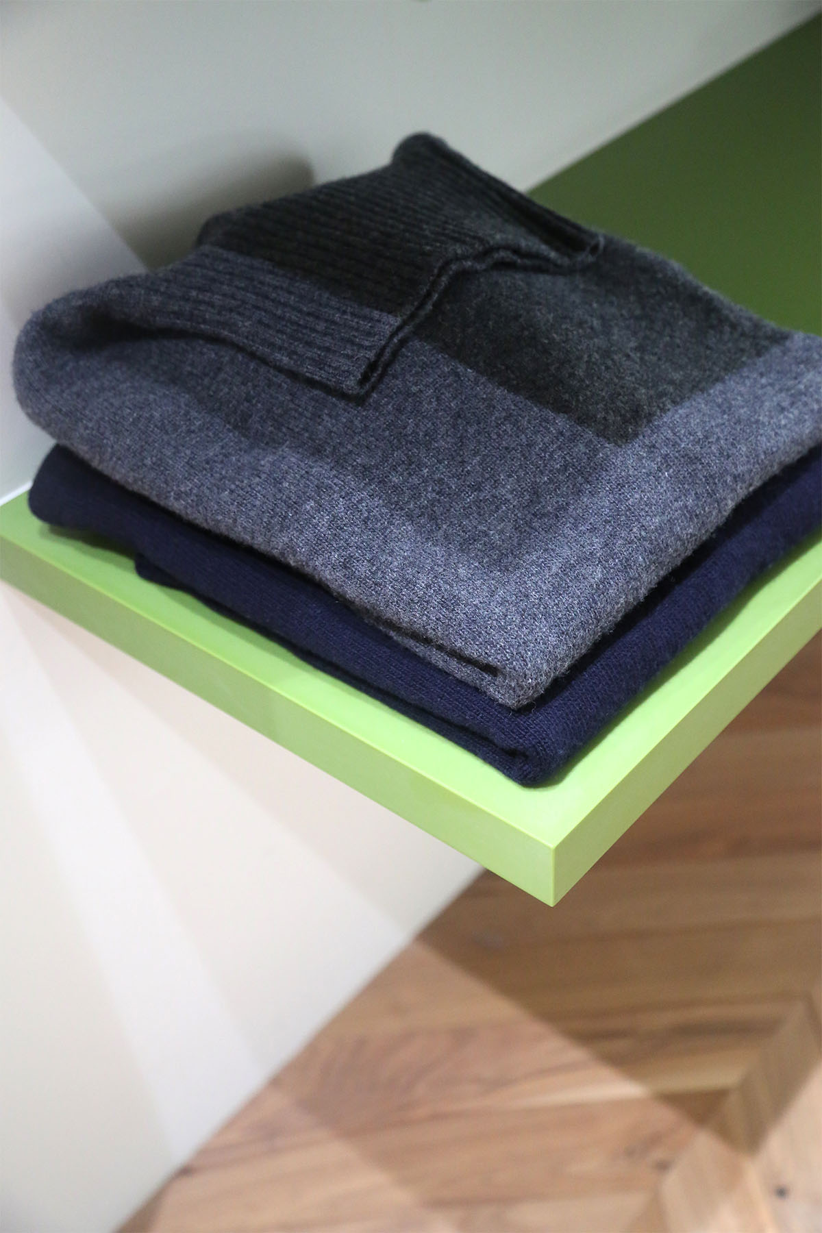 フロントジップのミニマルなデザインはサラッと着るだけで旬の顔に。肩を落としたゆとりがあるサイズ感と自然な落ち感のある編地で着る人の肩に沿いスッキリと見えます。