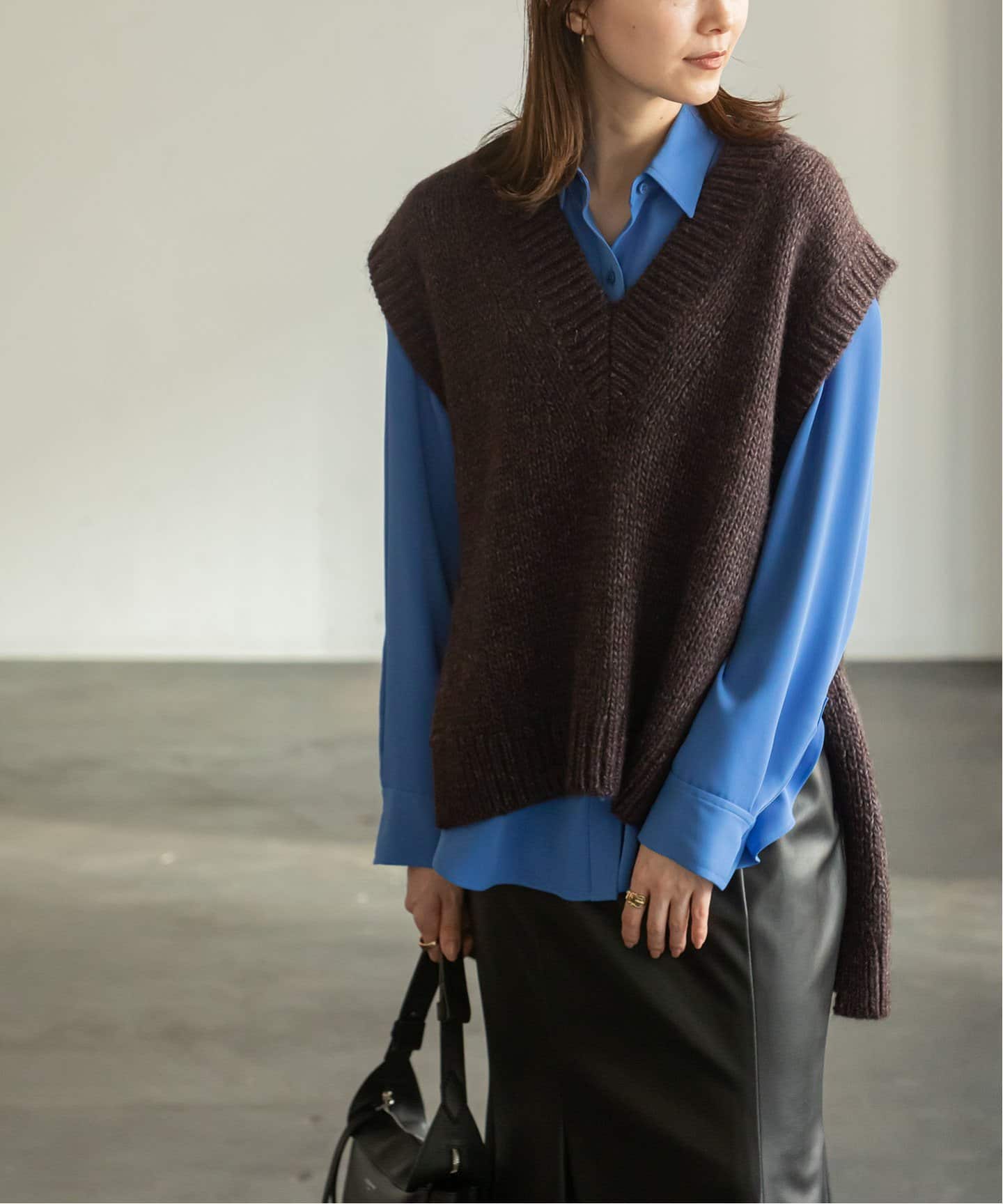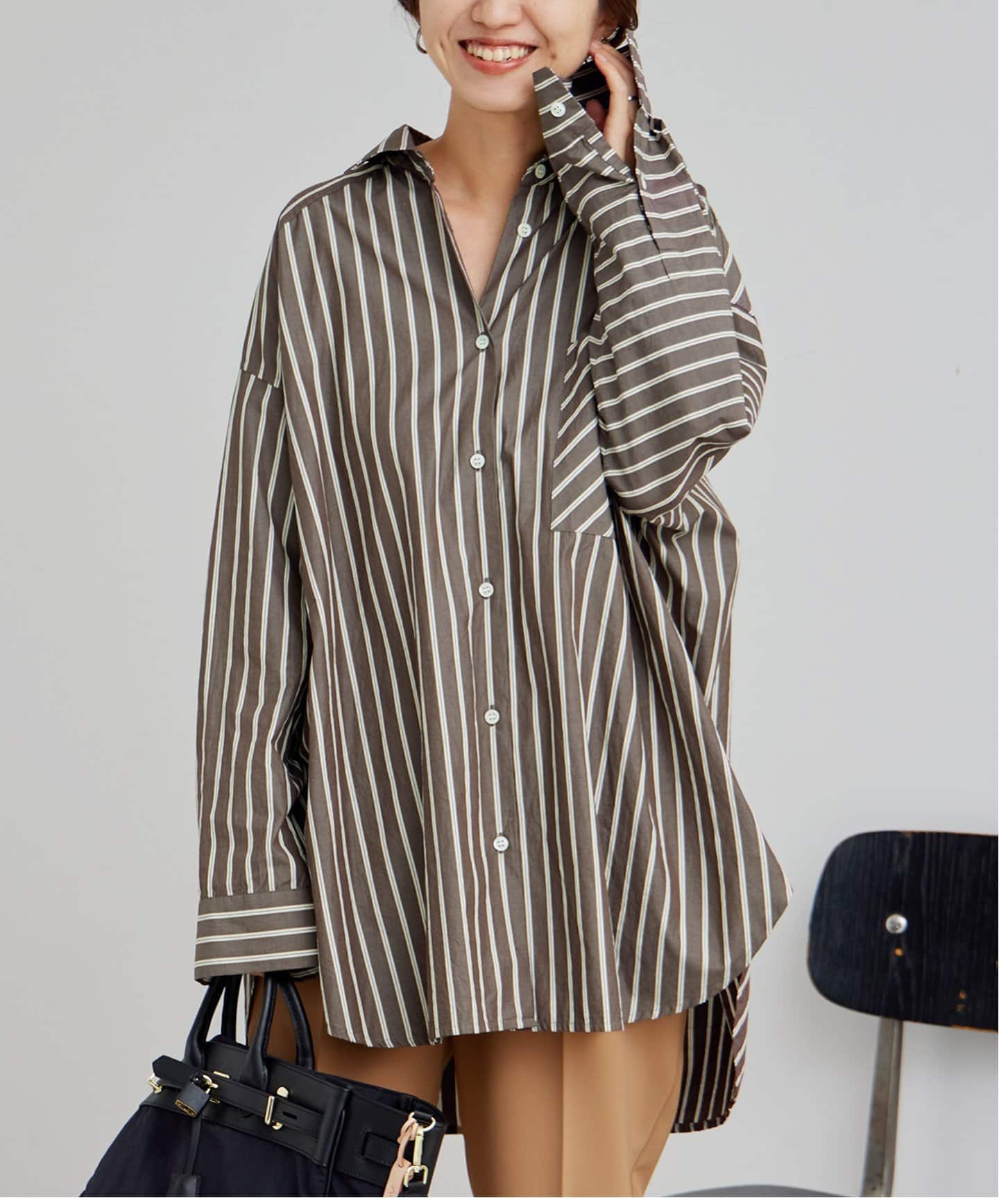ブラウンで一気に上品にストライプシャツや着映えブラウスは、ブラウンに衣替えするだけでシーズンムードを簡単に更新。ニットもブラウンを選べば、シックで上品な着こなしにアップデート。