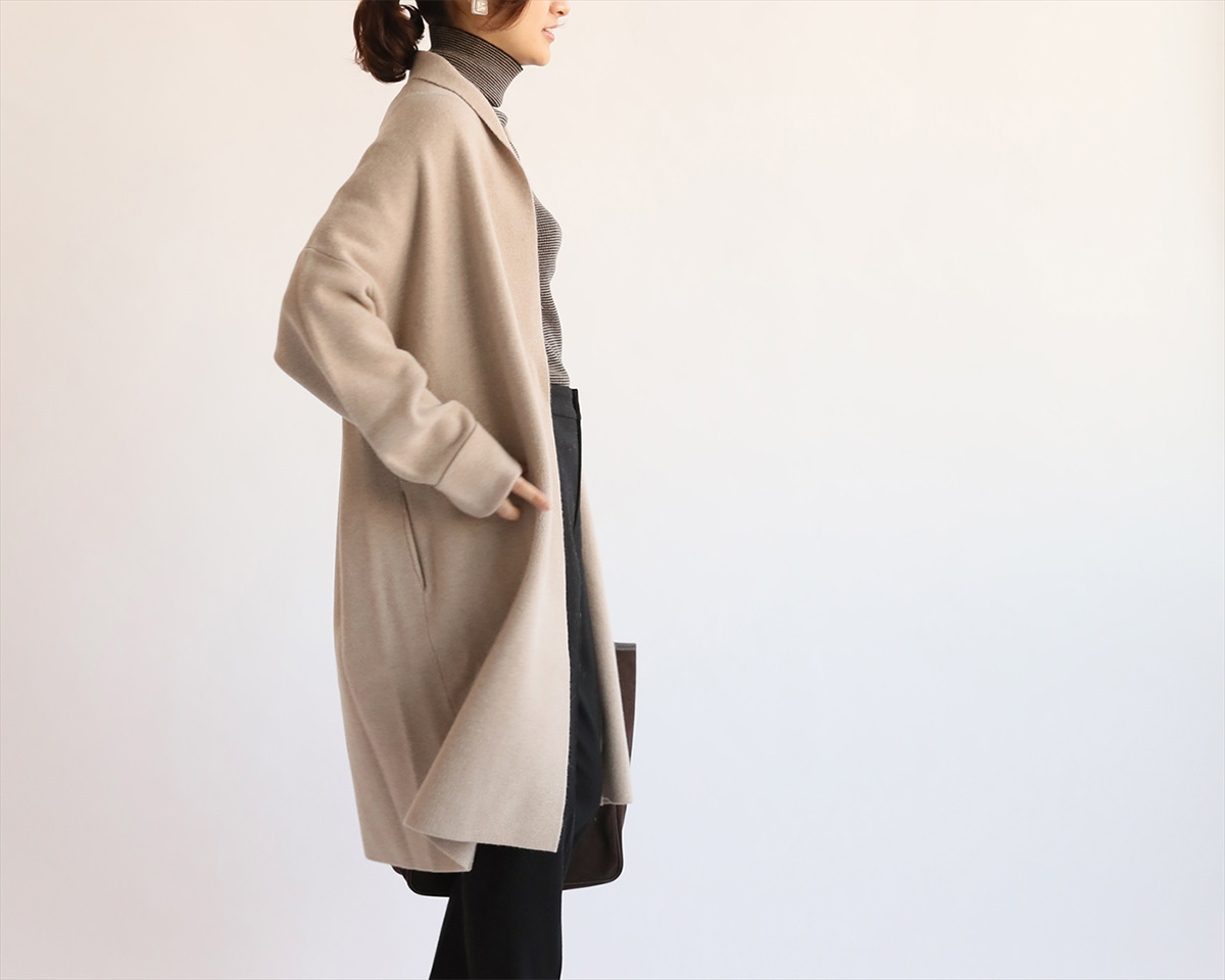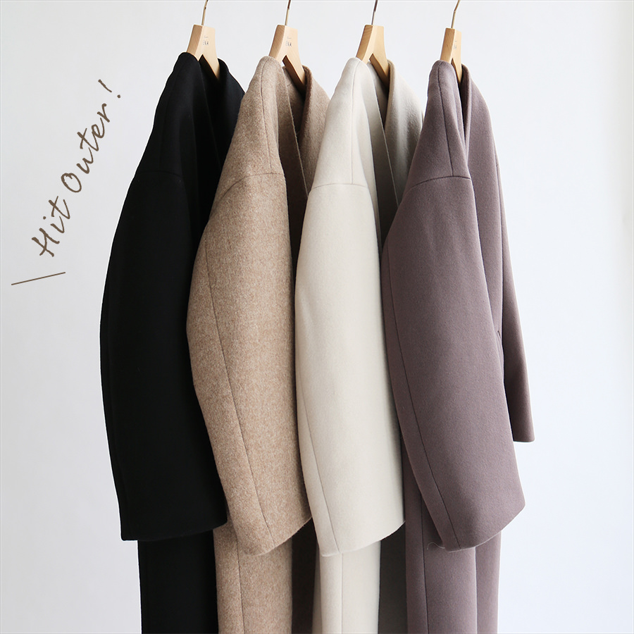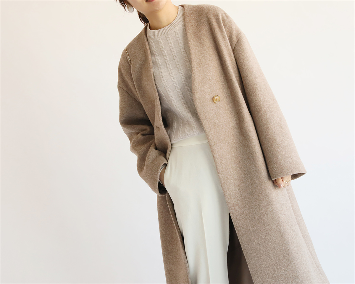 ※クレジットの記載がないアイテムは入荷次第記載されます。- IENAダブルビーバーノーカラーVネックコート◆¥47,300(税込)