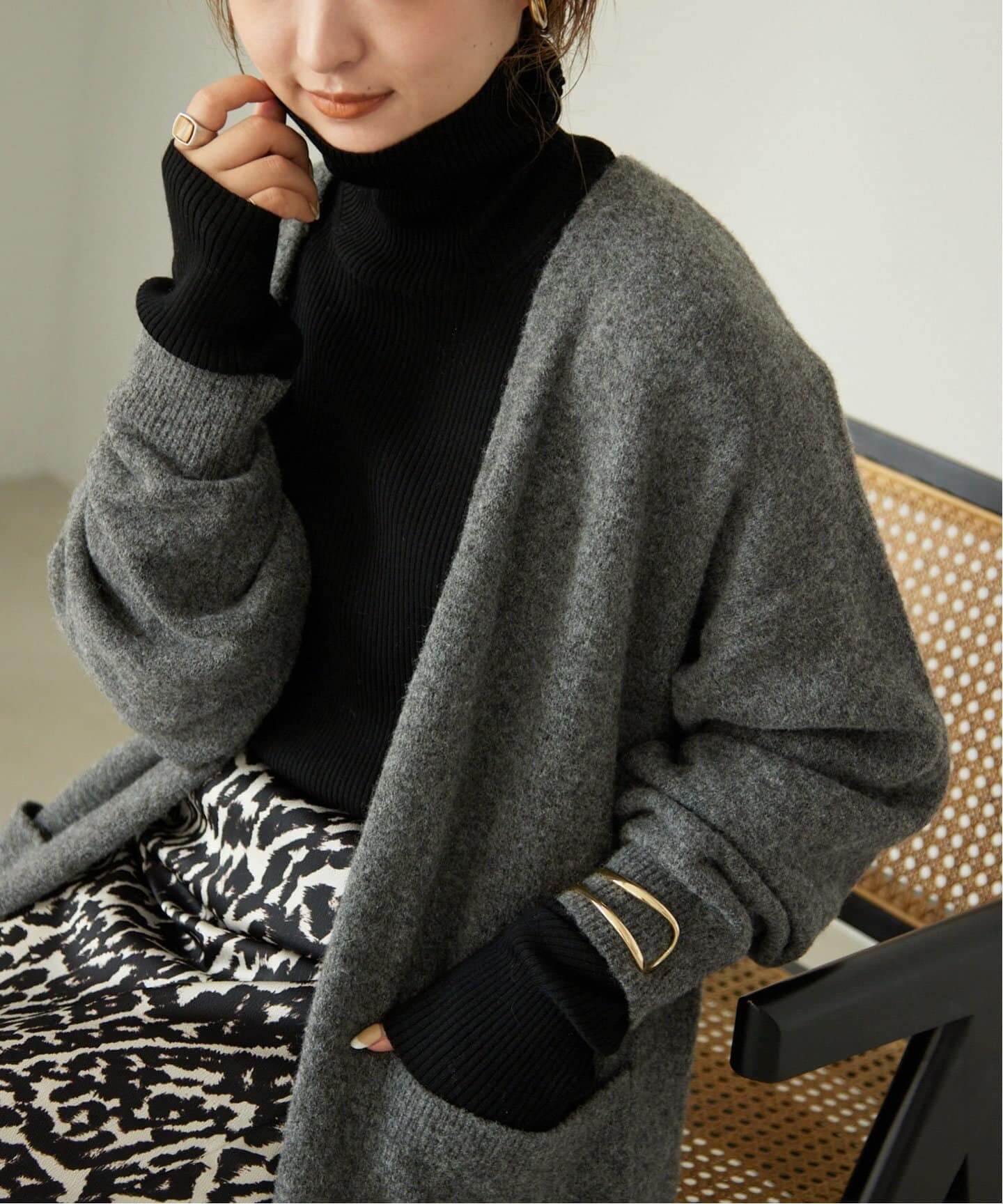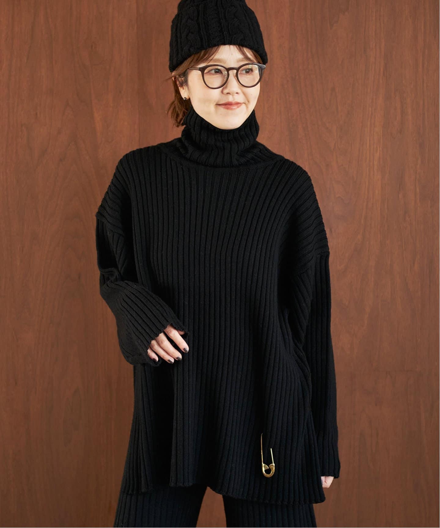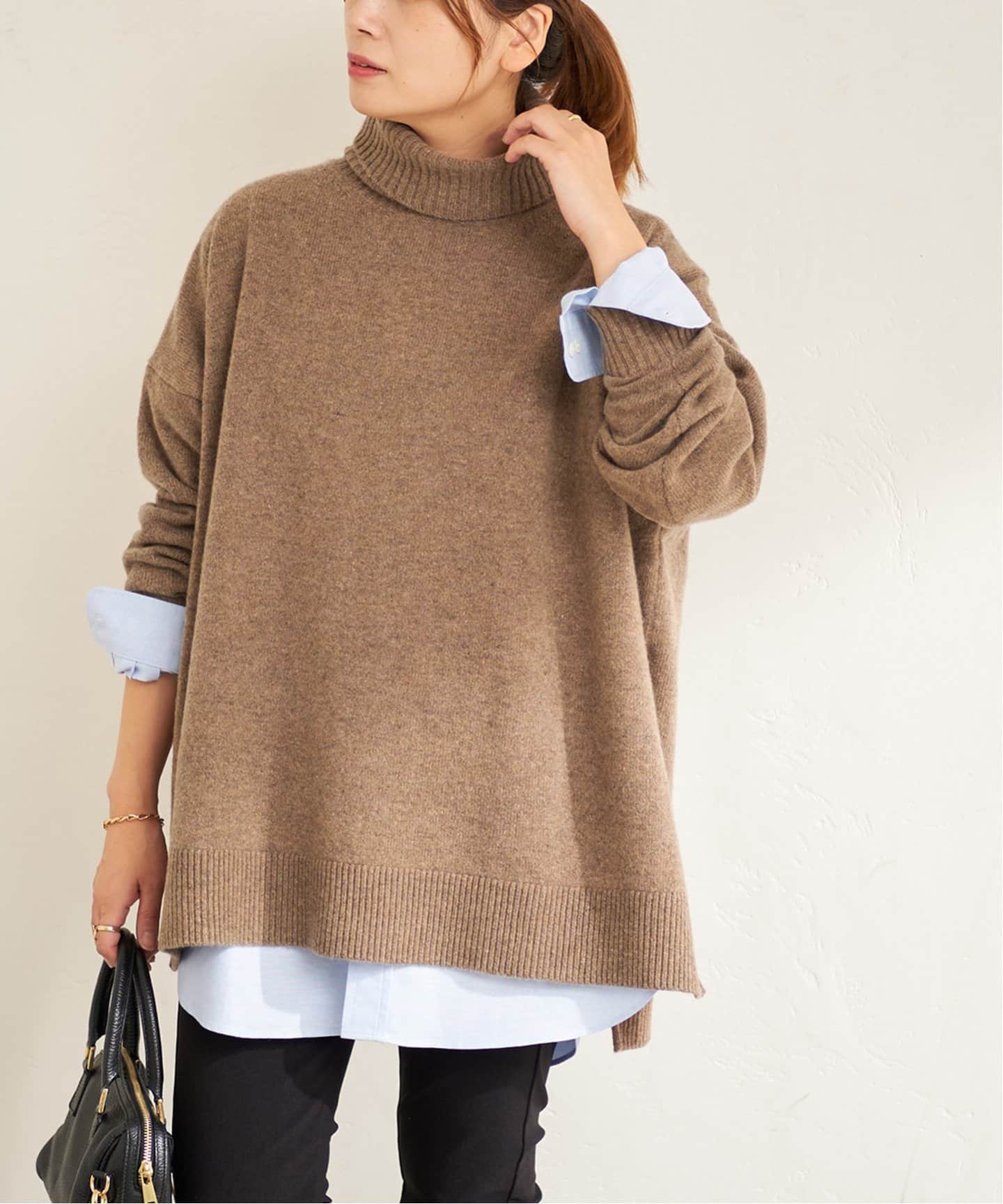 オーバーサイズでこなれさせて安定感抜群のモノトーンのタートルネックニットは、ゆったりしたサイジングやボクシーなシルエットを選んでこなれ感を漂わせるのが◎。首元にはアクセサリーをプラス。