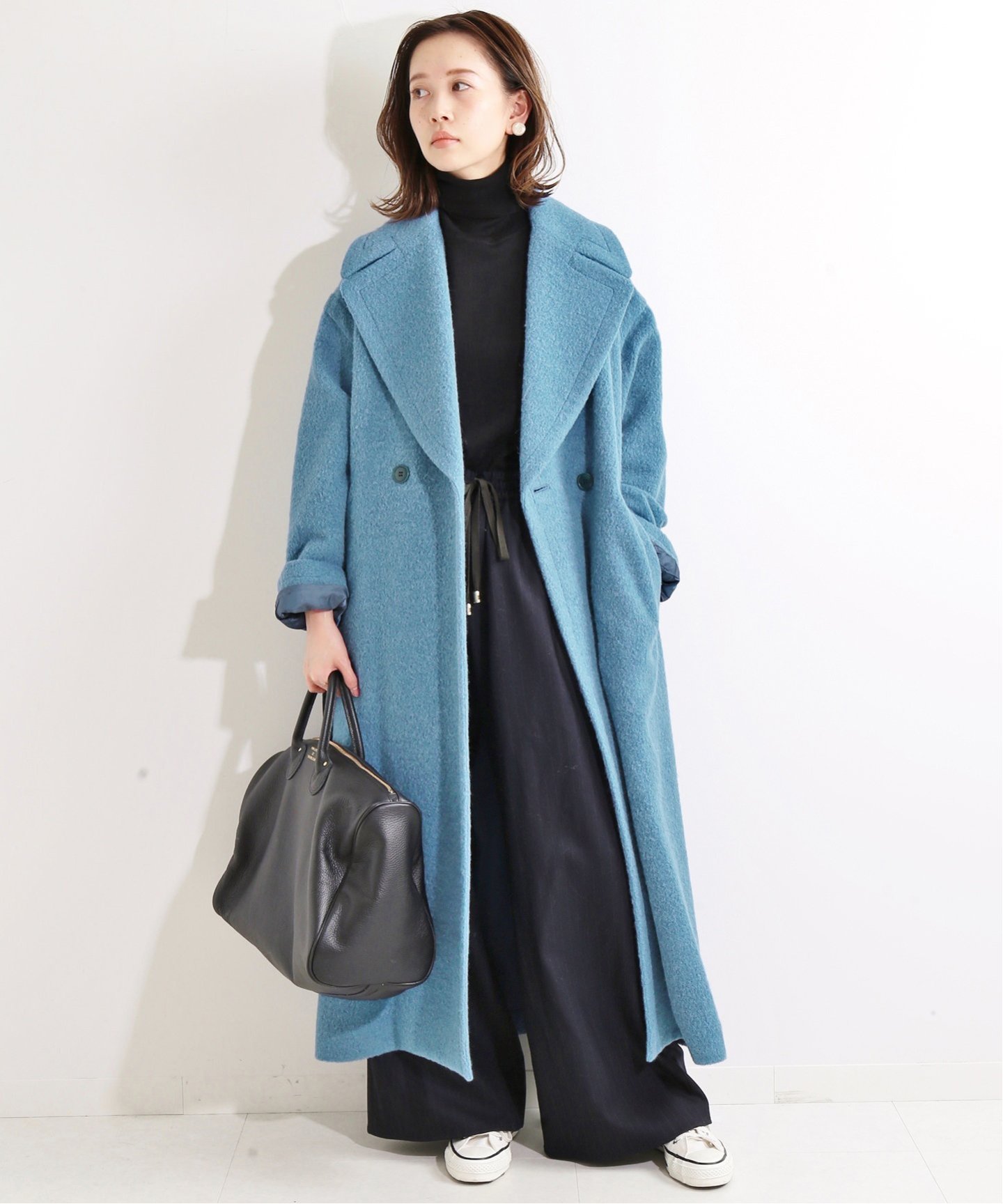 知的なブルー肌をきれいに見せてくれる、鮮やかなブルーのコートは