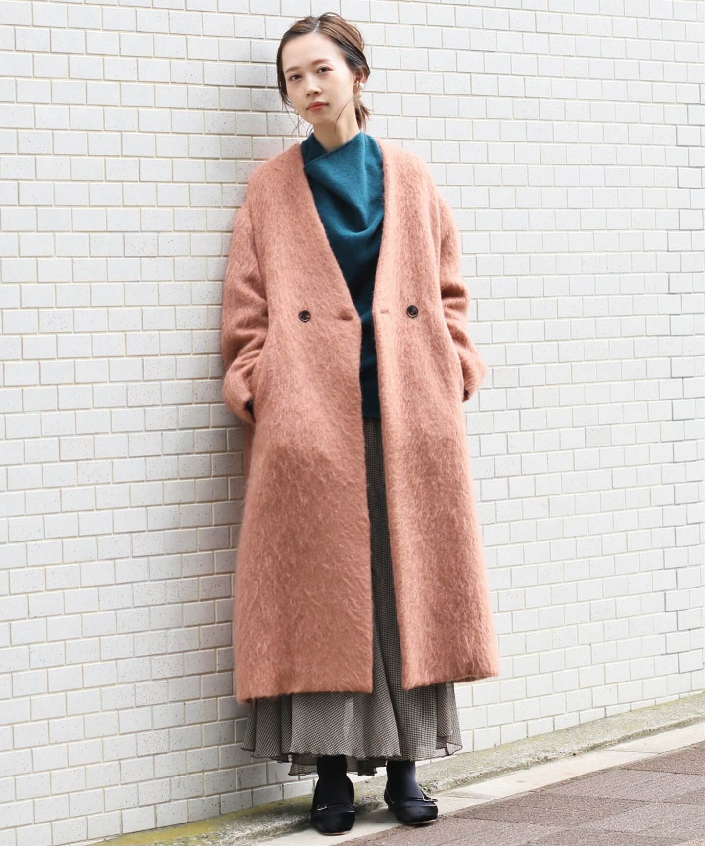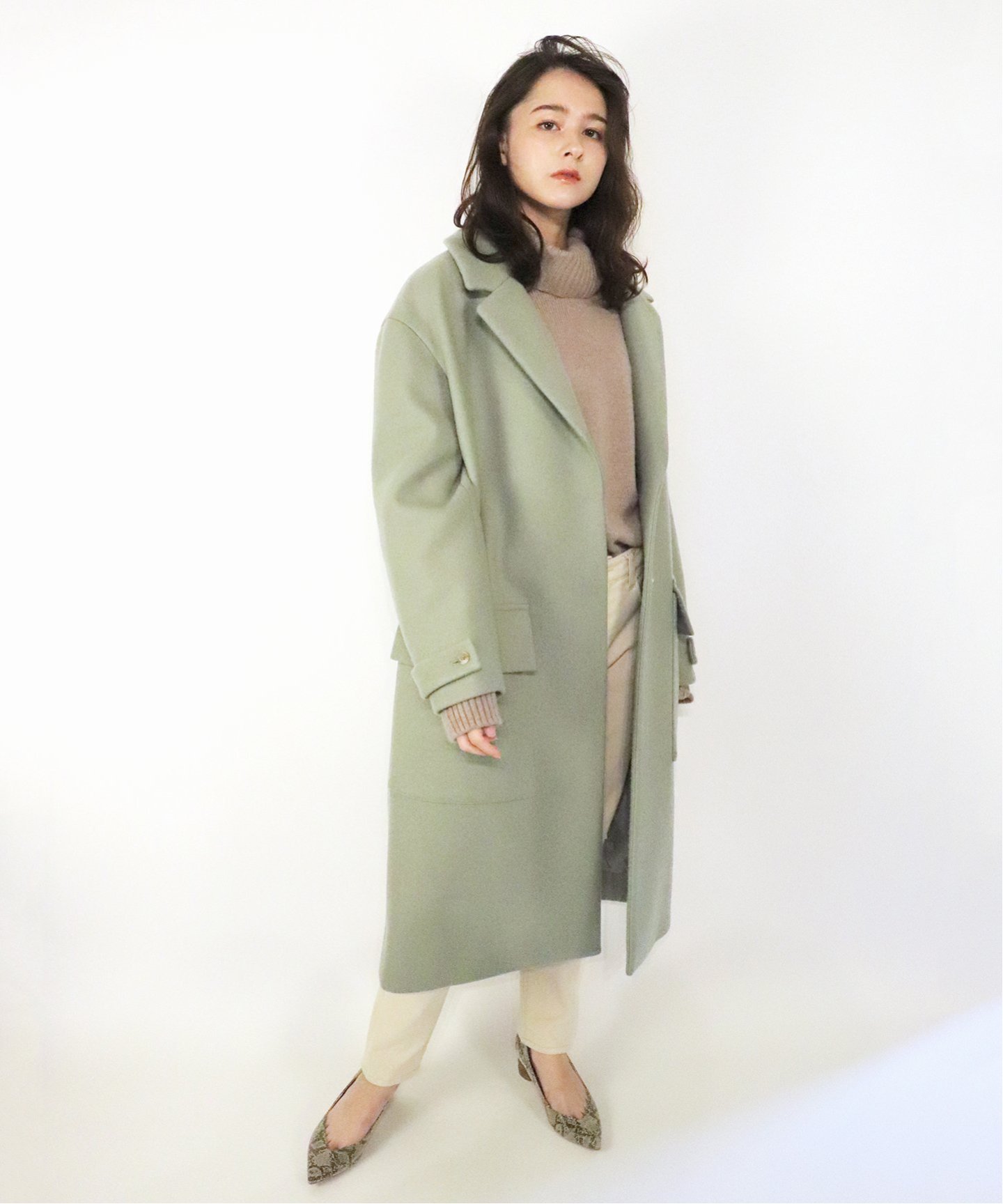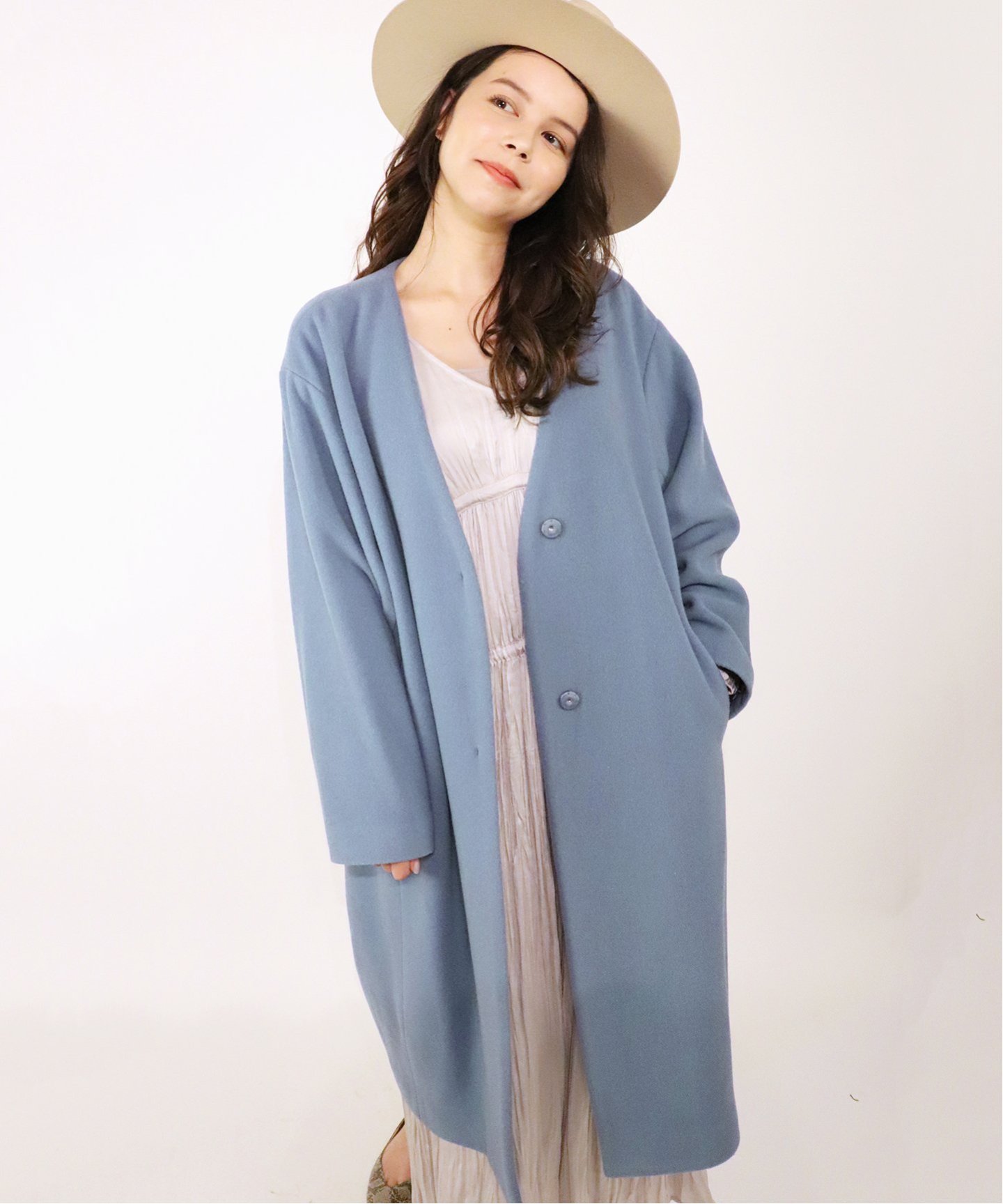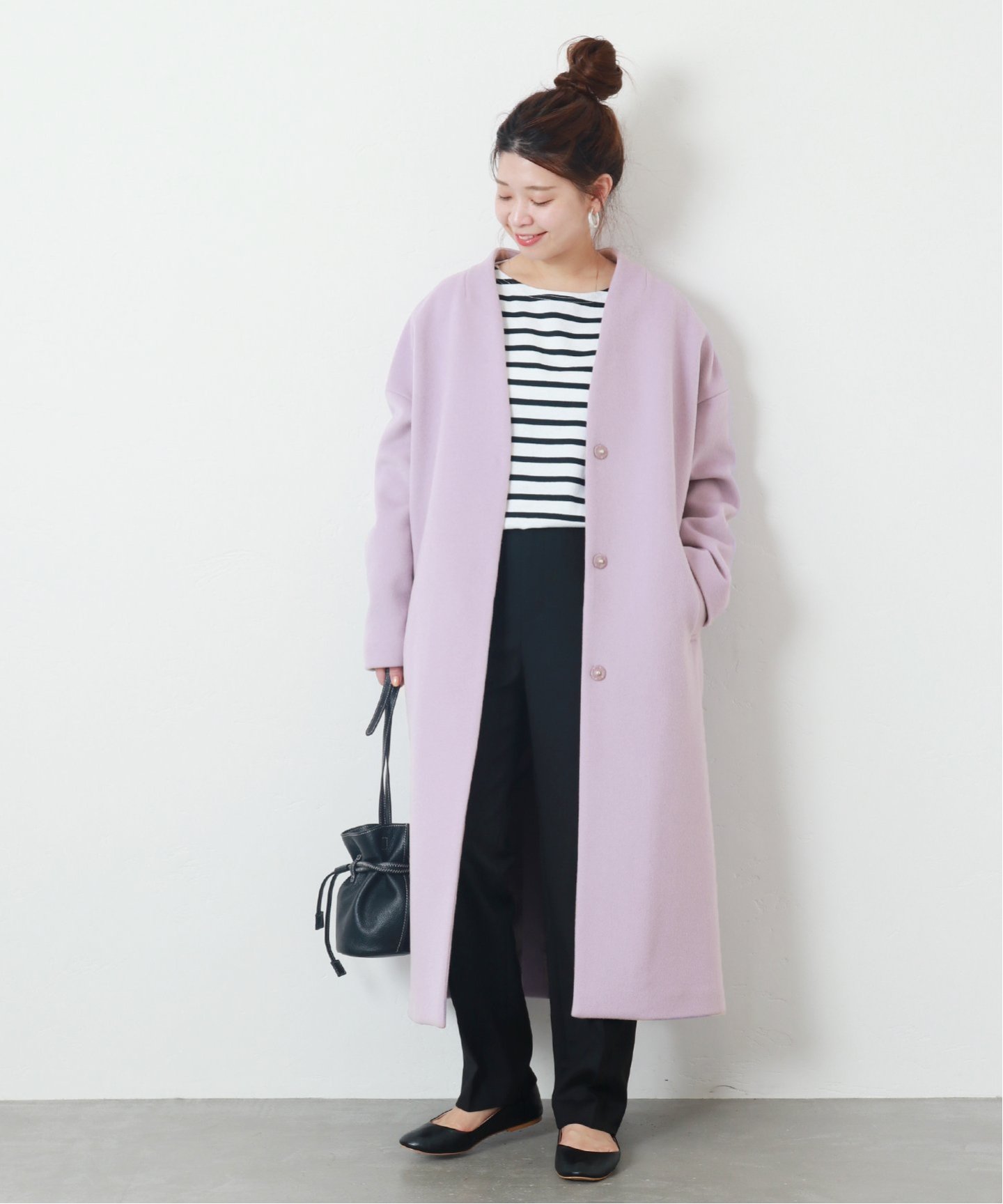 振り幅抜群女性らしさ漂うコクーンシルエットのノーカラーコートは