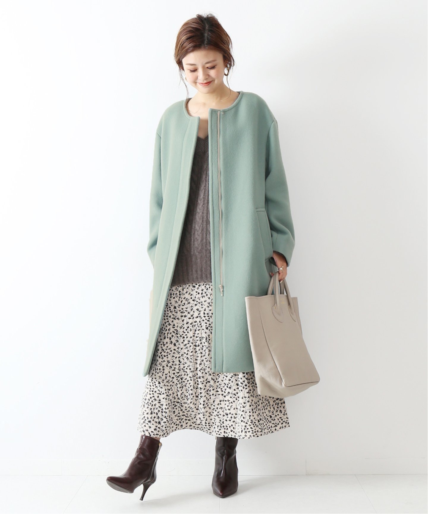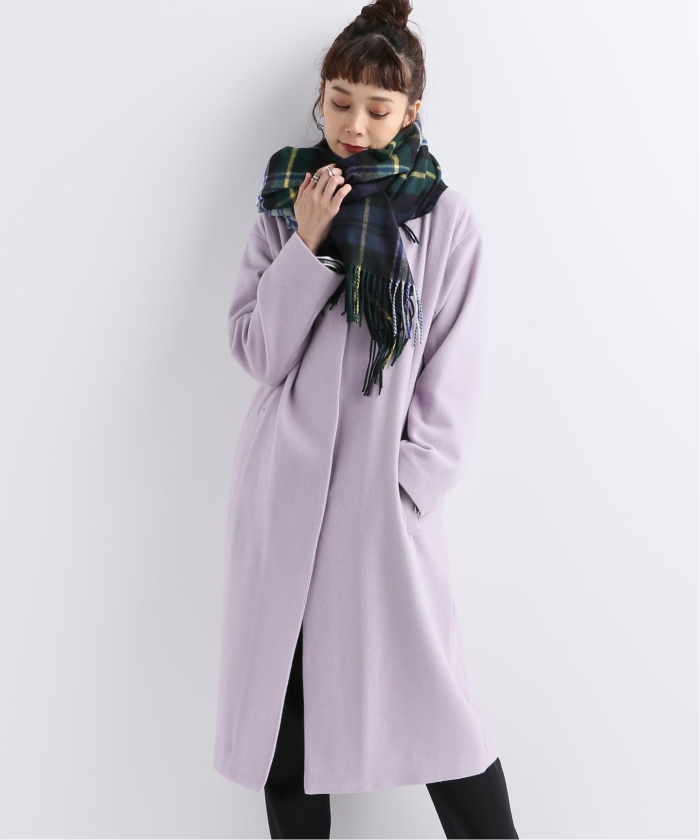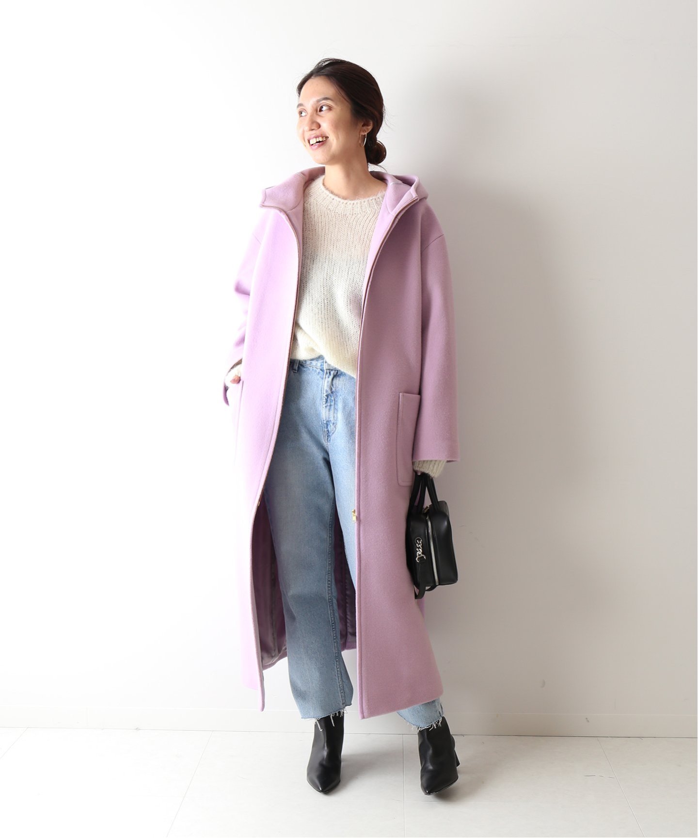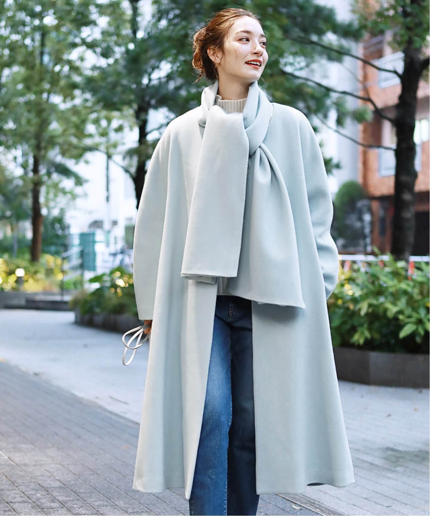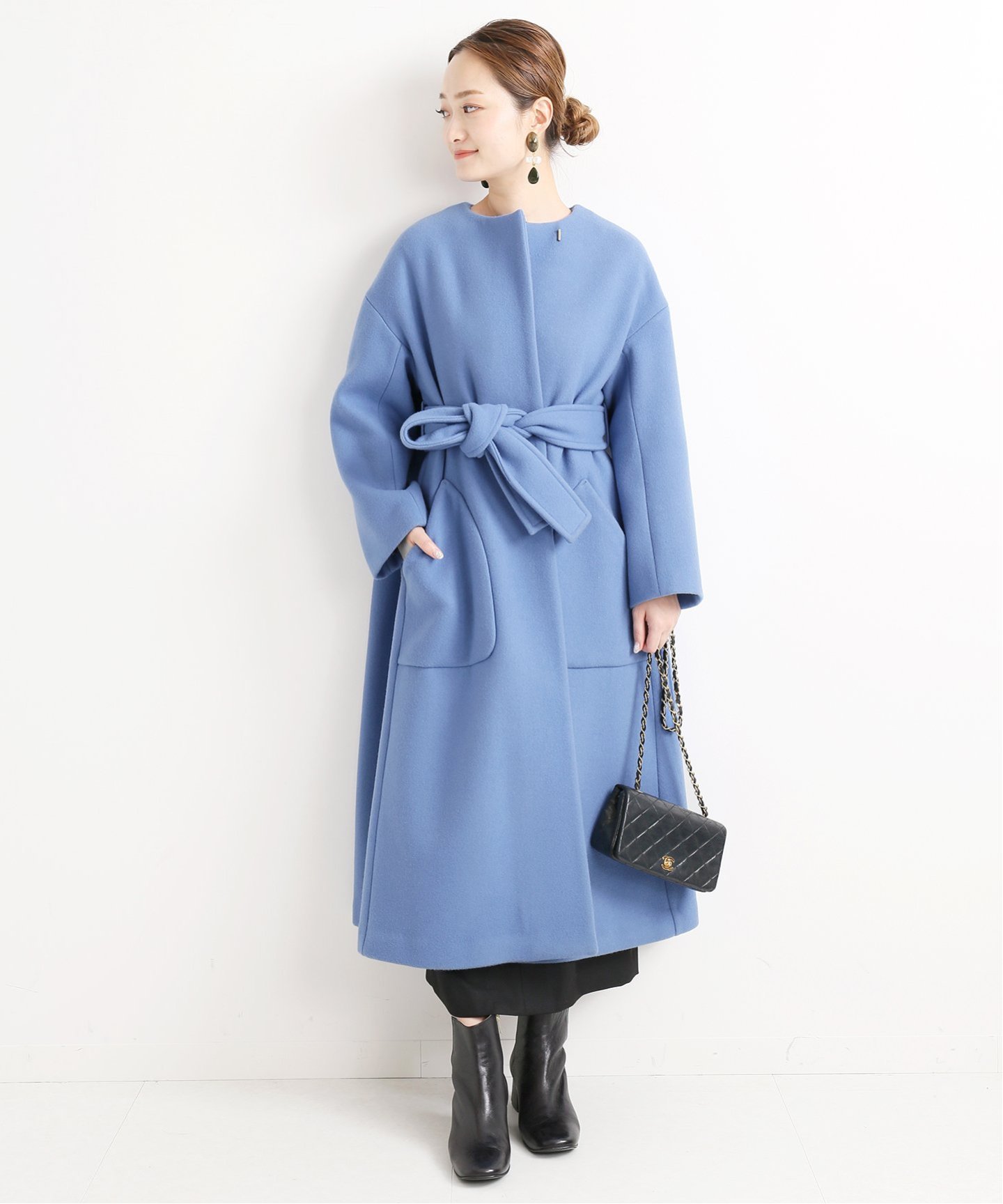 振り幅抜群女性らしさ漂うコクーンシルエットのノーカラーコートは