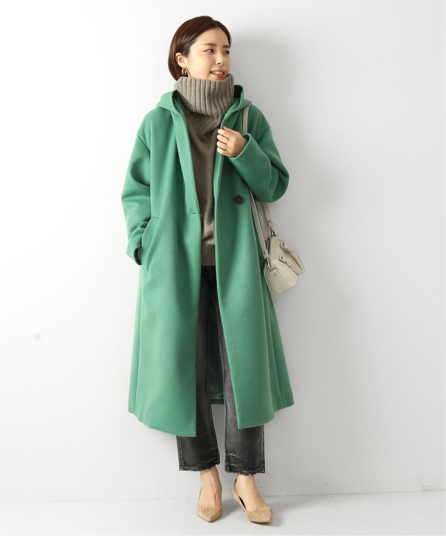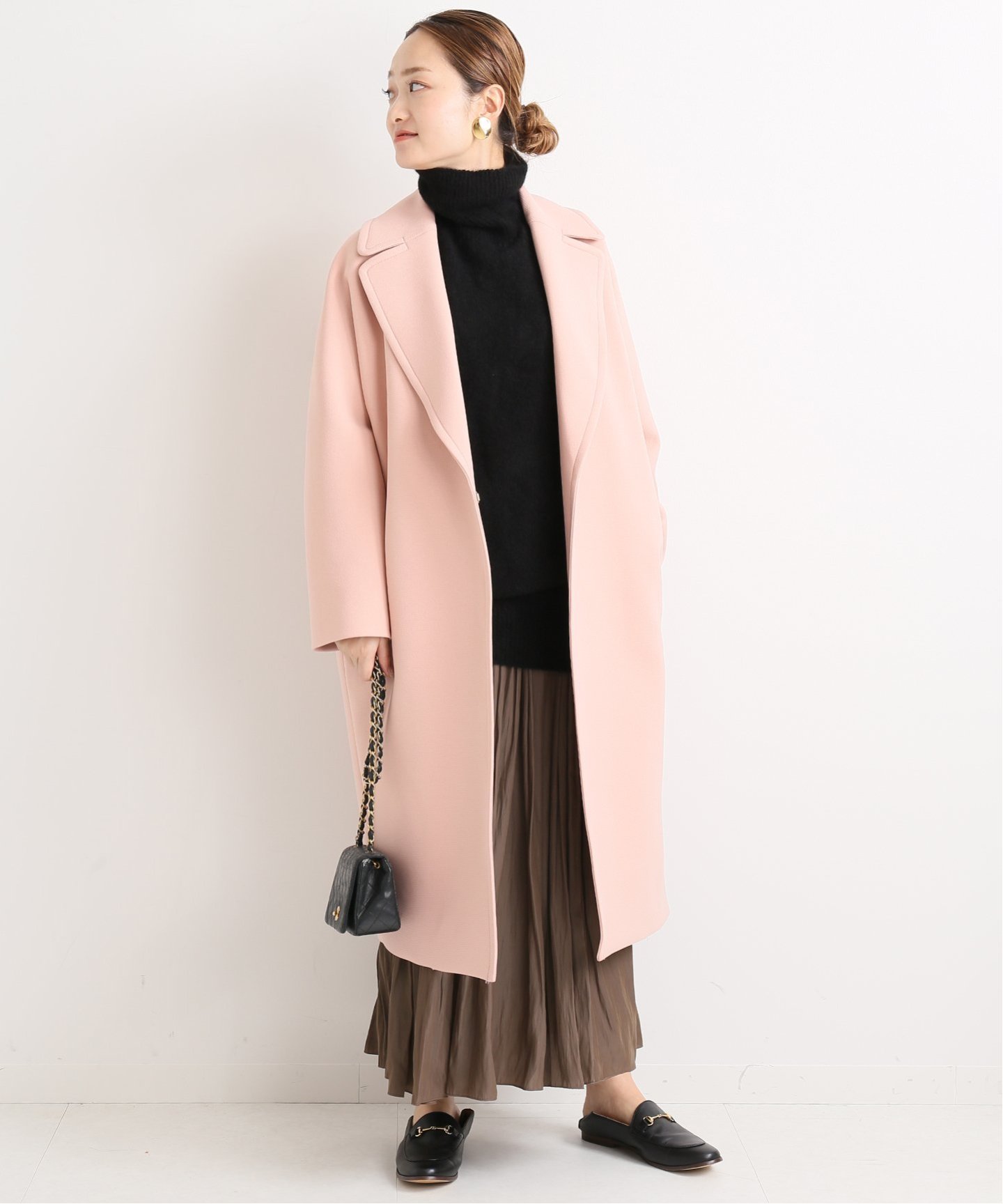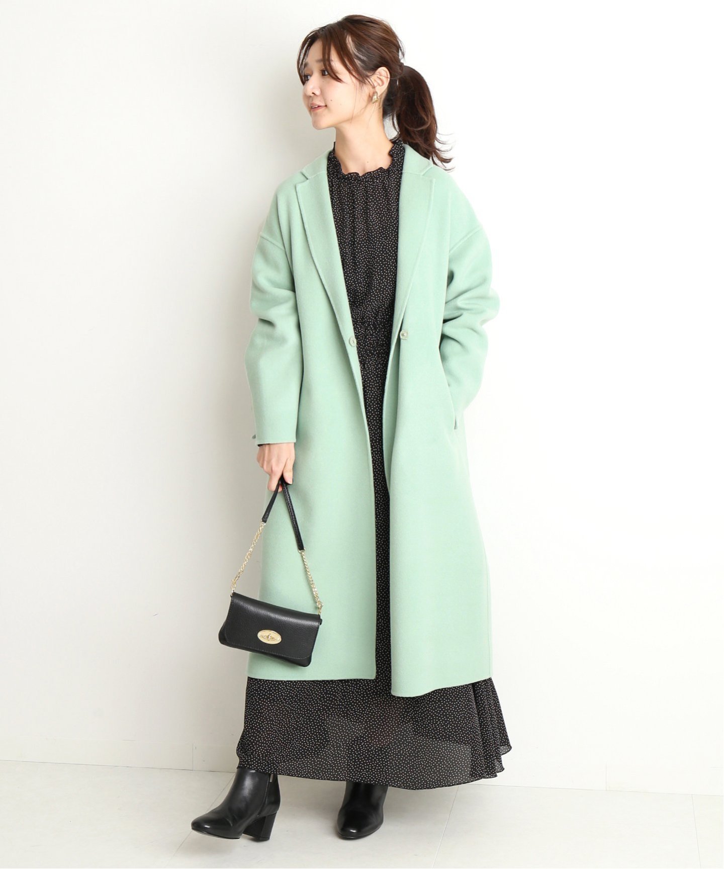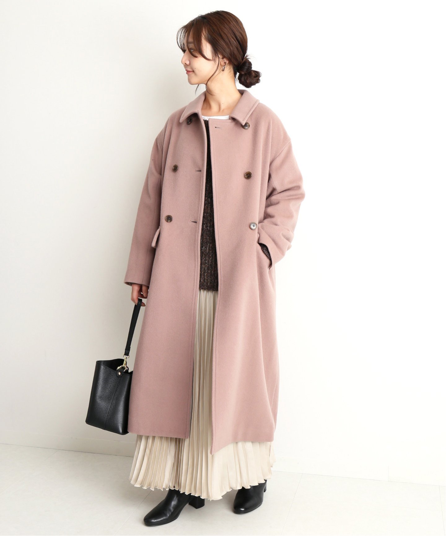 振り幅抜群女性らしさ漂うコクーンシルエットのノーカラーコートは