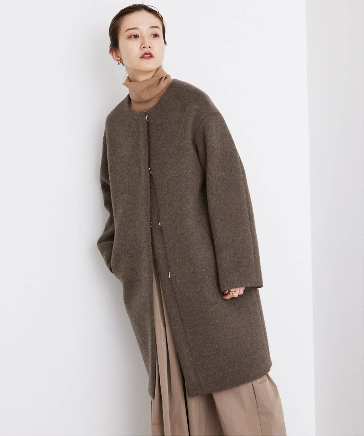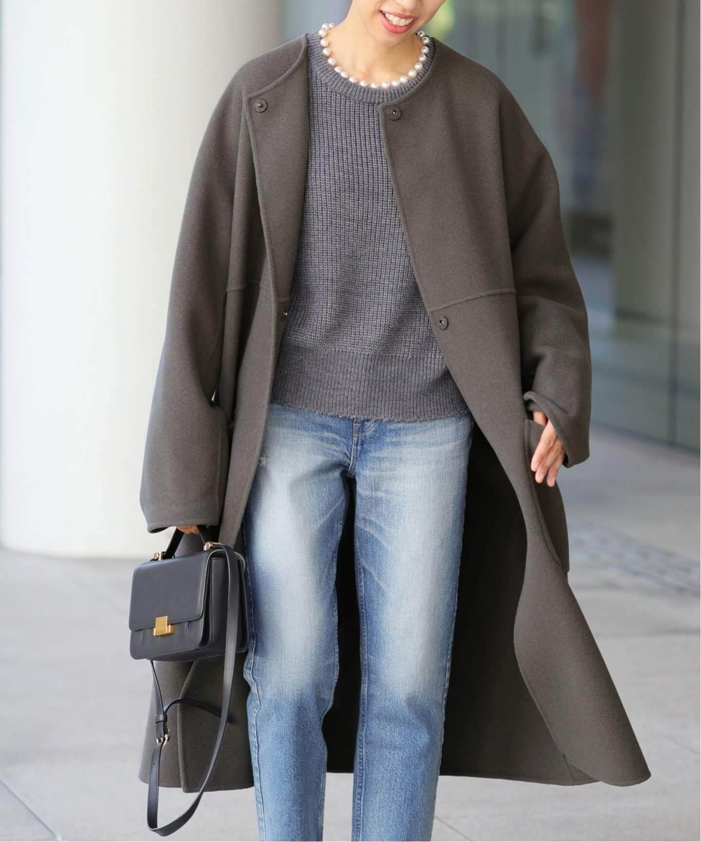 王道の綺麗めロングコートは、シーンを選ばず着れるのが嬉しいポイント。洗練された雰囲気と、上品さが、女っぷりを上げてくれる。