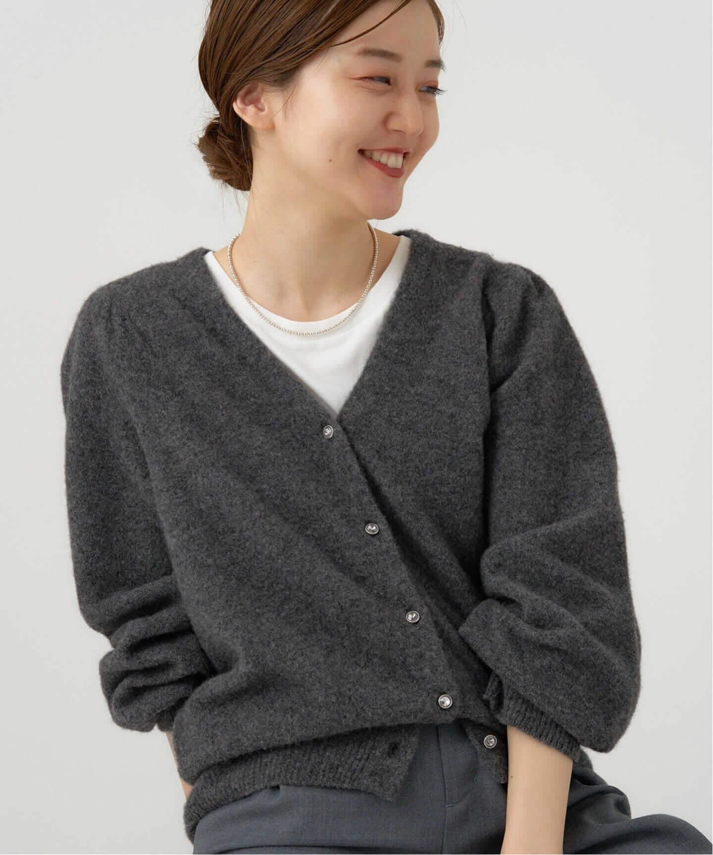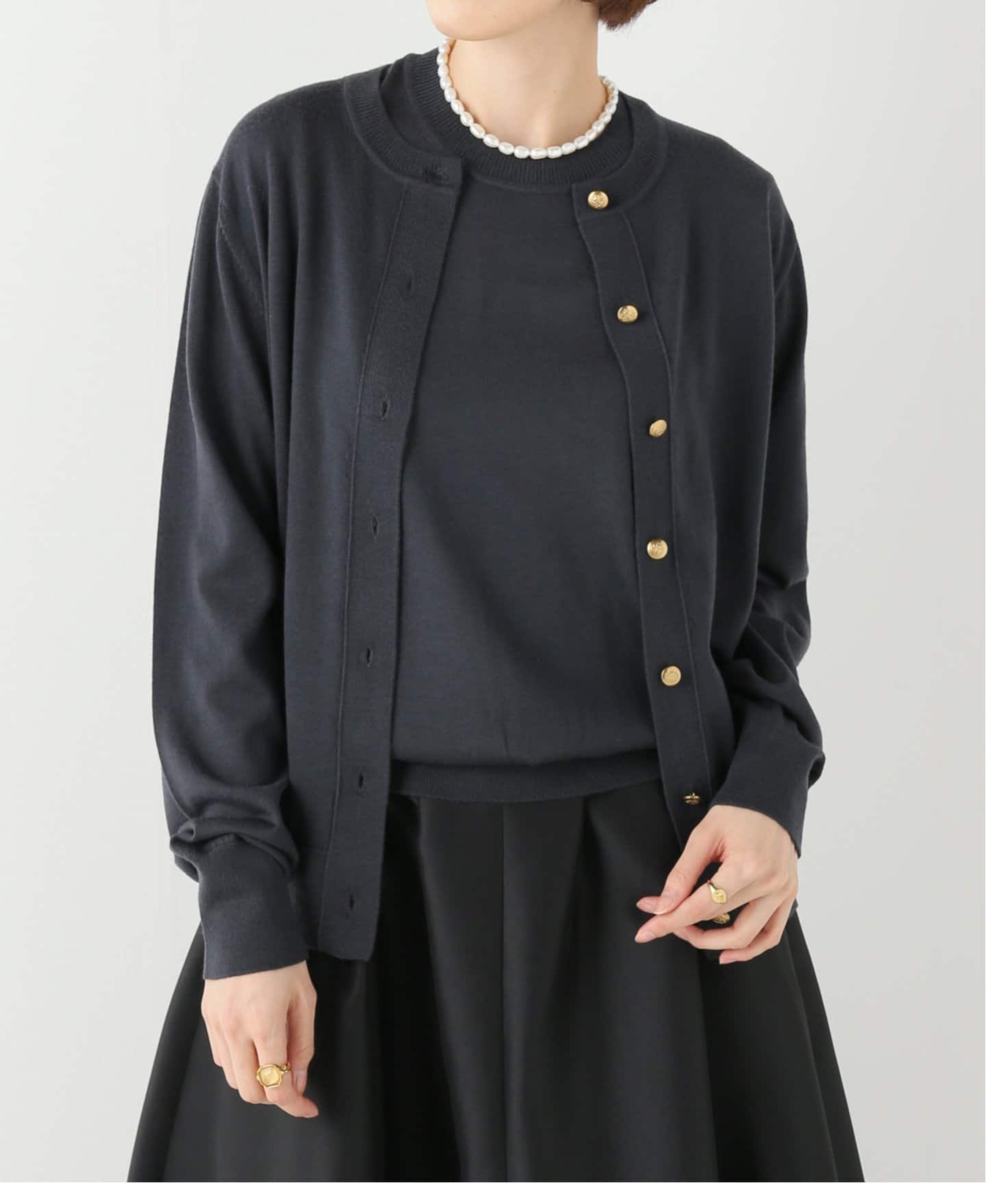 ベーシックアイテムのカーディガンも、これからのシーズンは一癖加えたい。華やかなボタンがポイントのカーディガンを羽織れば、脱マンネリ!