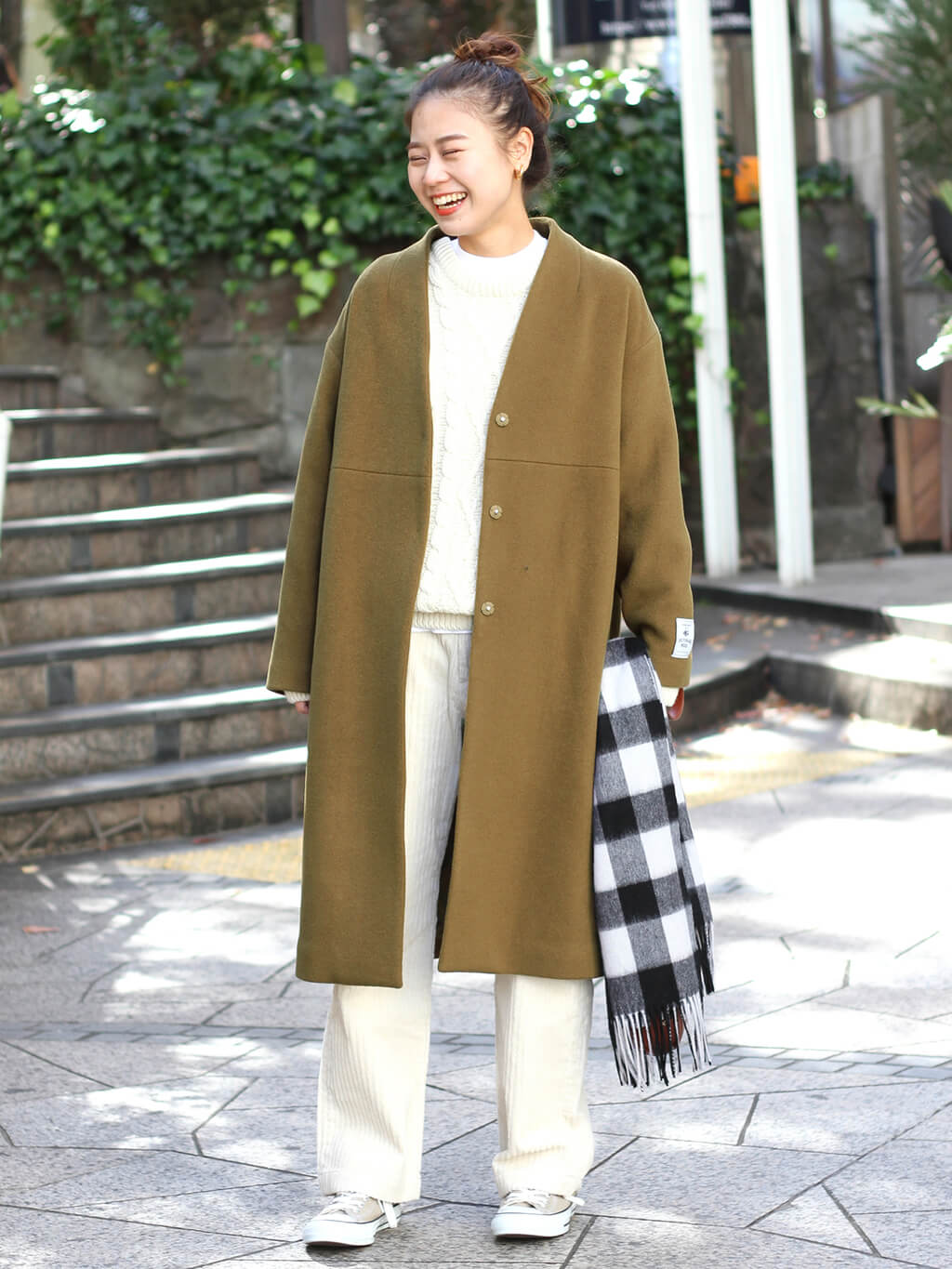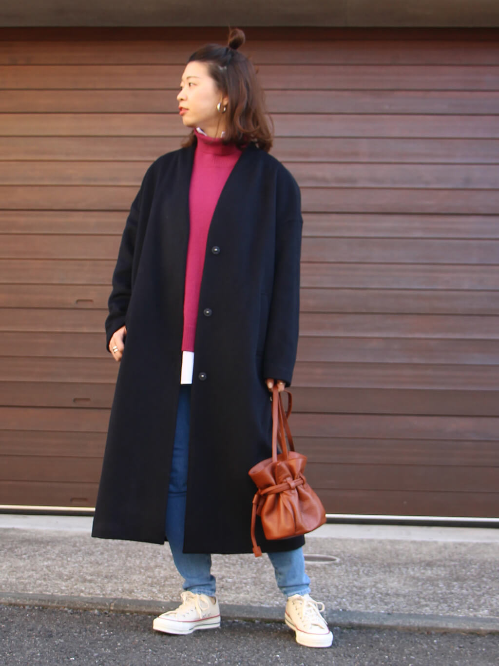 冬空に映えるキレイ色コーデ人気プレスのmarieは、重たくなりがちな冬に効く、