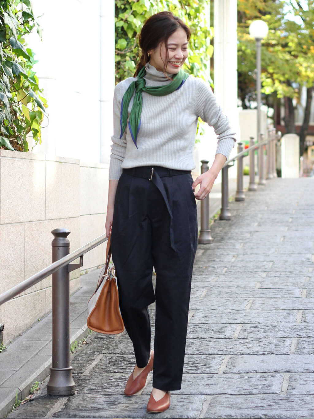 洗練のベーシックリラックスムードの装いは大人な配色に気を配ったり、