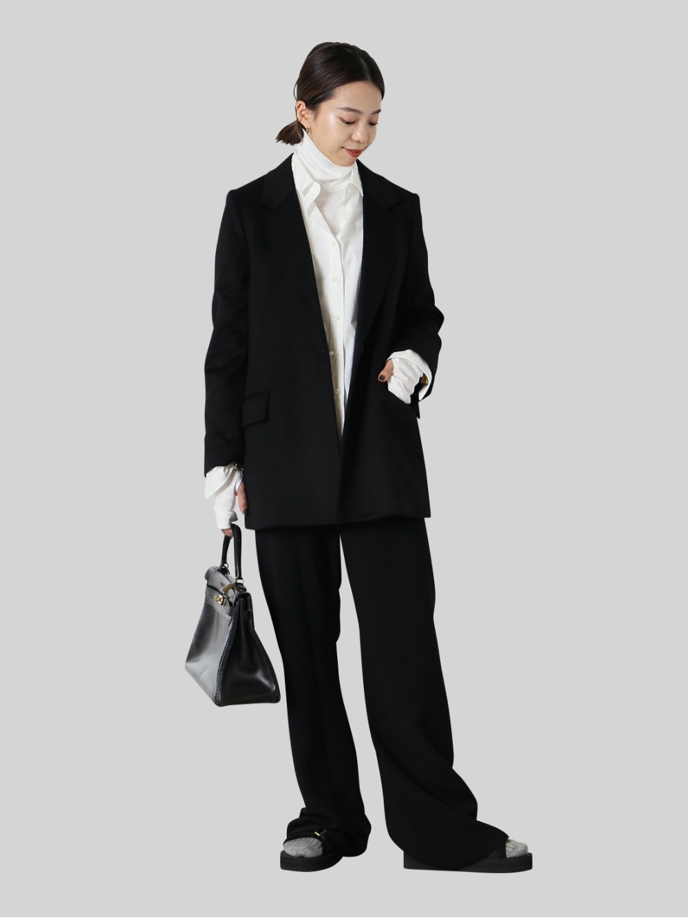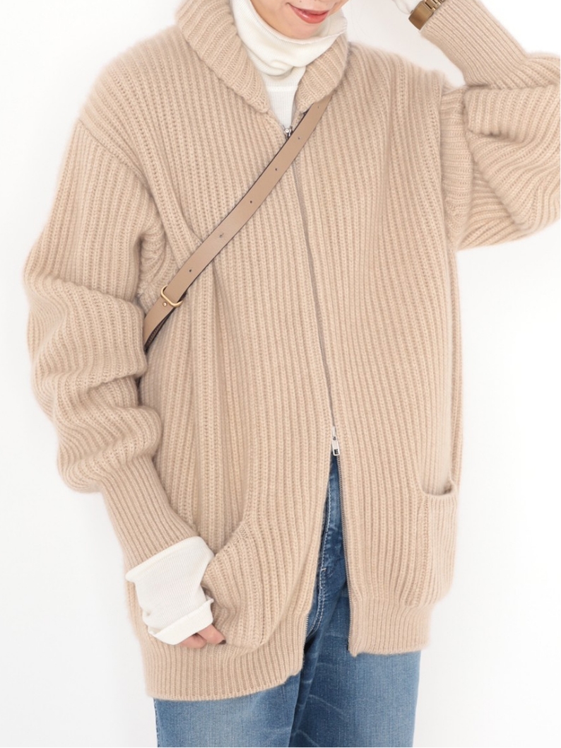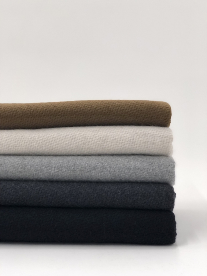 素材は生後6か月までの赤ちゃんの毛を使用したバージンウール。その生地を、シャルムドビーバー加工(※)という日本でも1カ所でしかできない加工を生地の両面に入れています。その為、毛足がより長くなり、艶が出て風合いも良くなり暖かさも増してきます。その加工を両面にしているので、とっても贅沢な仕上がりになっています。また、縫製も日本で一番上手いと言われている腕の良い工場で仕上げています。