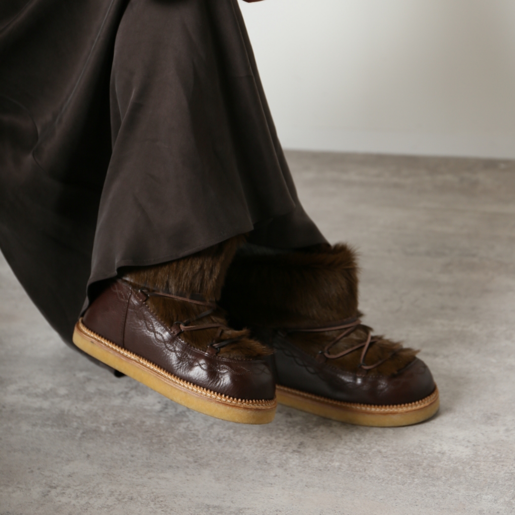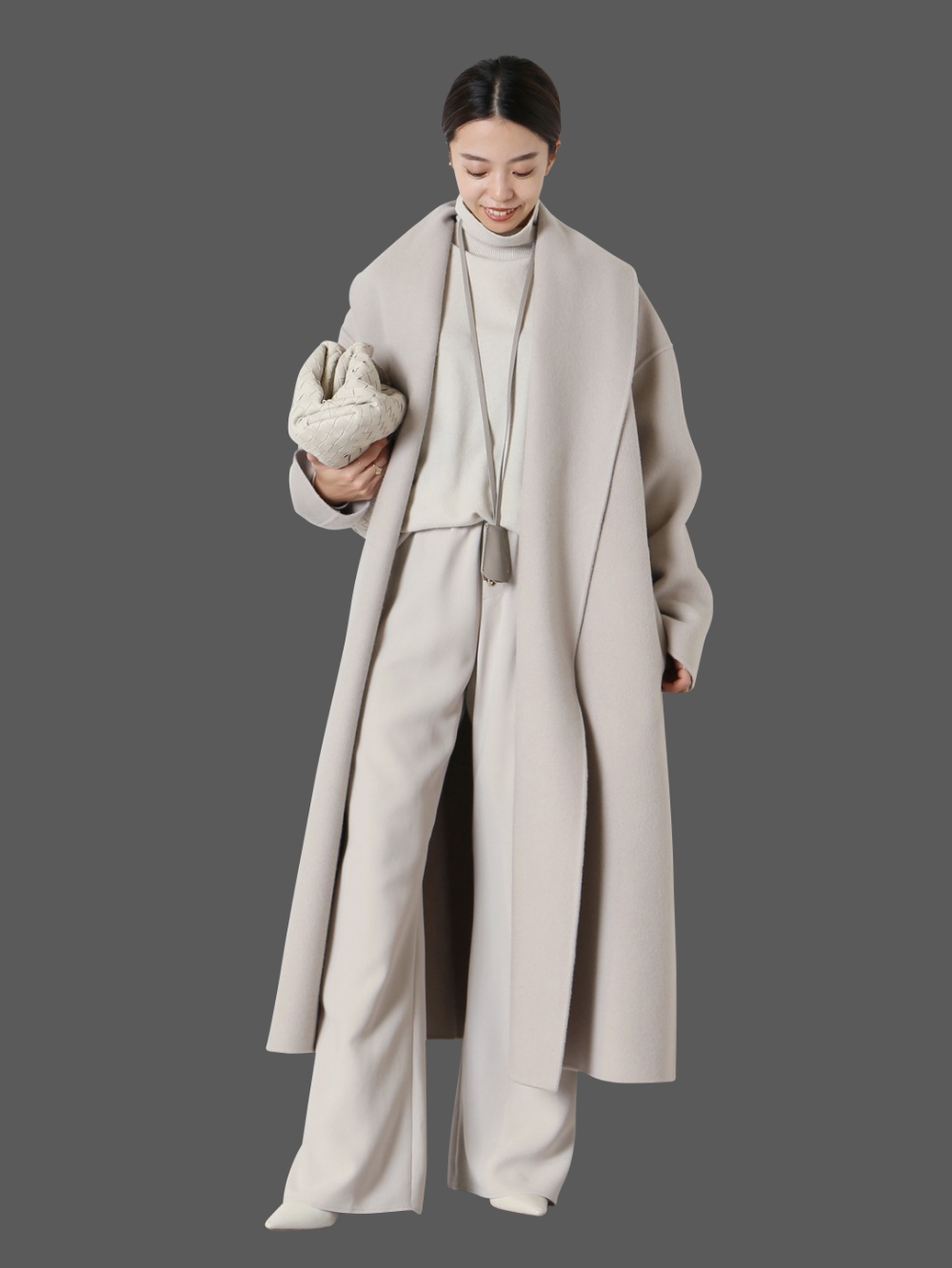 The material is virgin wool made from the hair of babies up to 6 months old. The fabric is then subjected to the charmed beaver process (*), a process that can only be done at one location in Japan, on both sides of the fabric. This makes the fur longer, shinier, more textured, and warmer. The processing is done on both sides of the fabric, making it a very luxurious finish. The sewing is also finished at a skilled factory that is said to be the best in Japan.