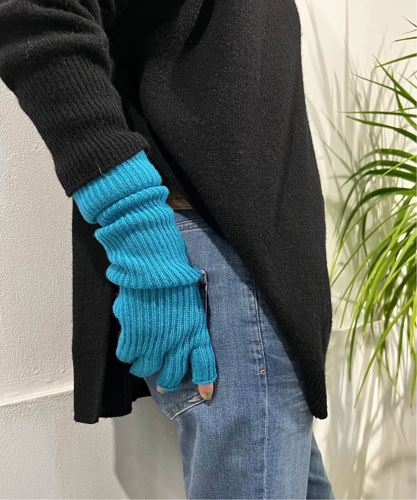 カラーグローブがおすすめJANE SMITHのニットグローブは、薬指と小指以外が開いたデザインだからスマホを触りやすいデザイン。コーデのアクセントに効く鮮やかなサックスブルーも◎。