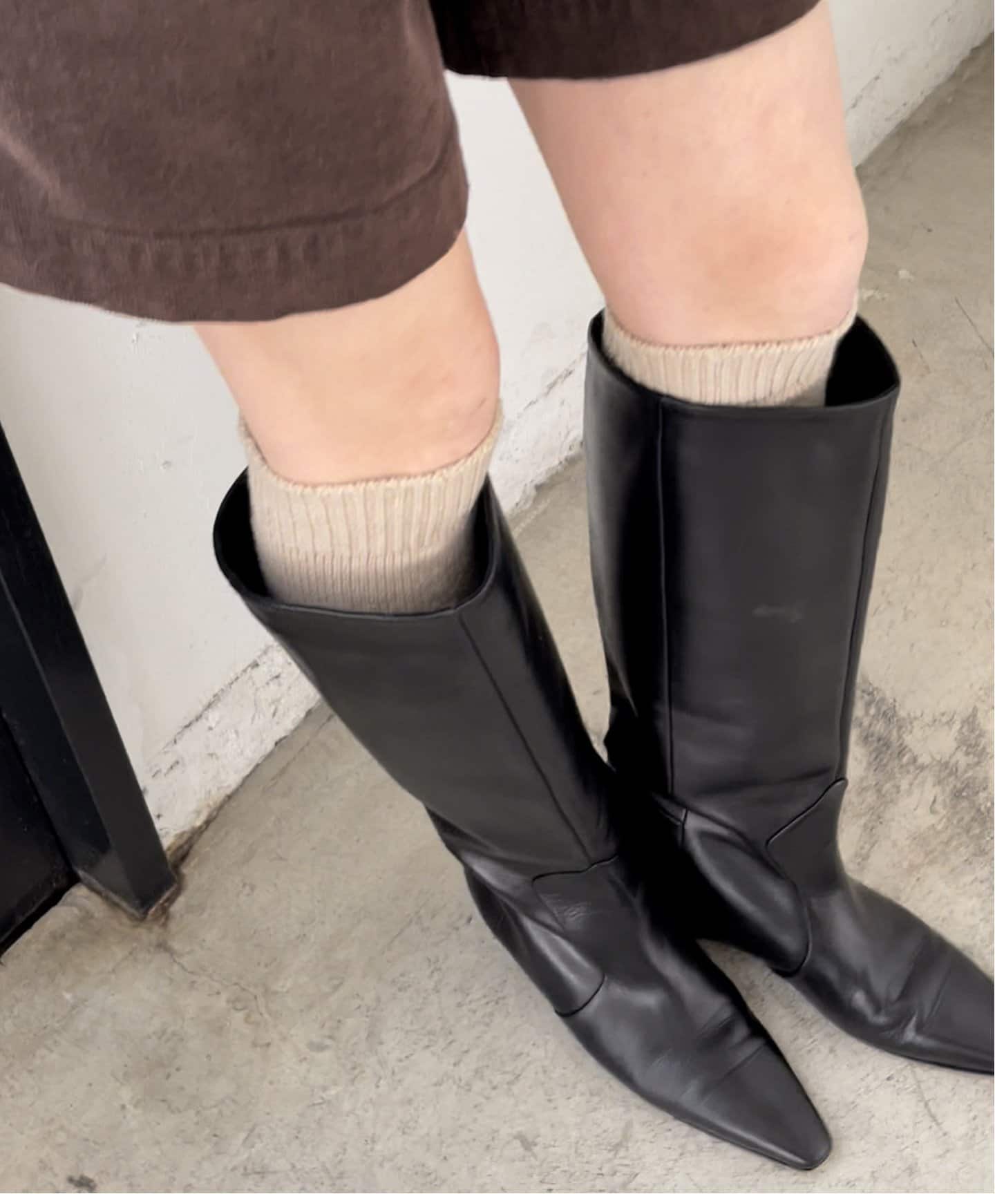 ロングブーツからチラ見せ今季トレンドのロングブーツと好相性なのがレッグウォーマー。SLOBE IENAのレッグウォーマーは、差し色になるモードなグリーンをレコメンド。