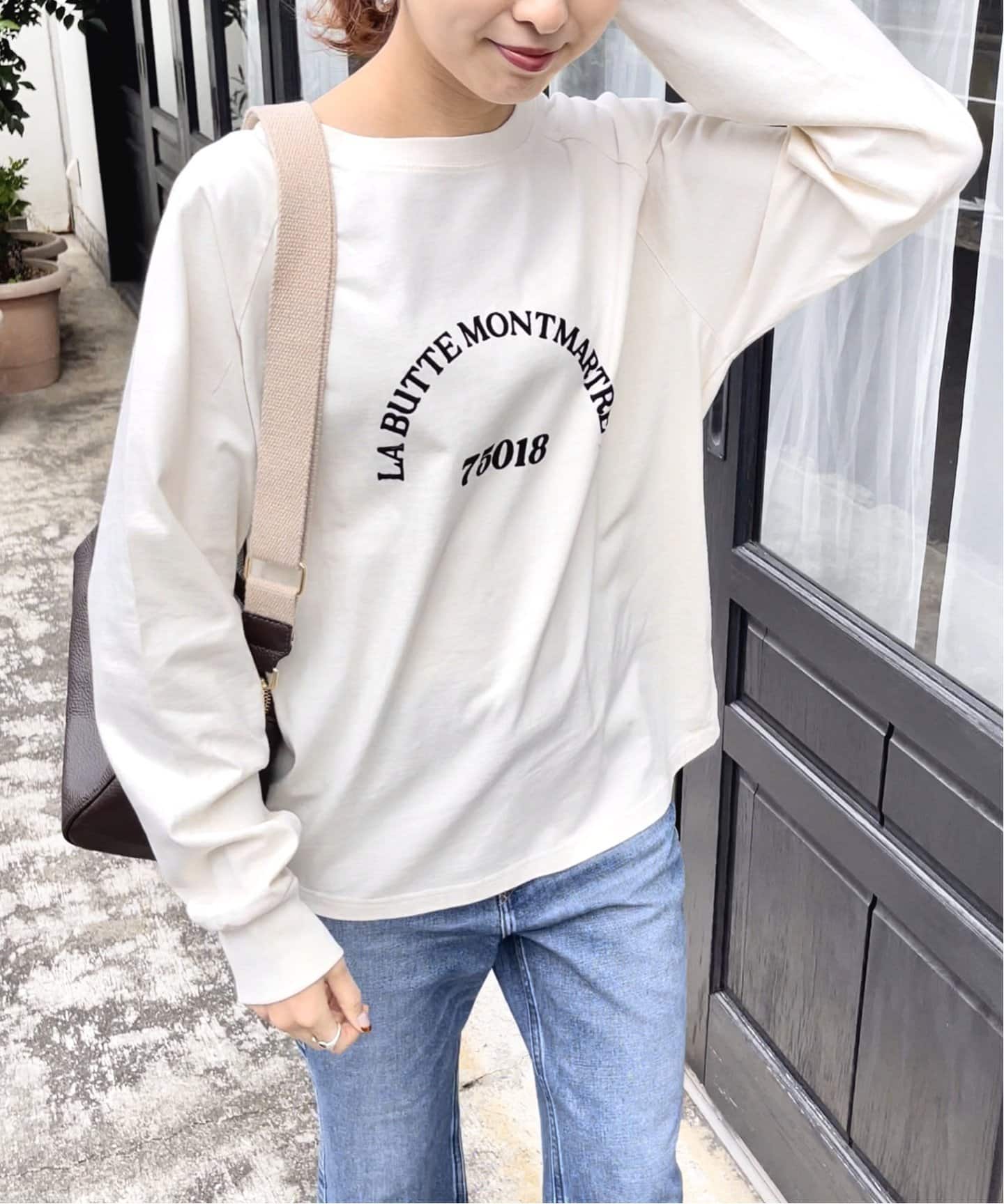 カットソーが今年っぽいロングシーズン活躍するロゴカットソーは、レイヤードもしやすく旬度が上がるコンパクトな着丈をチョイス。ヴィンテージ感のあるフロッキープリントなど、加工にもこだわりが。