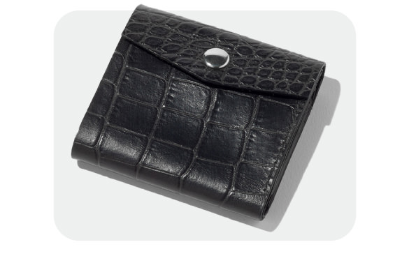 ミニマルなのにしっかりとした収納力を持つ2つ折り財布は1つ持っておきたい。綺麗なエンボスの天然皮革で使い込むのも楽しみなアイテム。
