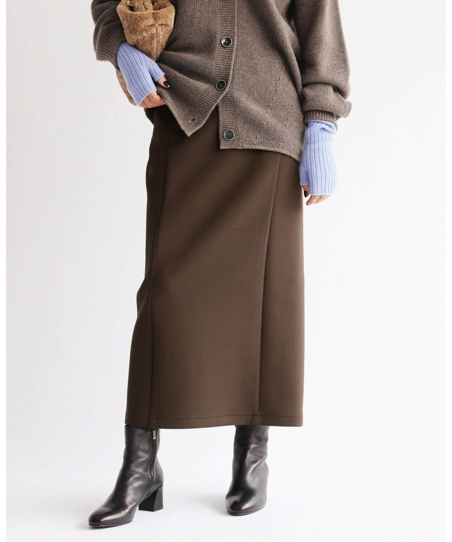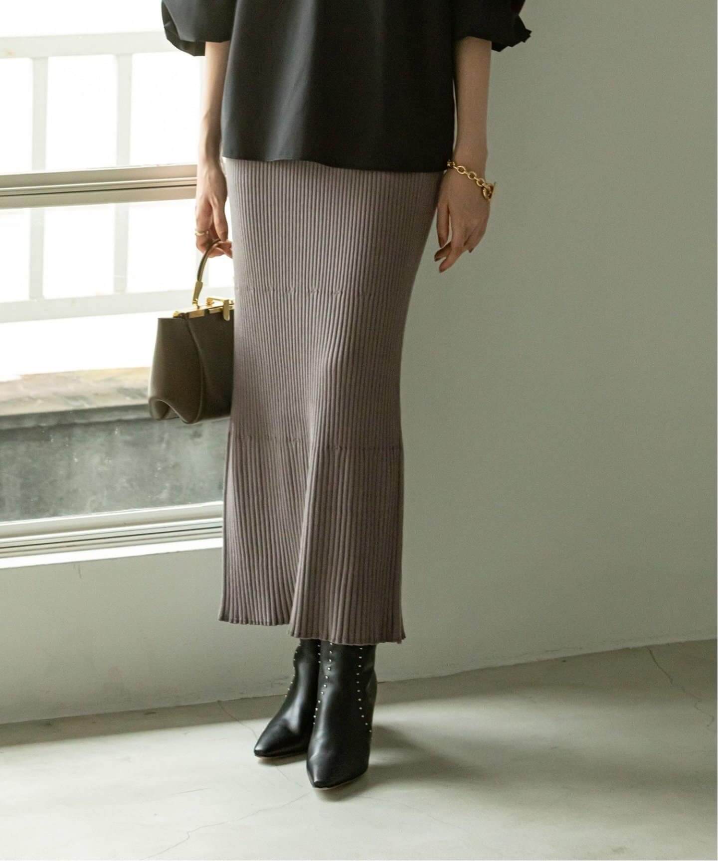 大人バランスに着地オンにもオフにも着回せるタイトなロングスカートが大人気。女性らしい雰囲気が高まるNOBLEのリブニットスカートは、ニュアンシーなグレーがお洒落。