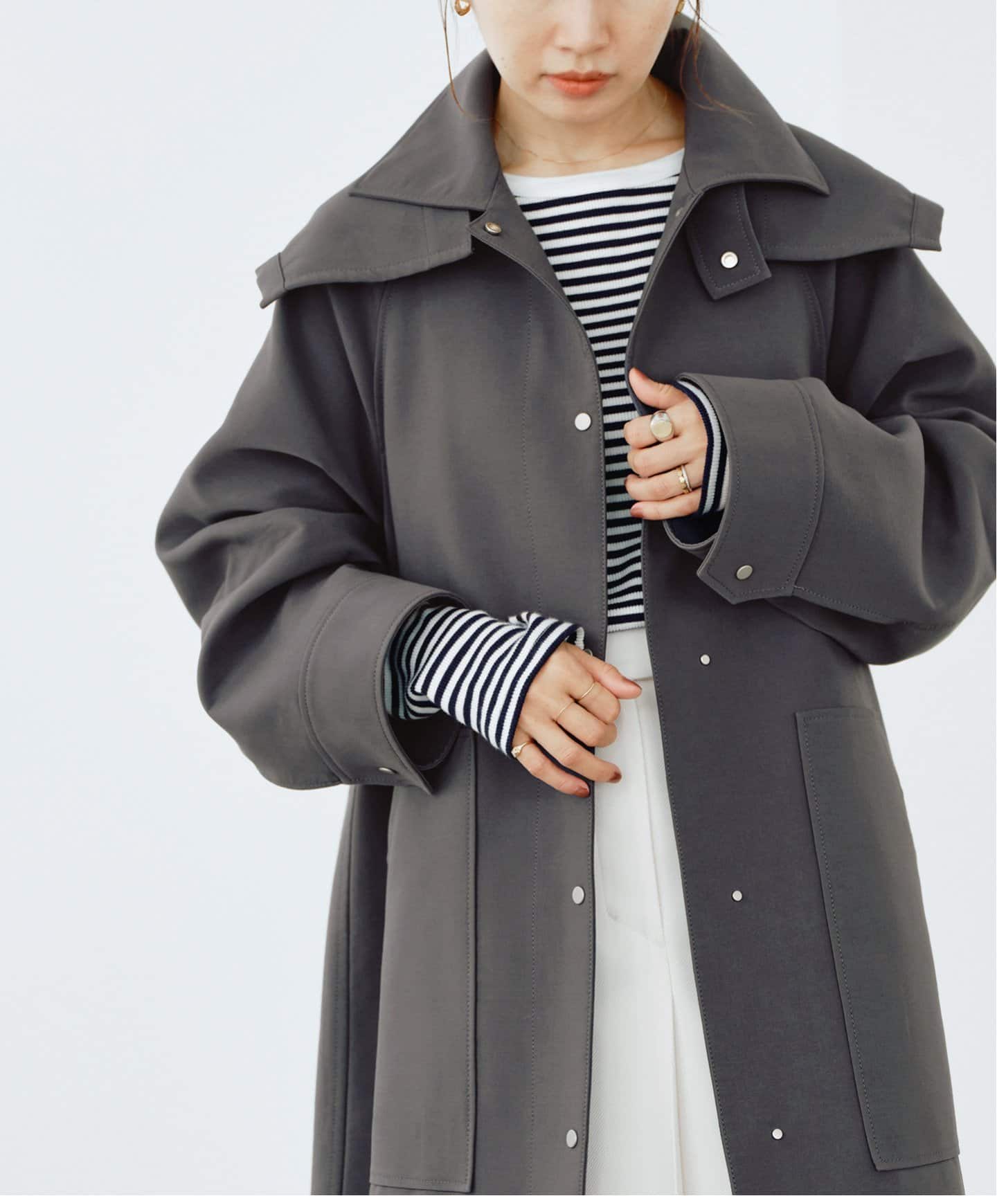 ショート丈アウターが続々リバーシブルで活躍するARMY TWILL別注ブルゾンや女っぽコーデに好相性なIENAのフードコート、モダンなシルエットのコクーンダウン。いずれもショート丈が人気。