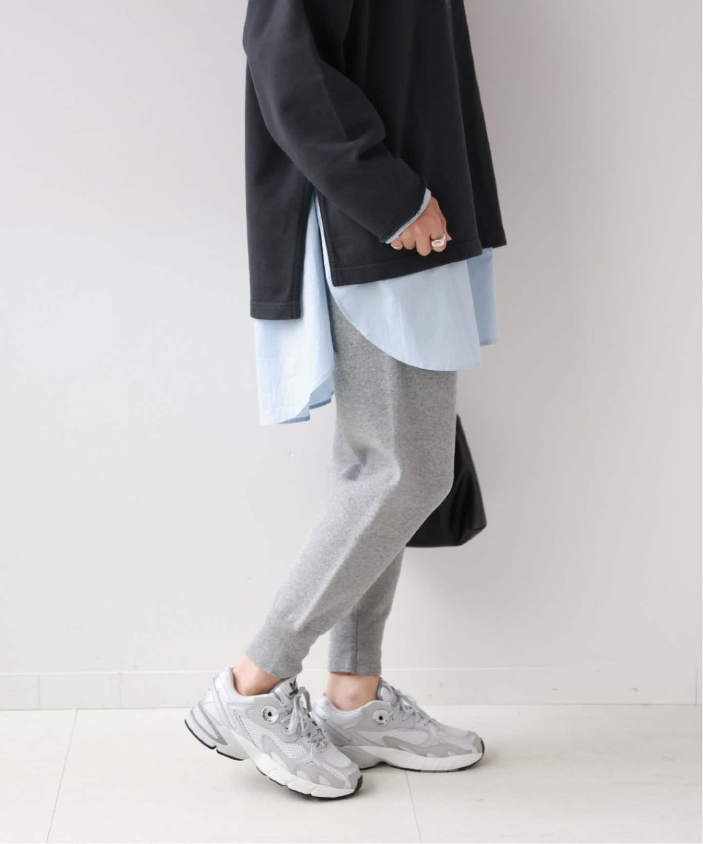 ワイドシルエットパンツがお洒落足のラインを拾わずスラッと美脚を叶えてくれて、こなれたムードも漂うワイドパンツが頼りに。キレイめにもはけるニットジョガーパンツも1本あると便利。