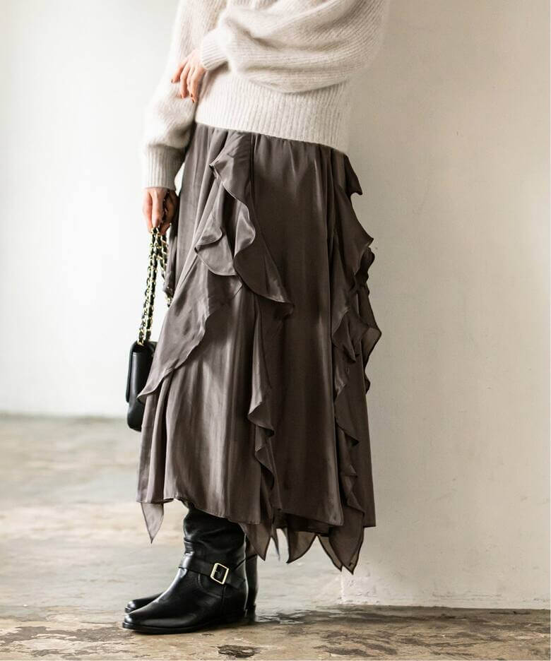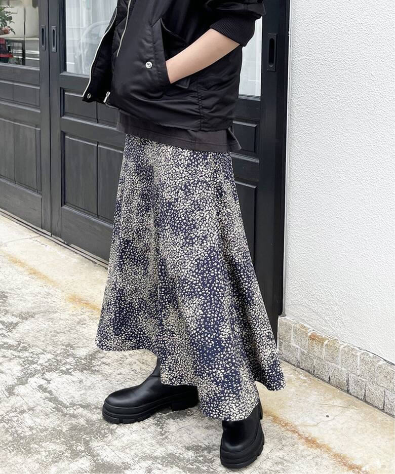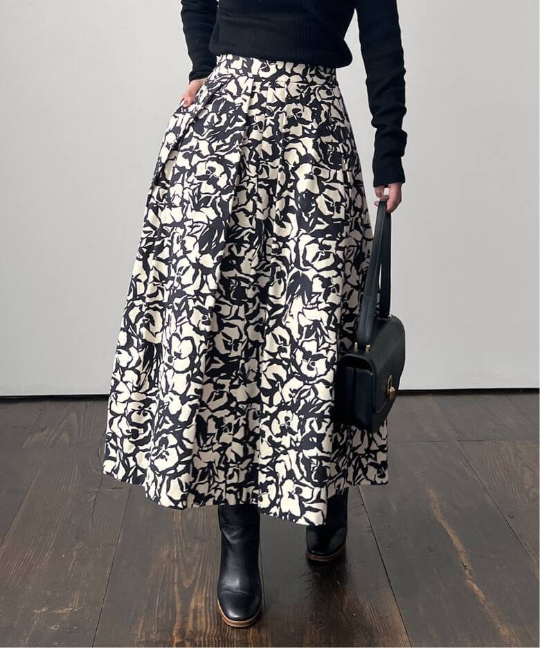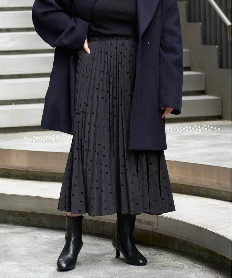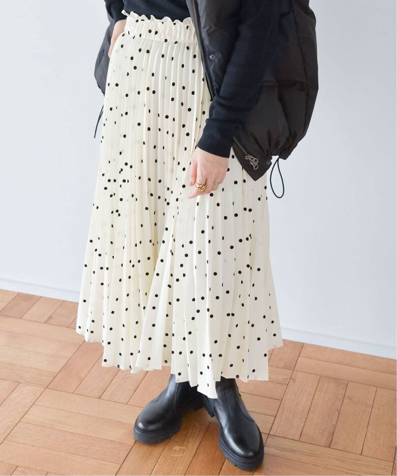 ドットスカートで彩るレトロコーデIENAで毎シーズン大人気のドットスカートが今季も登場。フロッキープリントのランダムドットをあしらったプリーツスカートは、冬コーデを沈ませずレディにブラッシュアップ。