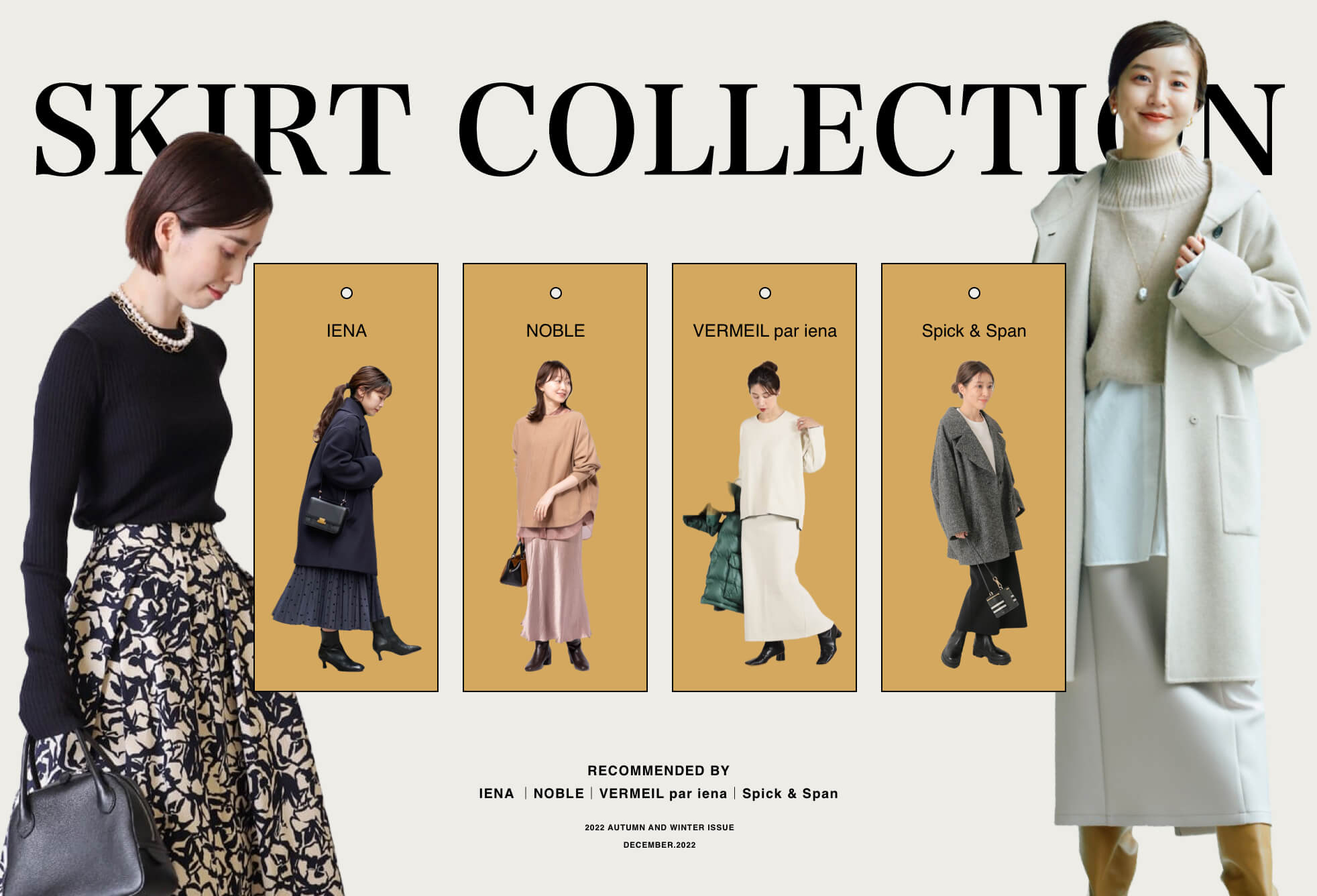 レディに揺れるフレアスカートアシンメトリーな切り替えパターンにこだわったモノトーンスカートから、一点投入で華やかになるカラフルなツイードスカートまで、名品フレアが続々ラインナップ。