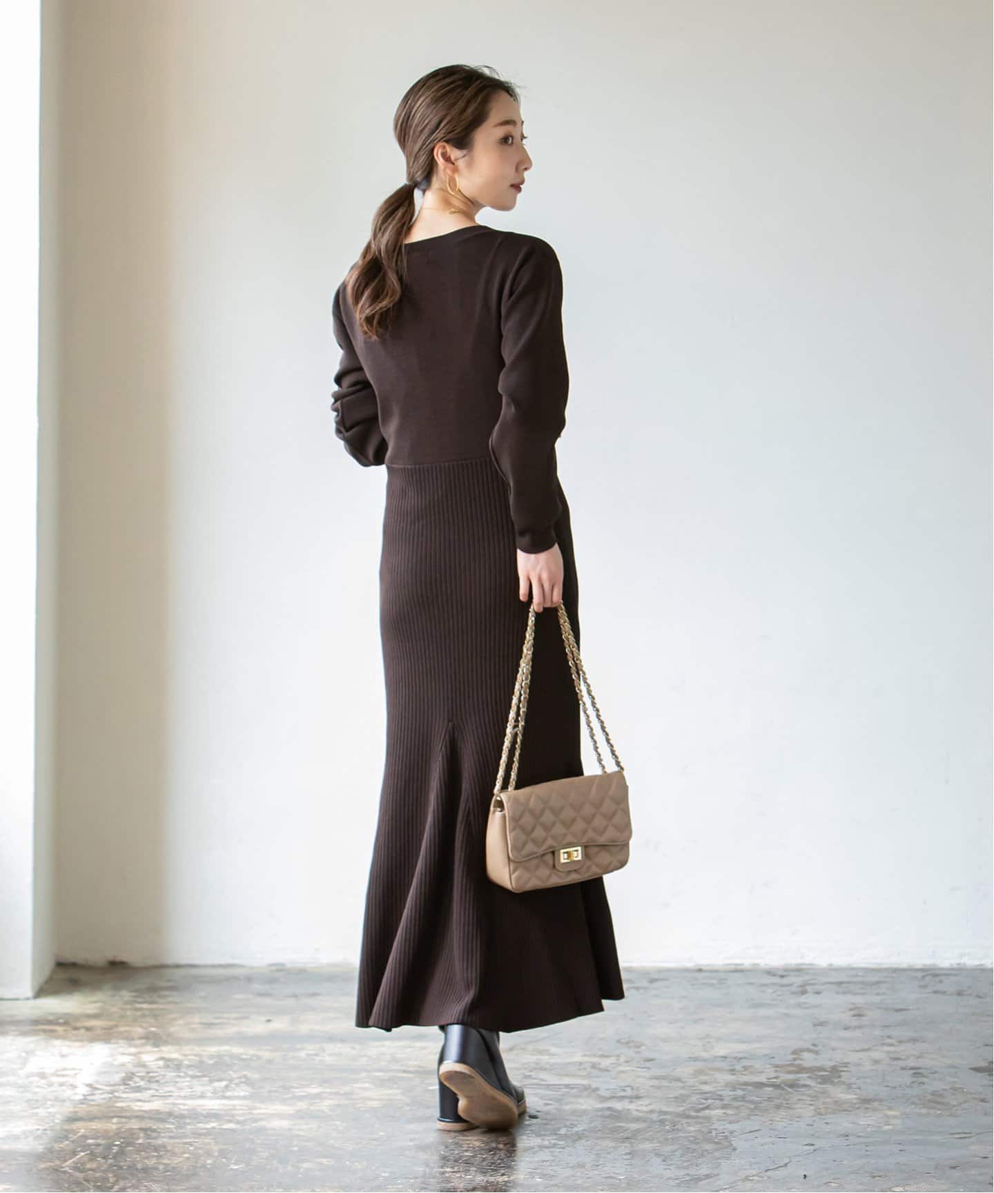 クルーネックワンピース今どきな首周りのレイヤードが楽しめるクルーネックワンピース。ふんわり広がるパフスリーブやマーメイドシルエットなど、女性らしいフォルムを選んで。