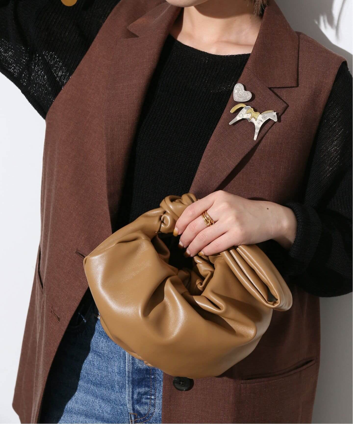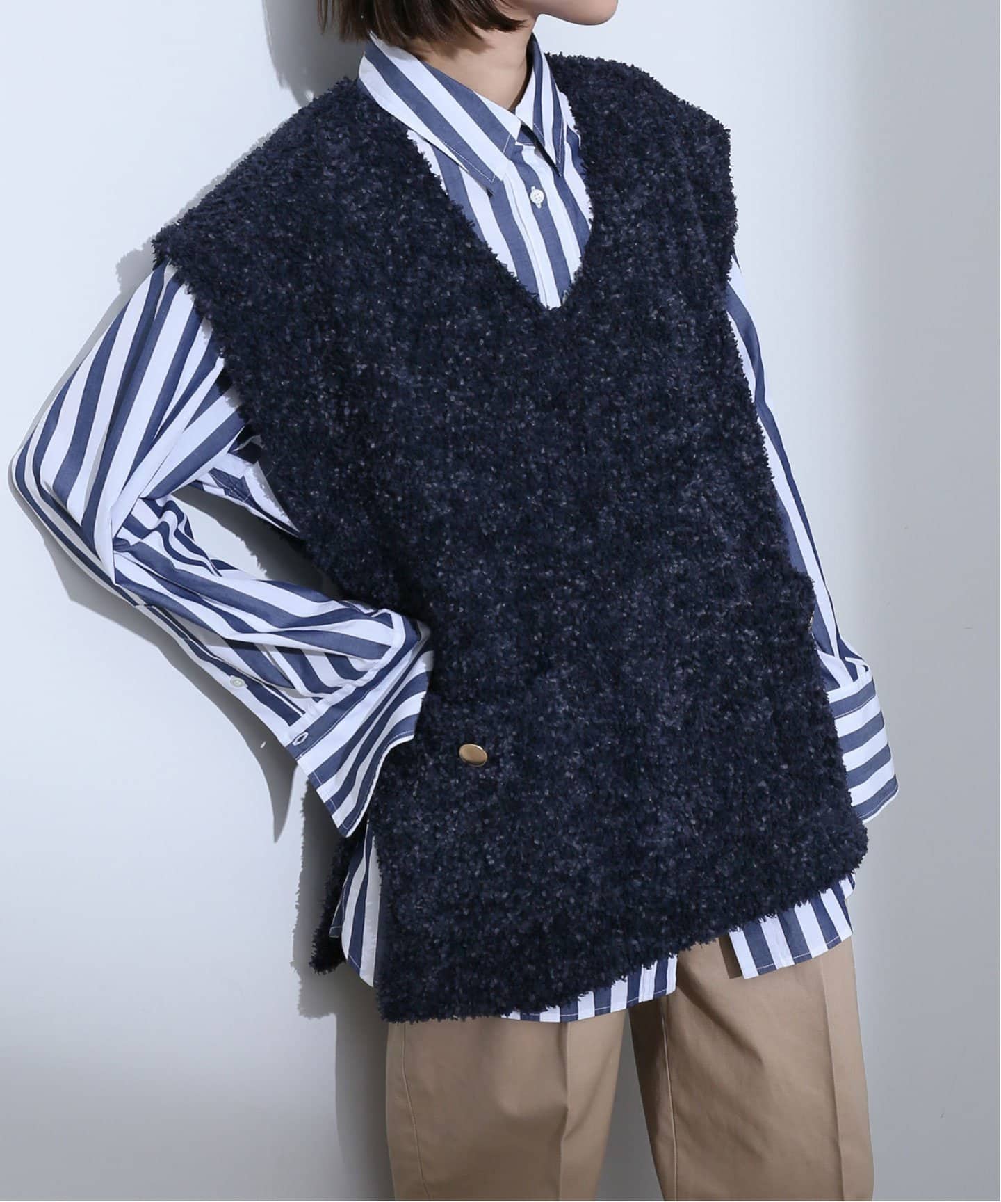 照れずにまとえる映えアイテムトレンド大本命のツイードニットベストや、定番コーデをアップデートできる高感度なグリーンのニットパンツ。SLOBEらしいこなれた表情で、デイリーに使いやすい。