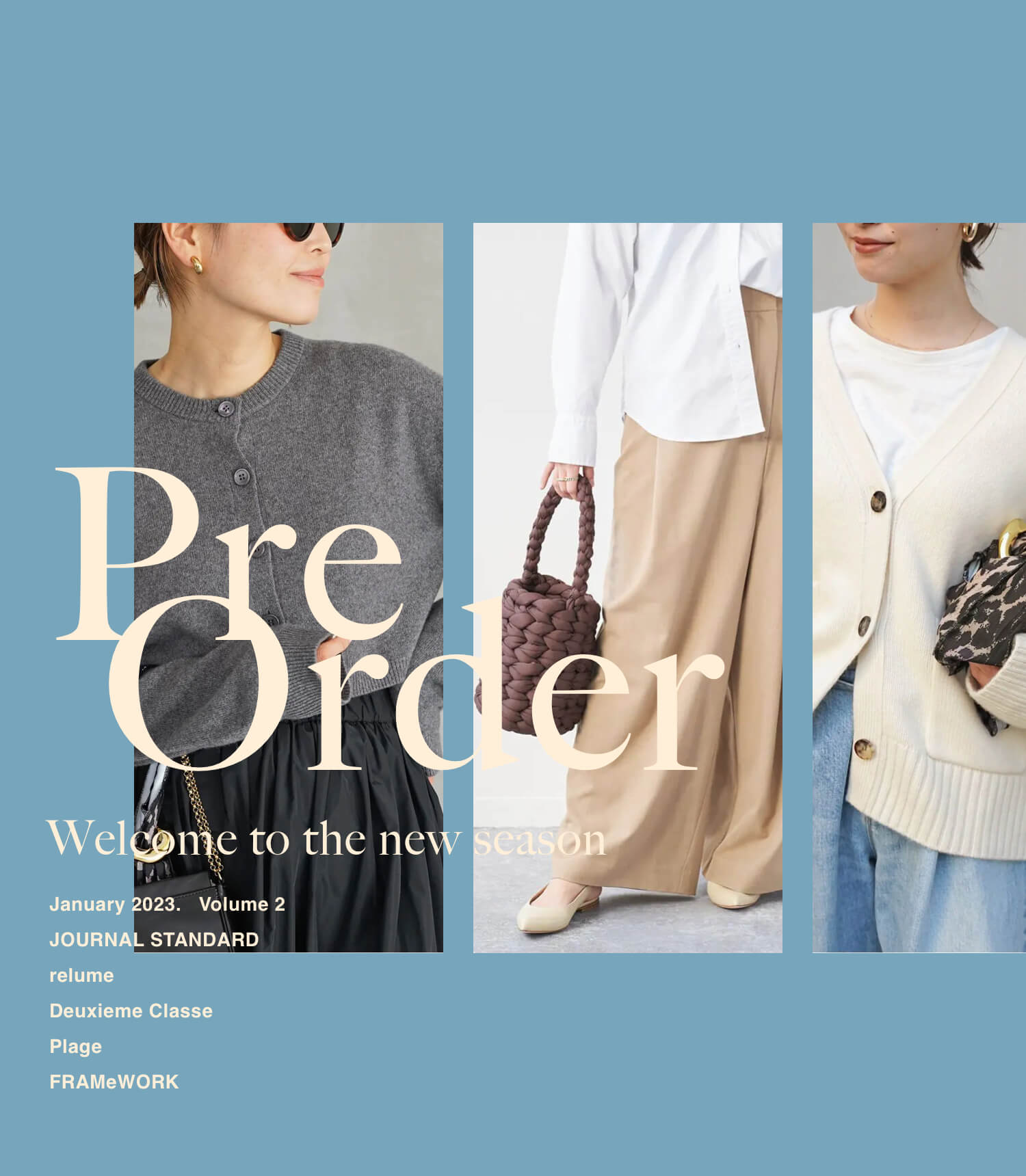 ひとさじの旬が抜群にお洒落コンパクトシルエットにモディファイされた旬バランスのカーディガンや、凛とした女性像に導くグレーパンツ。シンプルでいてこだわりが凝縮されたアイテムが満載。
